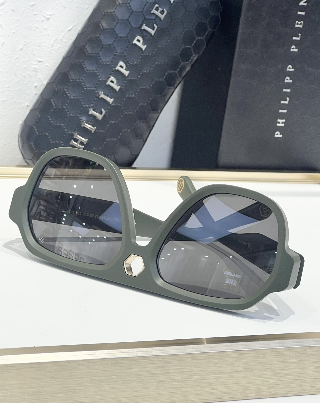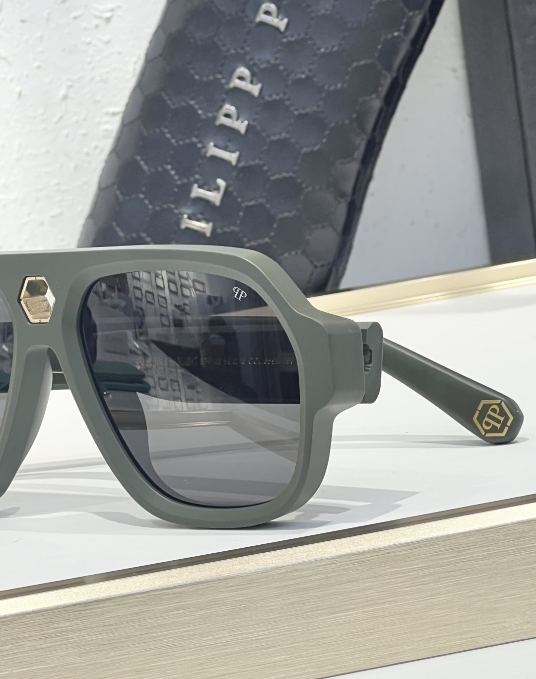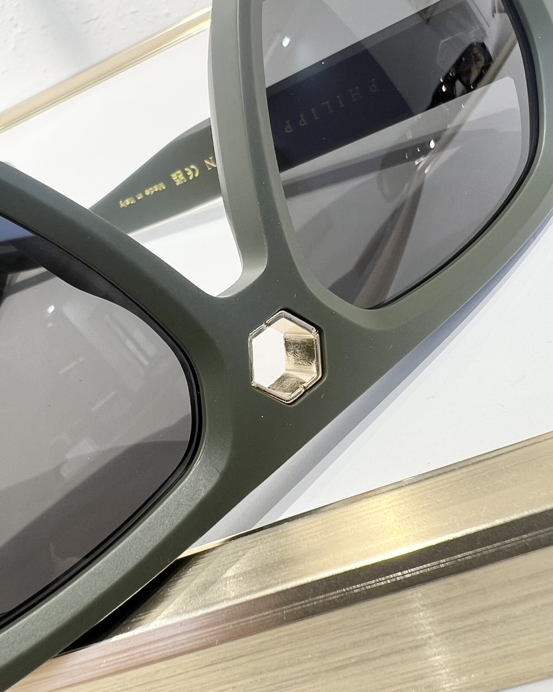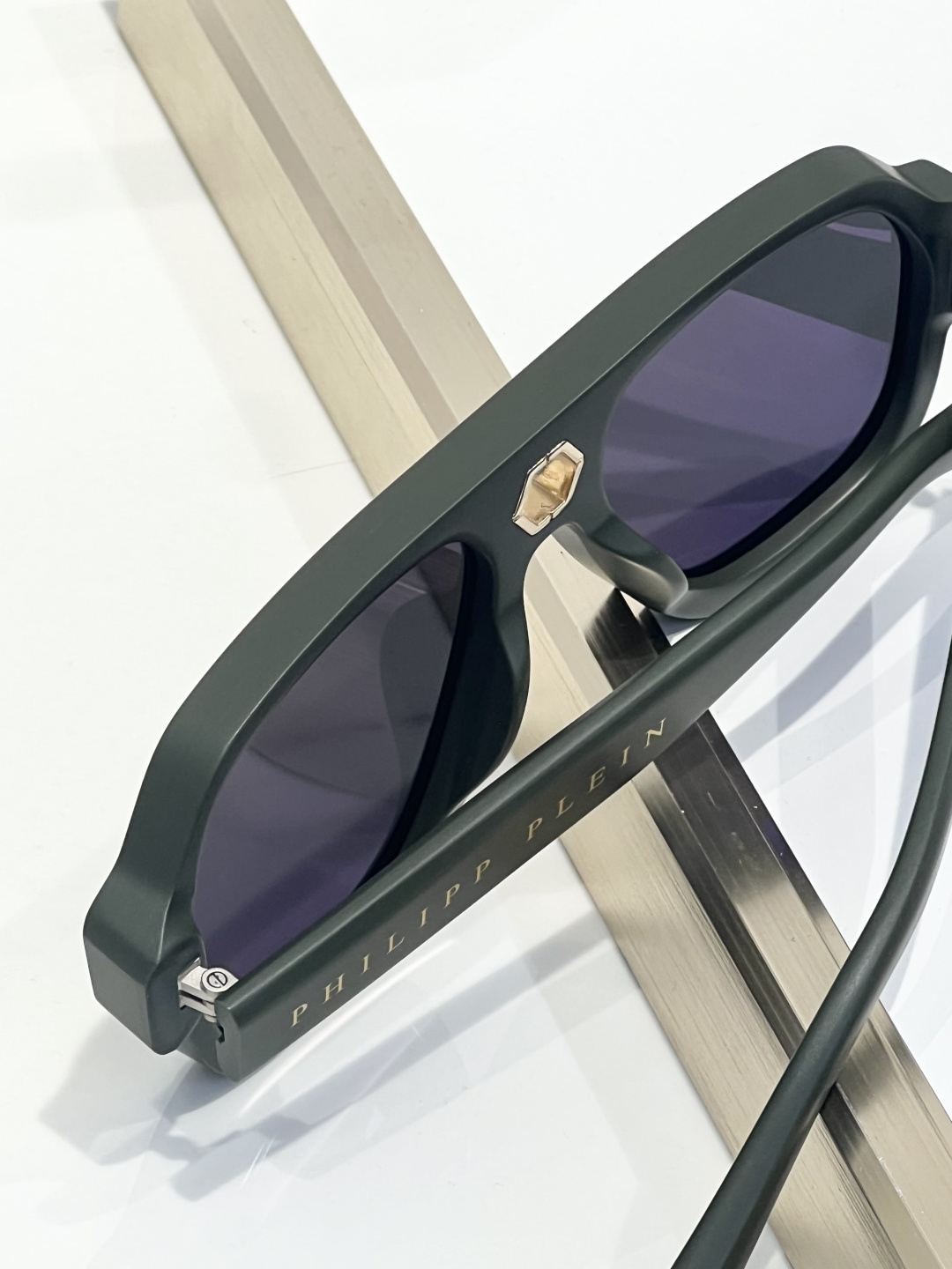 这款太阳眼镜是AAAAA 1:1 质量 (非常棒). 使用了和原版一模一样的材料. 商标部分也保持了和菲利普·普林/Philipp Plein一样. 图片拍摄是实物太阳眼镜拍摄, 您所收到的实物保证和我们图片一模一样.