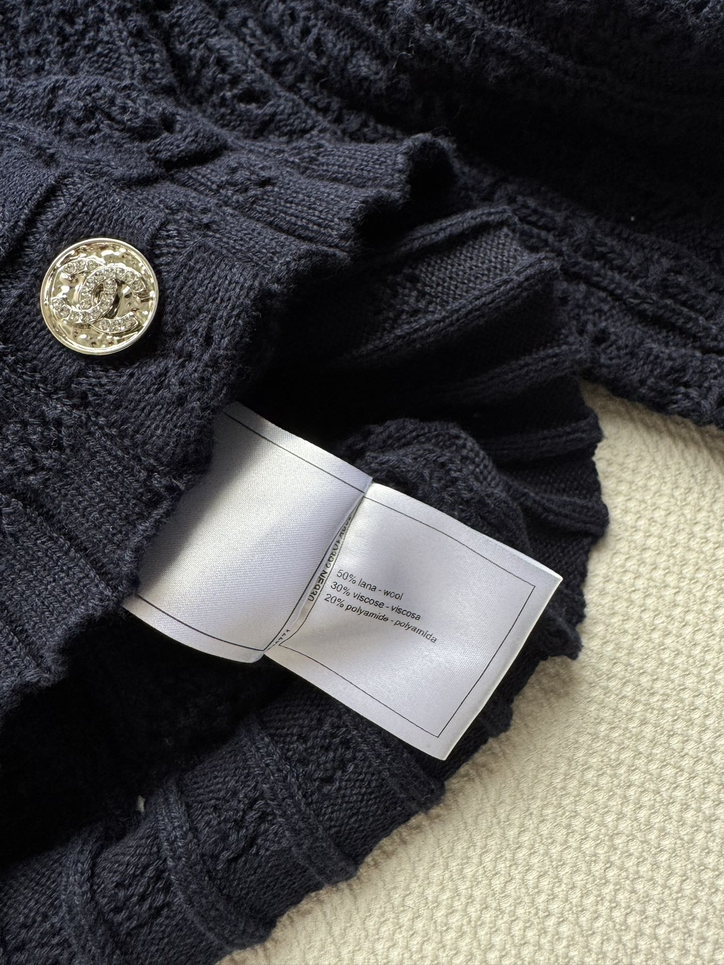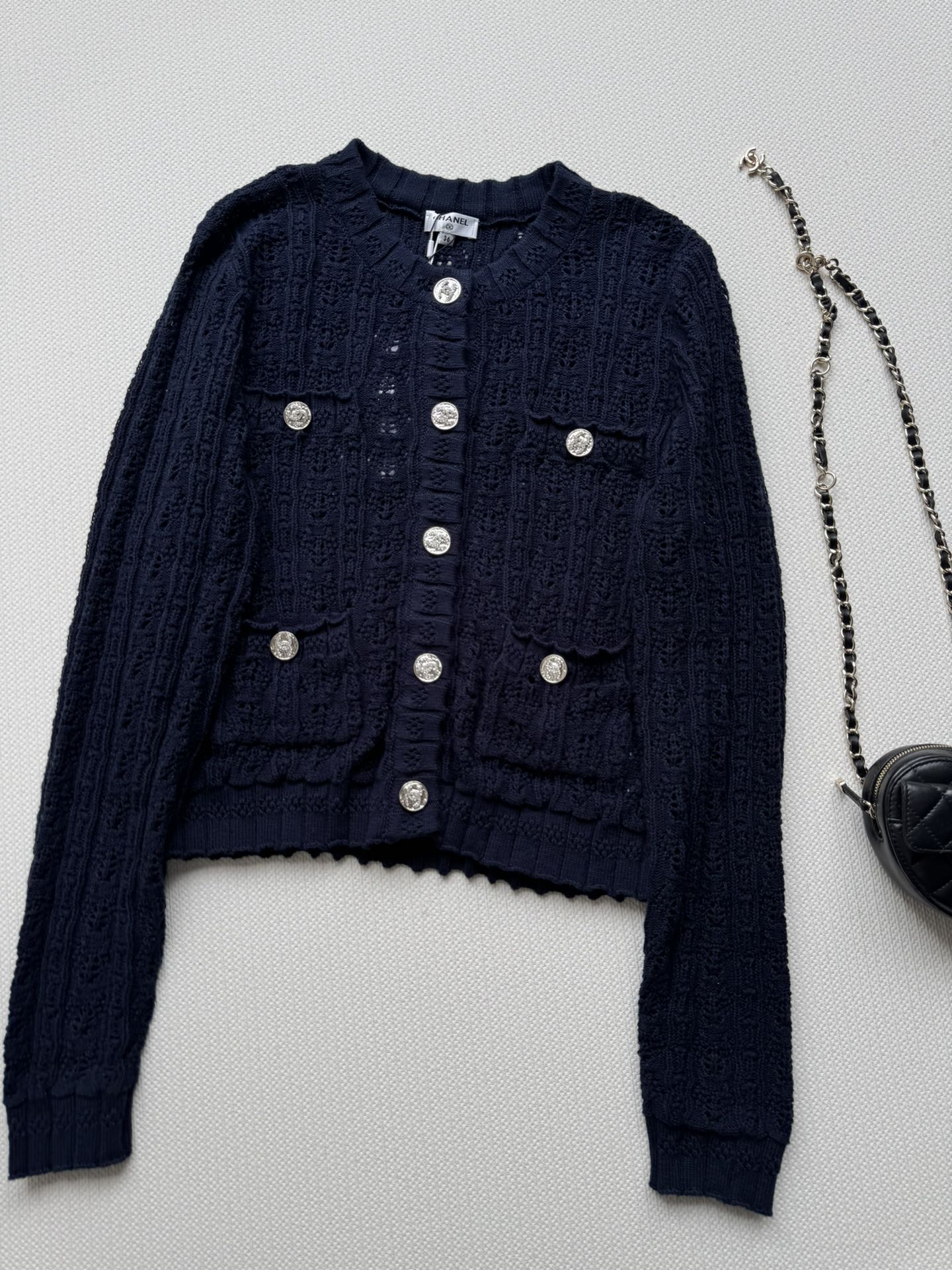 这款衣服是AAAAA 1:1 质量 (非常棒). 使用了和原版一模一样的材料. 商标部分也保持了和香奈儿/Chanel一样. 图片拍摄是实物衣服拍摄, 您所收到的实物保证和我们图片一模一样.