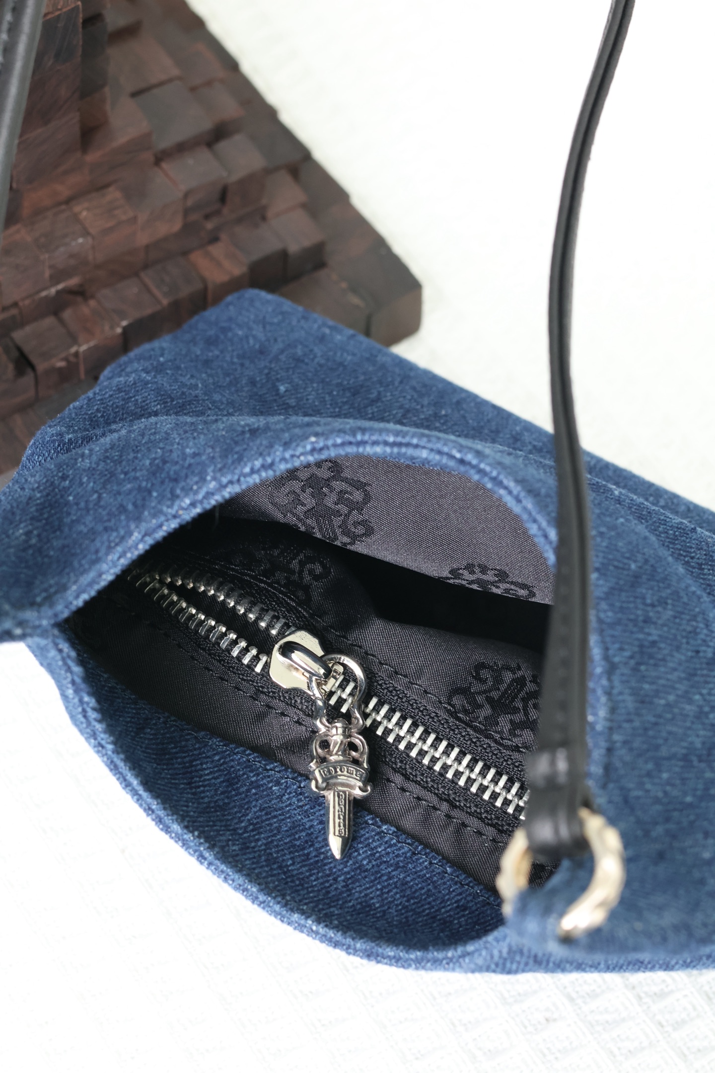 这款包包是AAAAA 1:1 质量 (非常棒). 使用了和原版一模一样的材料. 商标部分也保持了和克罗心/Chrome Hearts一样. 图片拍摄是实物包包拍摄, 您所收到的实物保证和我们图片一模一样.