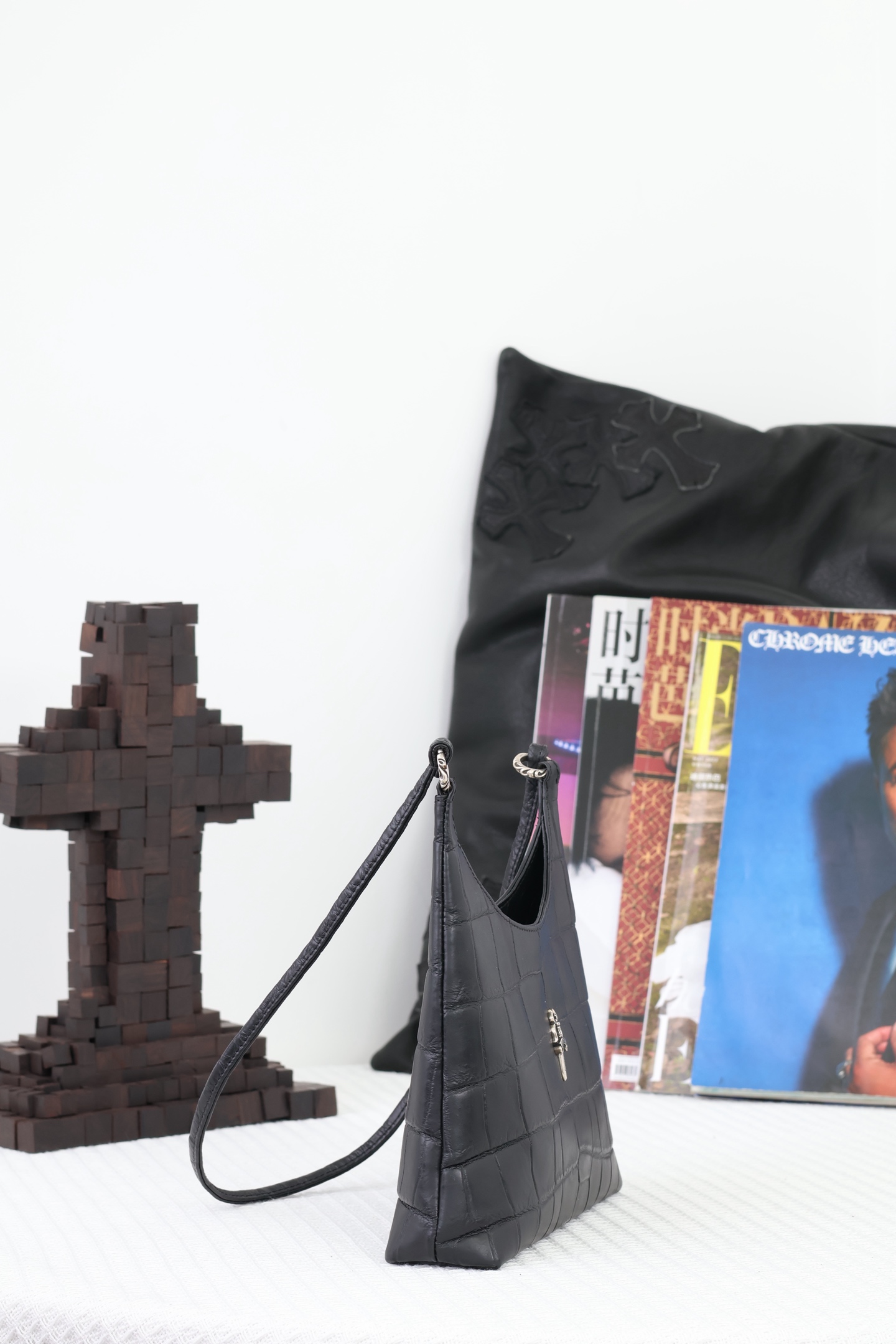 这款包包是AAAAA 1:1 质量 (非常棒). 使用了和原版一模一样的材料. 商标部分也保持了和克罗心/Chrome Hearts一样. 图片拍摄是实物包包拍摄, 您所收到的实物保证和我们图片一模一样.