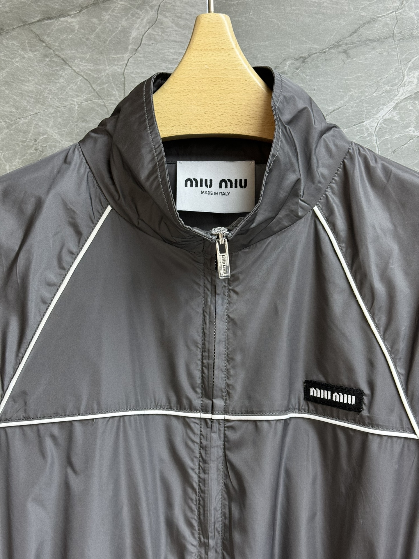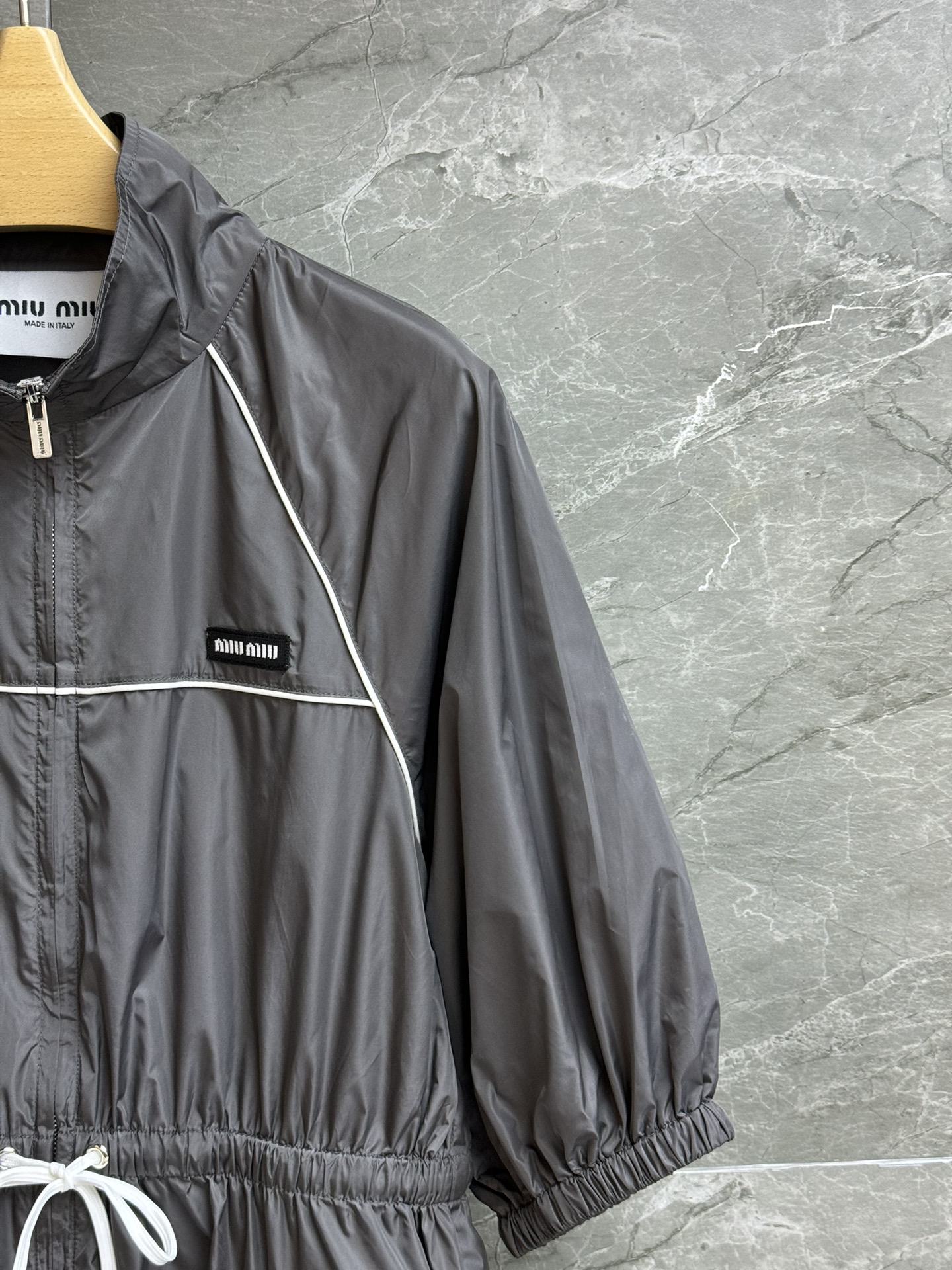 这款衣服是AAAAA 1:1 质量 (非常棒). 使用了和原版一模一样的材料. 商标部分也保持了和缪缪/Miu Miu一样. 图片拍摄是实物衣服拍摄, 您所收到的实物保证和我们图片一模一样.