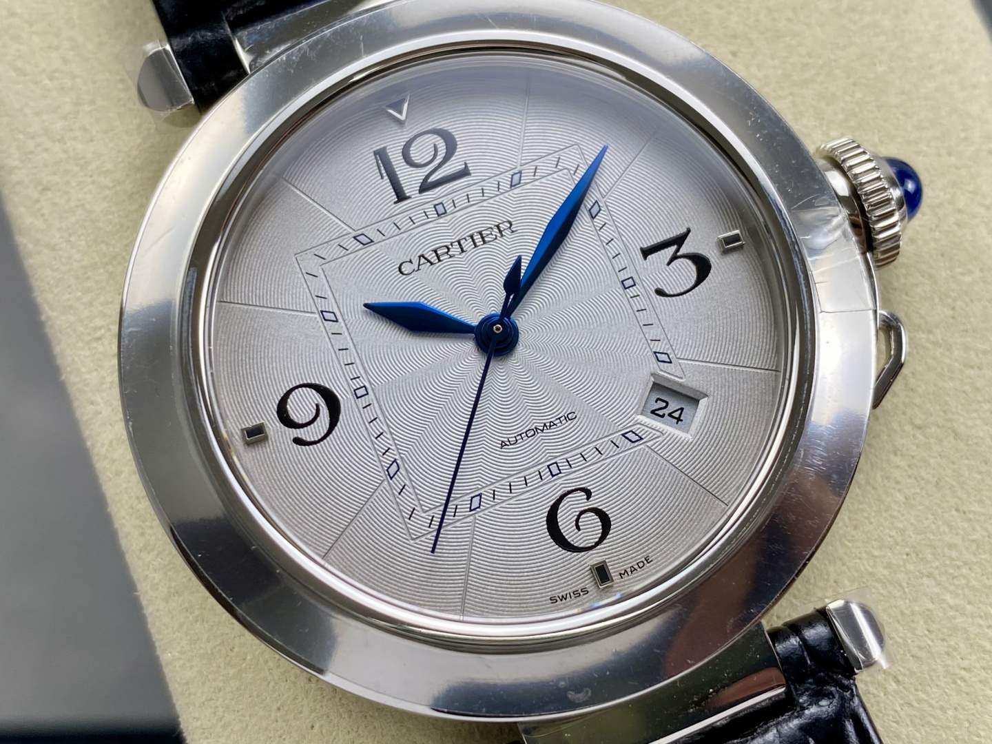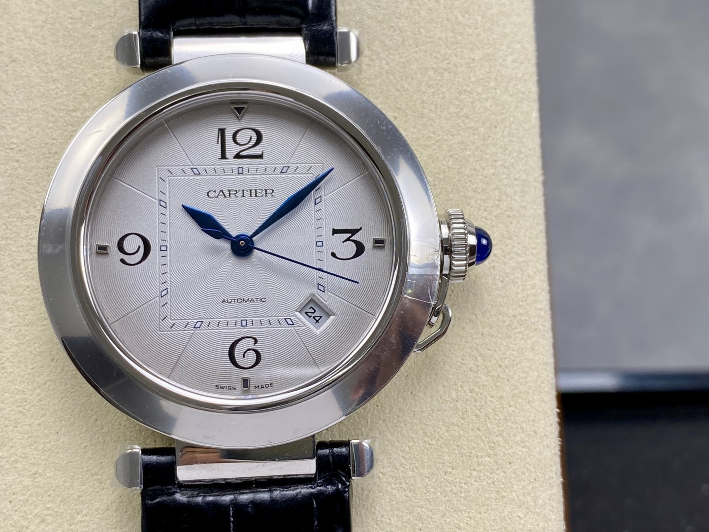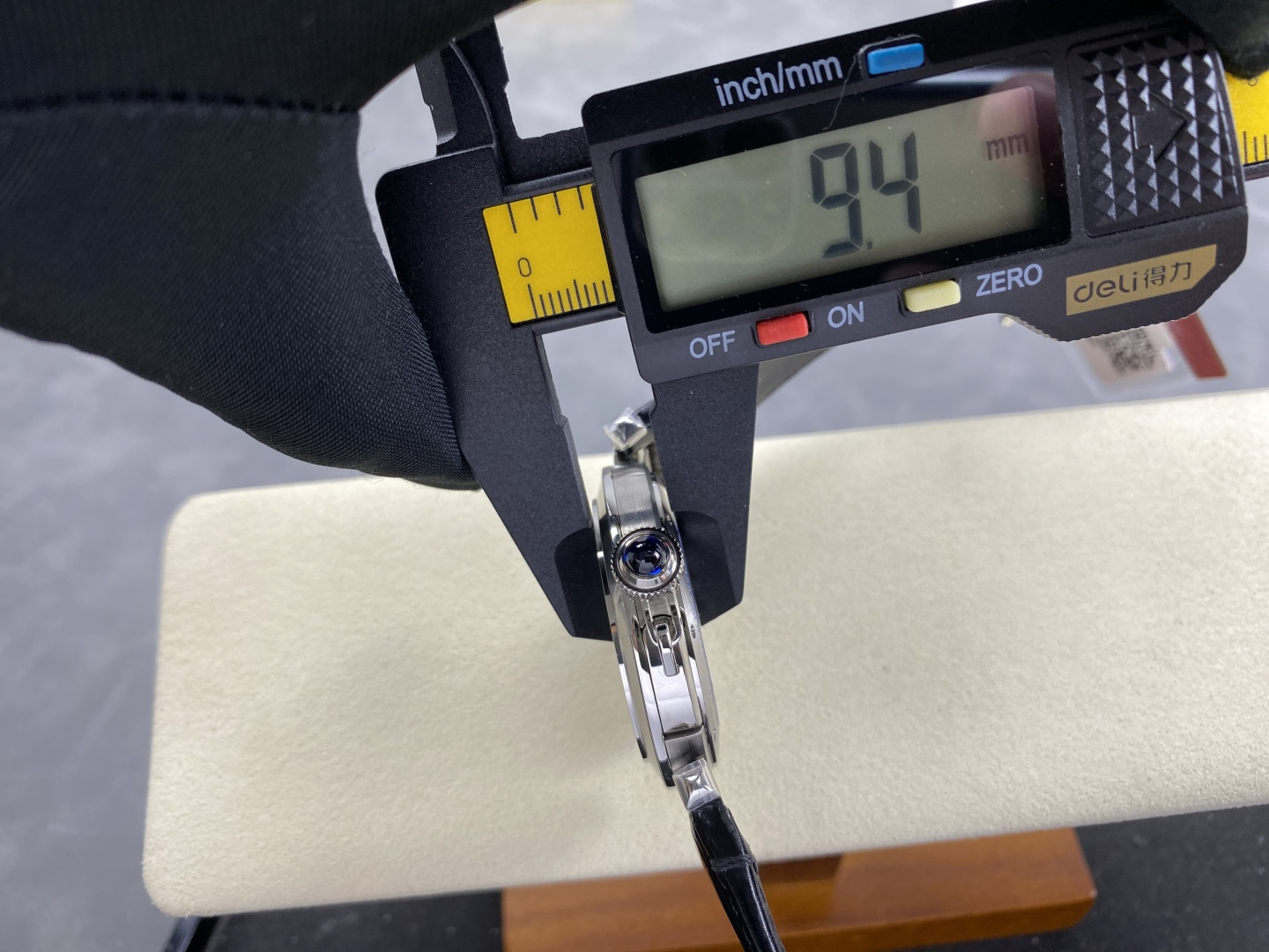 这款手表是AAAAA 1:1 质量 (非常棒). 使用了和原版一模一样的材料. 商标部分也保持了和卡地亚/Cartier一样. 图片拍摄是实物手表拍摄, 您所收到的实物保证和我们图片一模一样.