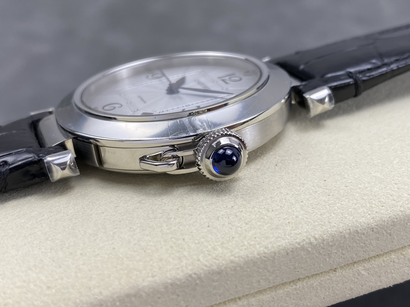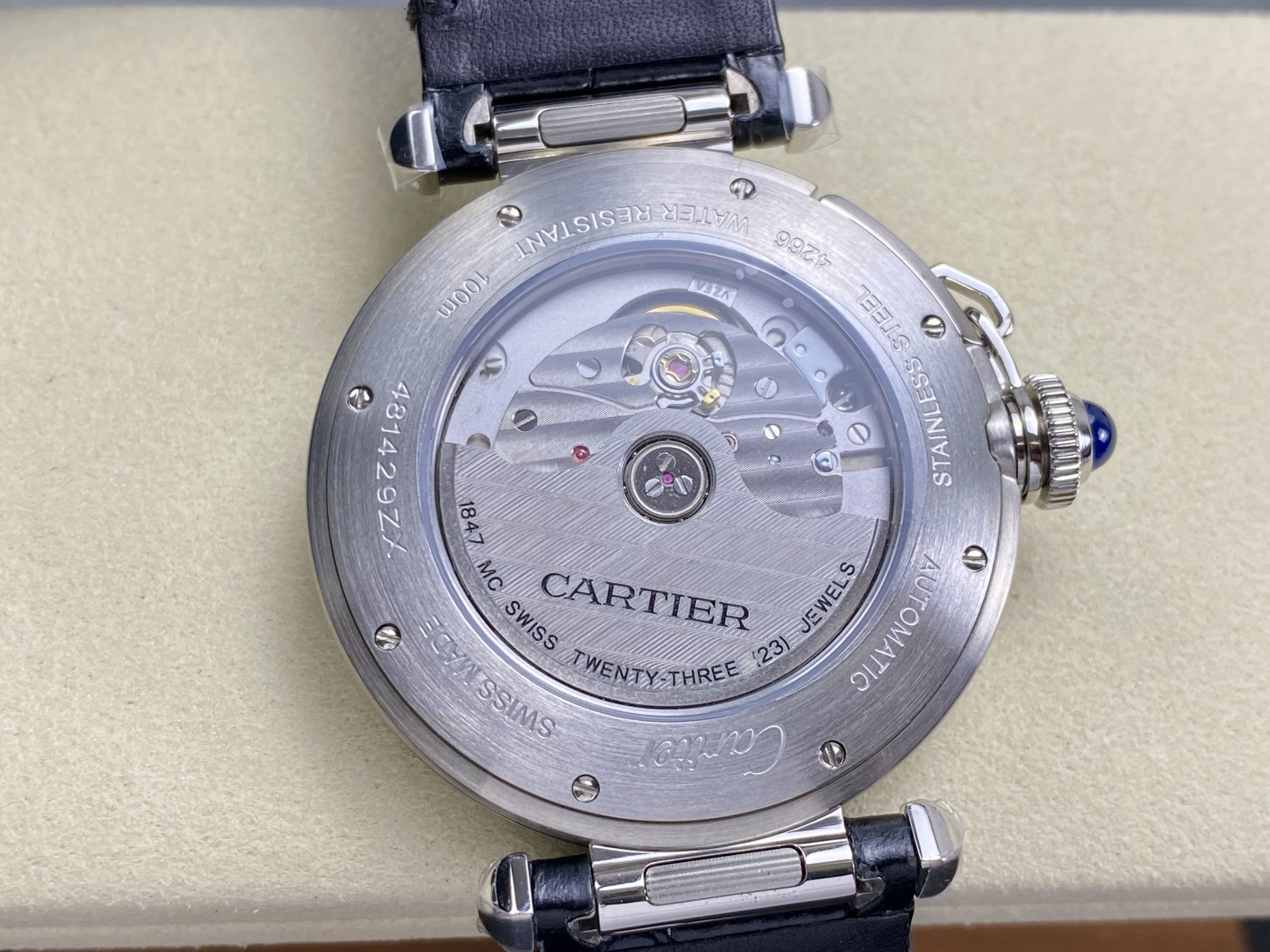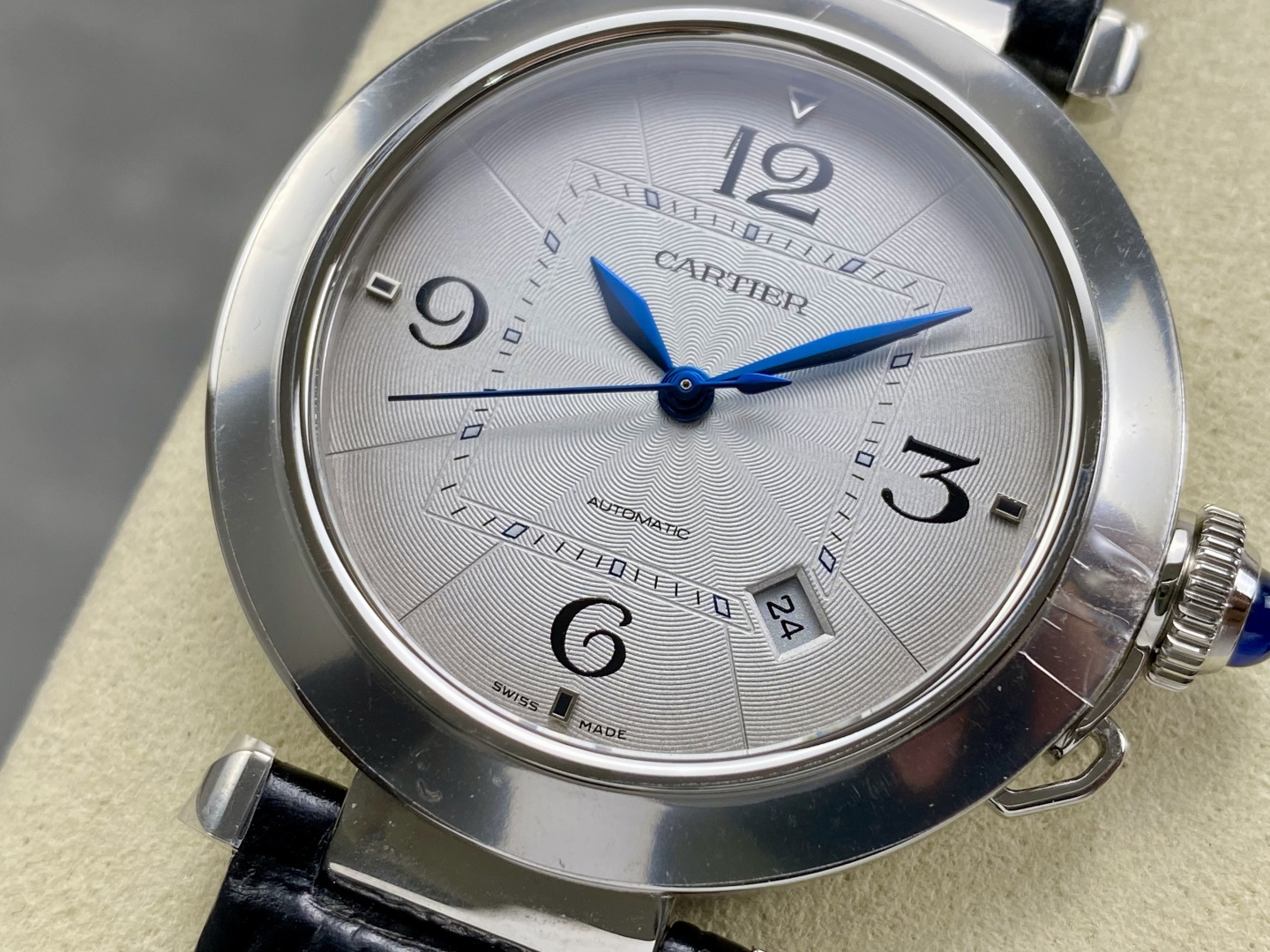 这款手表是AAAAA 1:1 质量 (非常棒). 使用了和原版一模一样的材料. 商标部分也保持了和卡地亚/Cartier一样. 图片拍摄是实物手表拍摄, 您所收到的实物保证和我们图片一模一样.