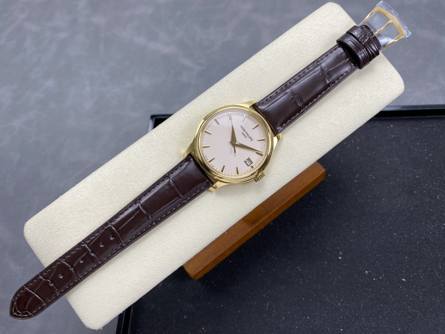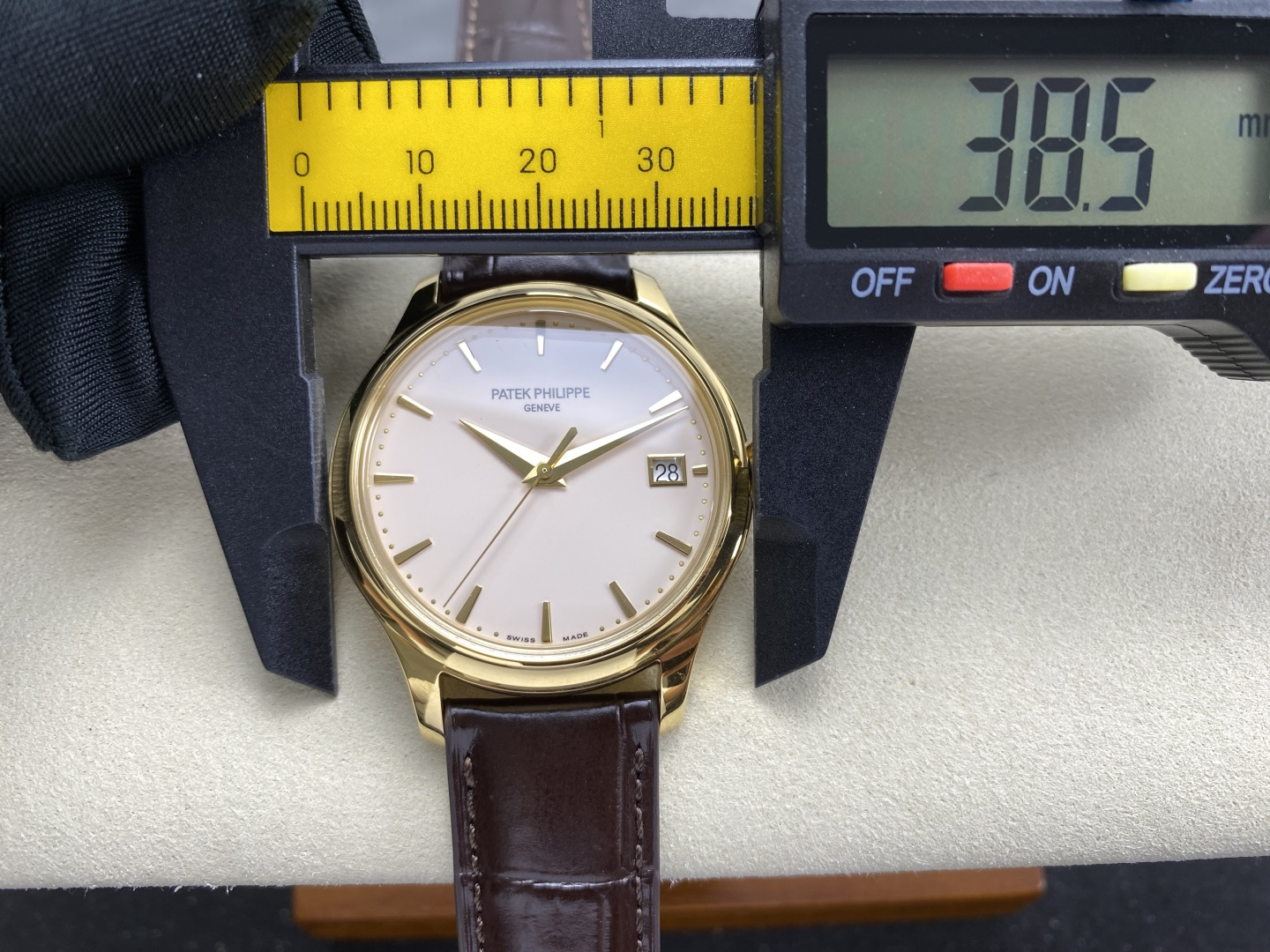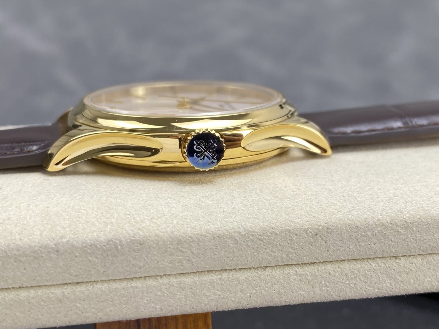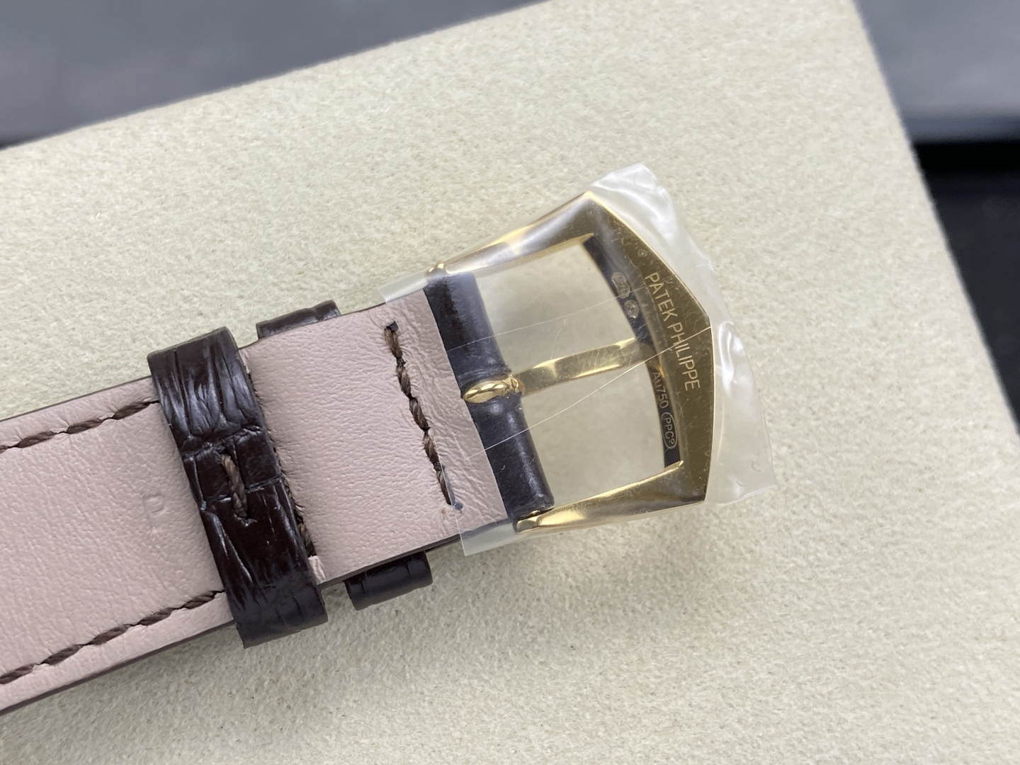 这款手表是AAAAA 1:1 质量 (非常棒). 使用了和原版一模一样的材料. 商标部分也保持了和百达翡丽/Patek Philippe一样. 图片拍摄是实物手表拍摄, 您所收到的实物保证和我们图片一模一样.