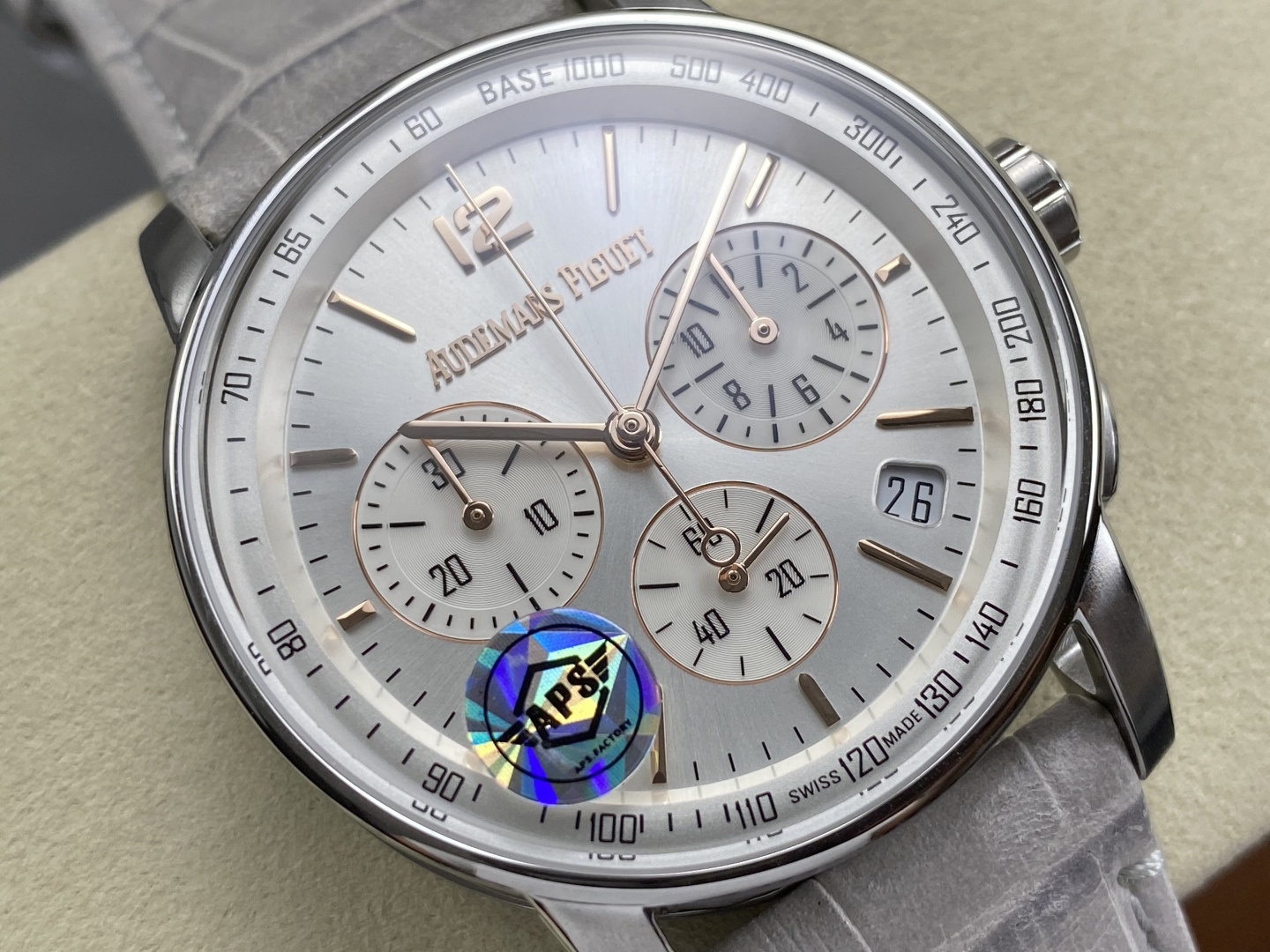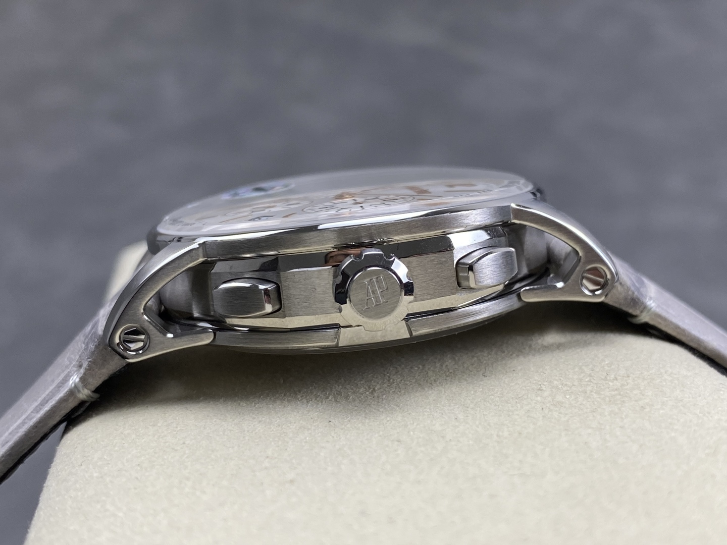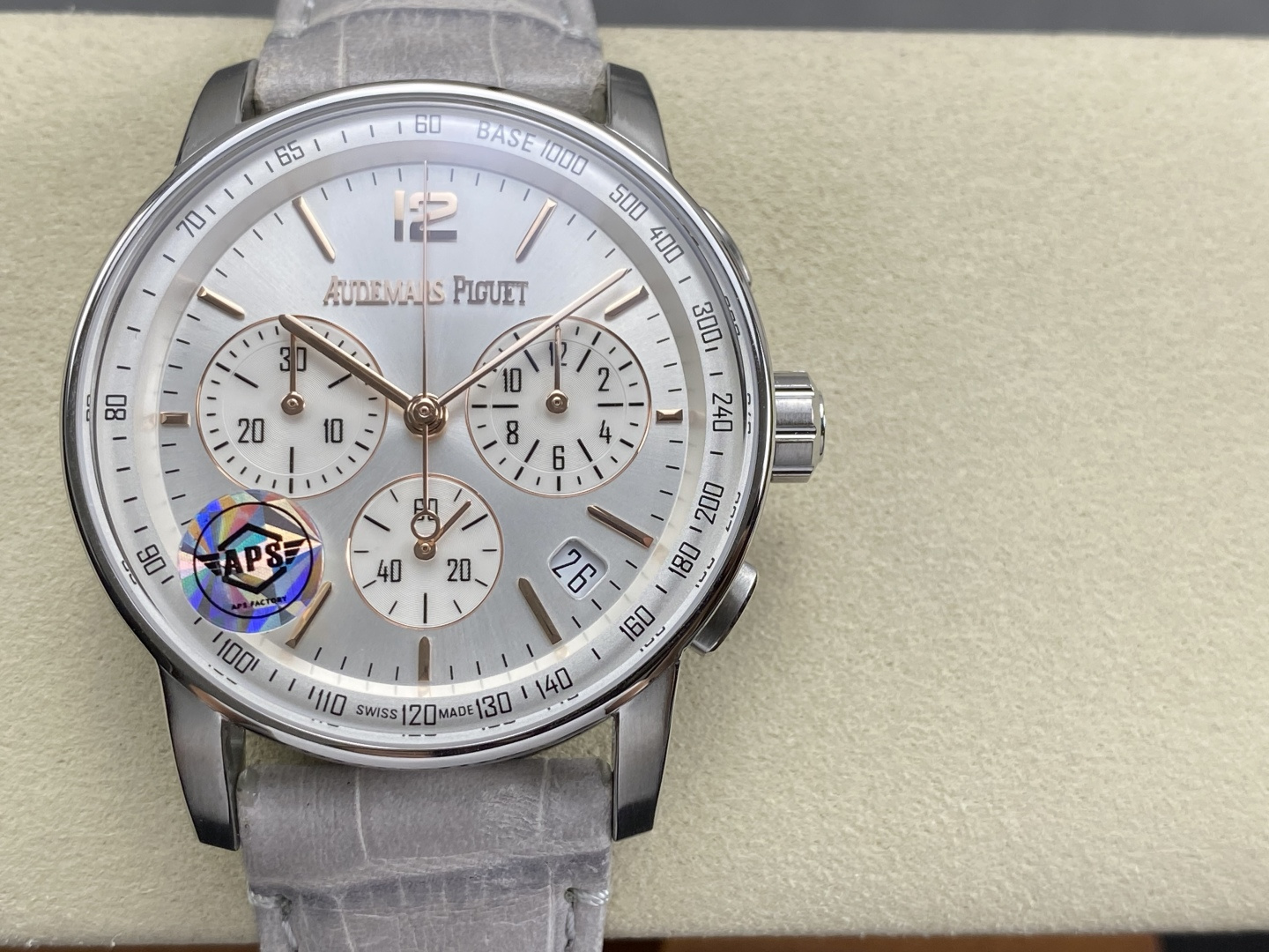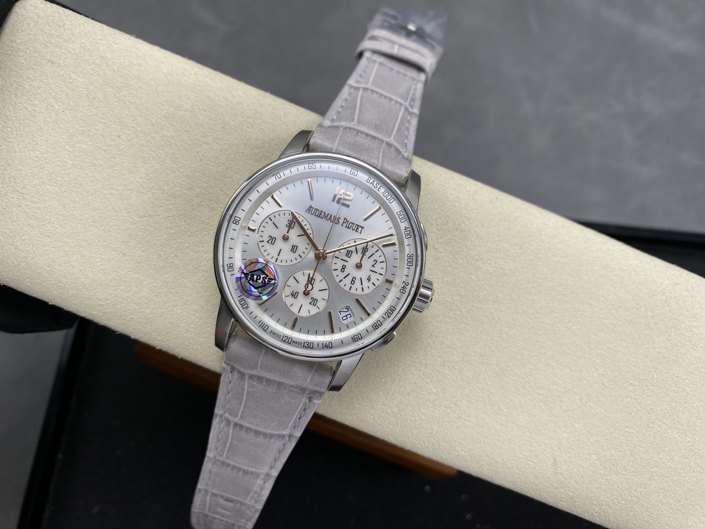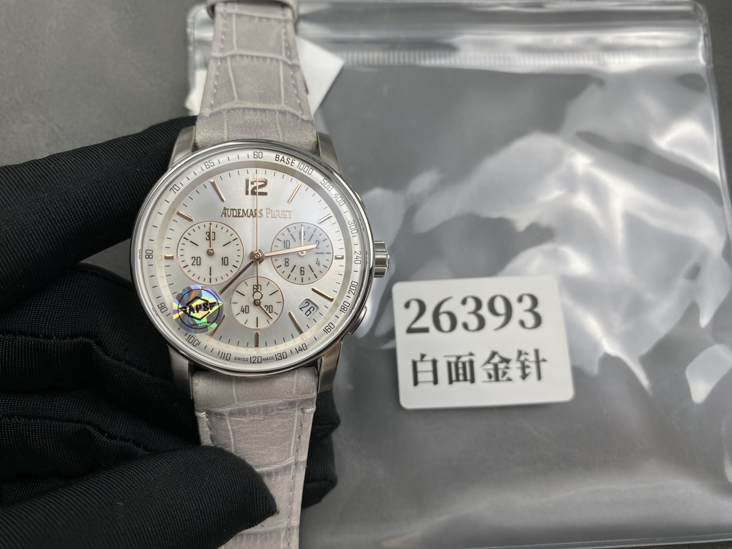 这款手表是AAAAA 1:1 质量 (非常棒). 使用了和原版一模一样的材料. 商标部分也保持了和爱彼/Audemars Piguet一样. 图片拍摄是实物手表拍摄, 您所收到的实物保证和我们图片一模一样.