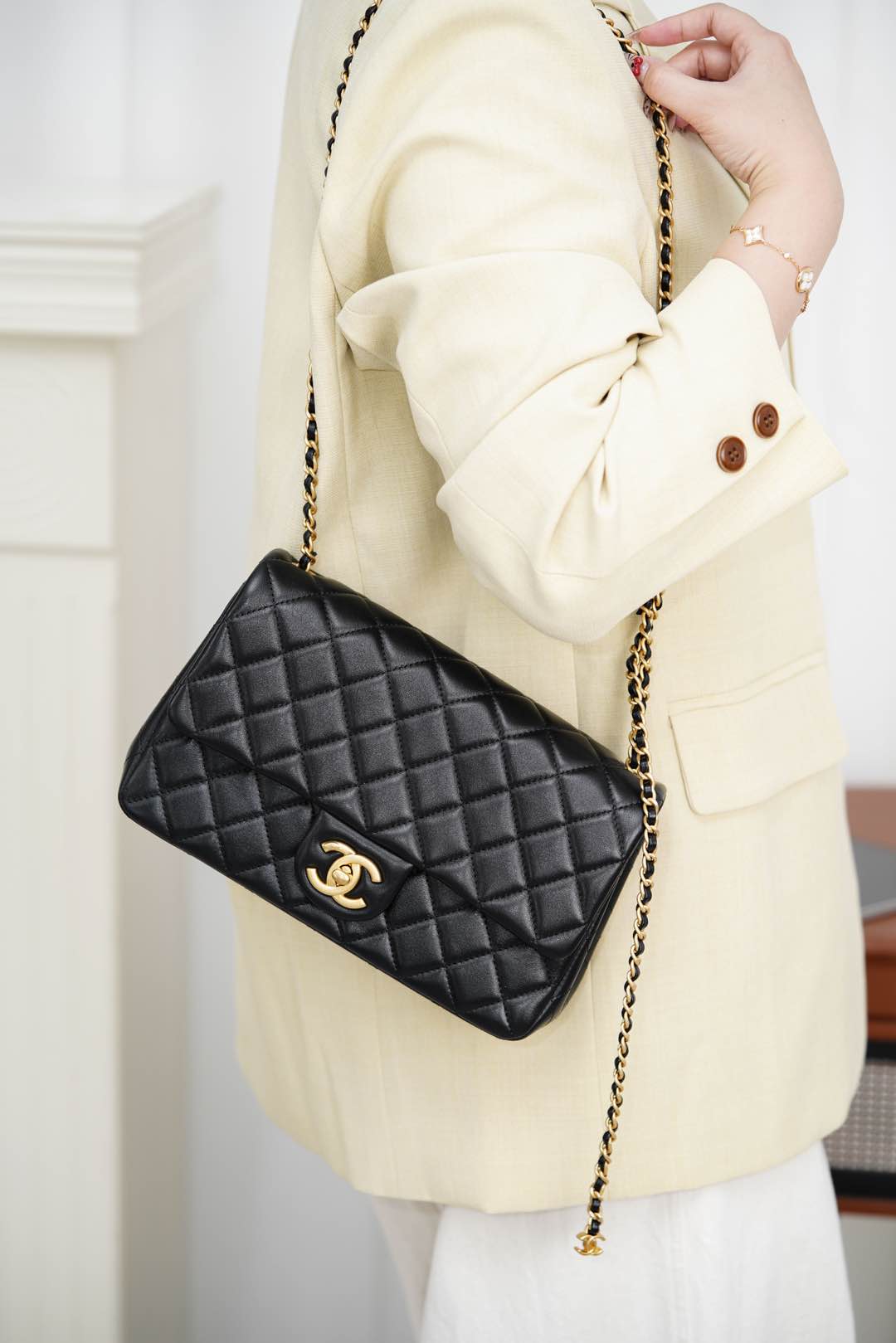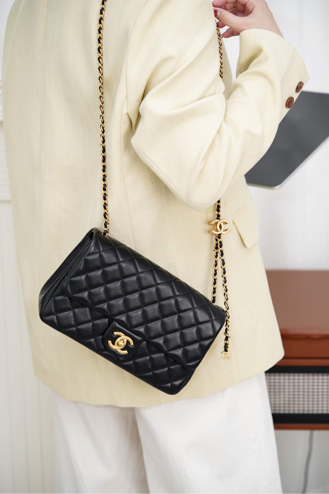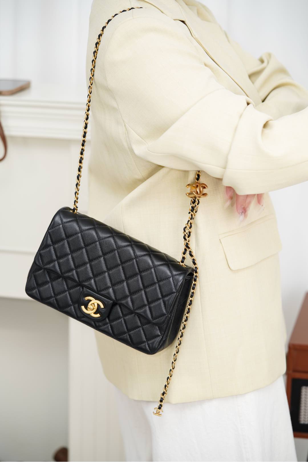 这款包包是AAAAA 1:1 质量 (非常棒). 使用了和原版一模一样的材料. 商标部分也保持了和香奈儿/Chanel一样. 图片拍摄是实物包包拍摄, 您所收到的实物保证和我们图片一模一样.