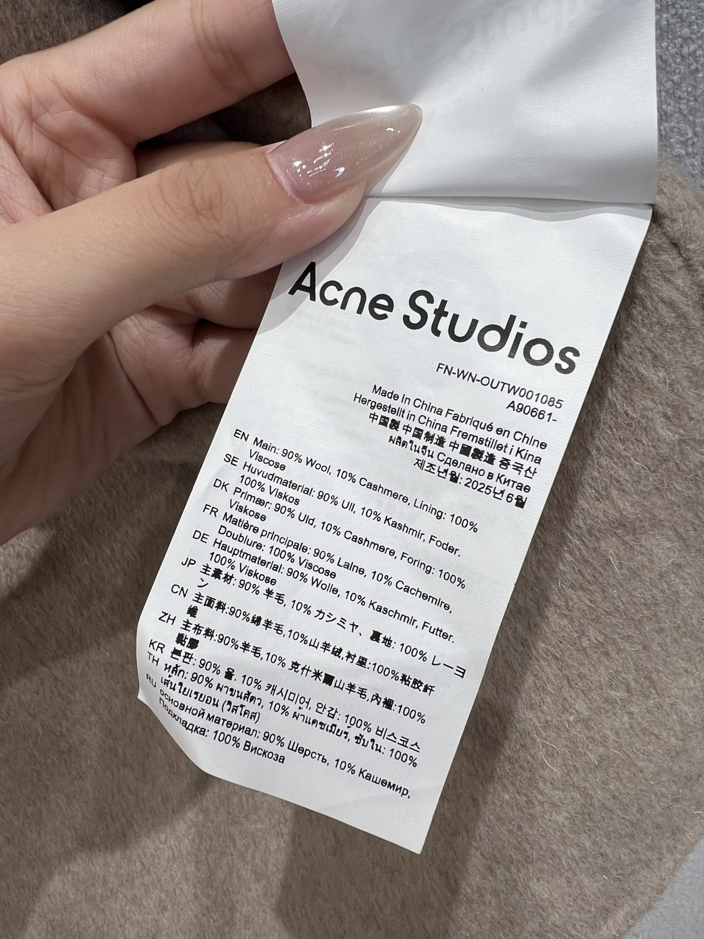 这款衣服是AAAAA 1:1 质量 (非常棒). 使用了和原版一模一样的材料. 商标部分也保持了和Acne一样. 图片拍摄是实物衣服拍摄, 您所收到的实物保证和我们图片一模一样.