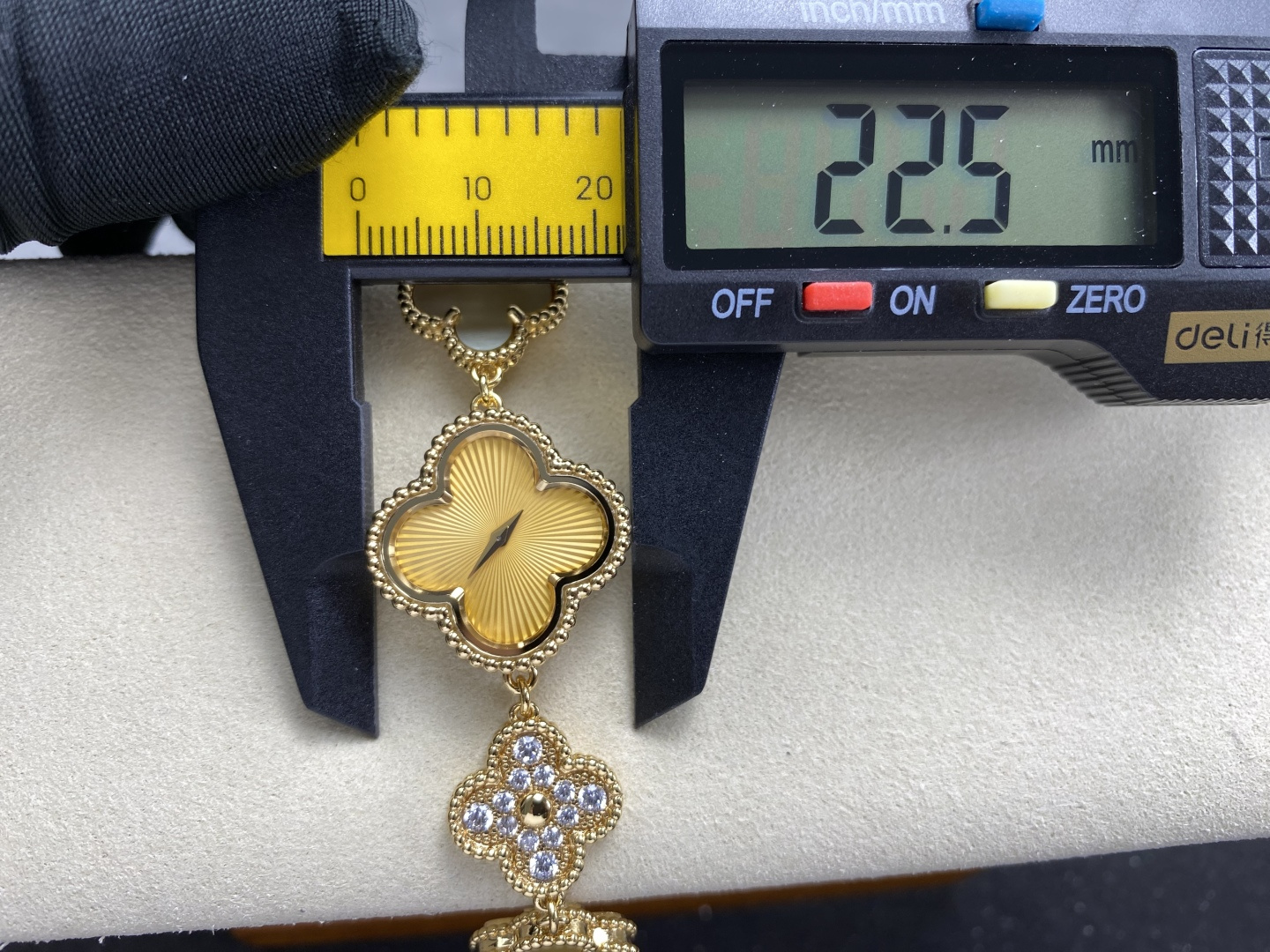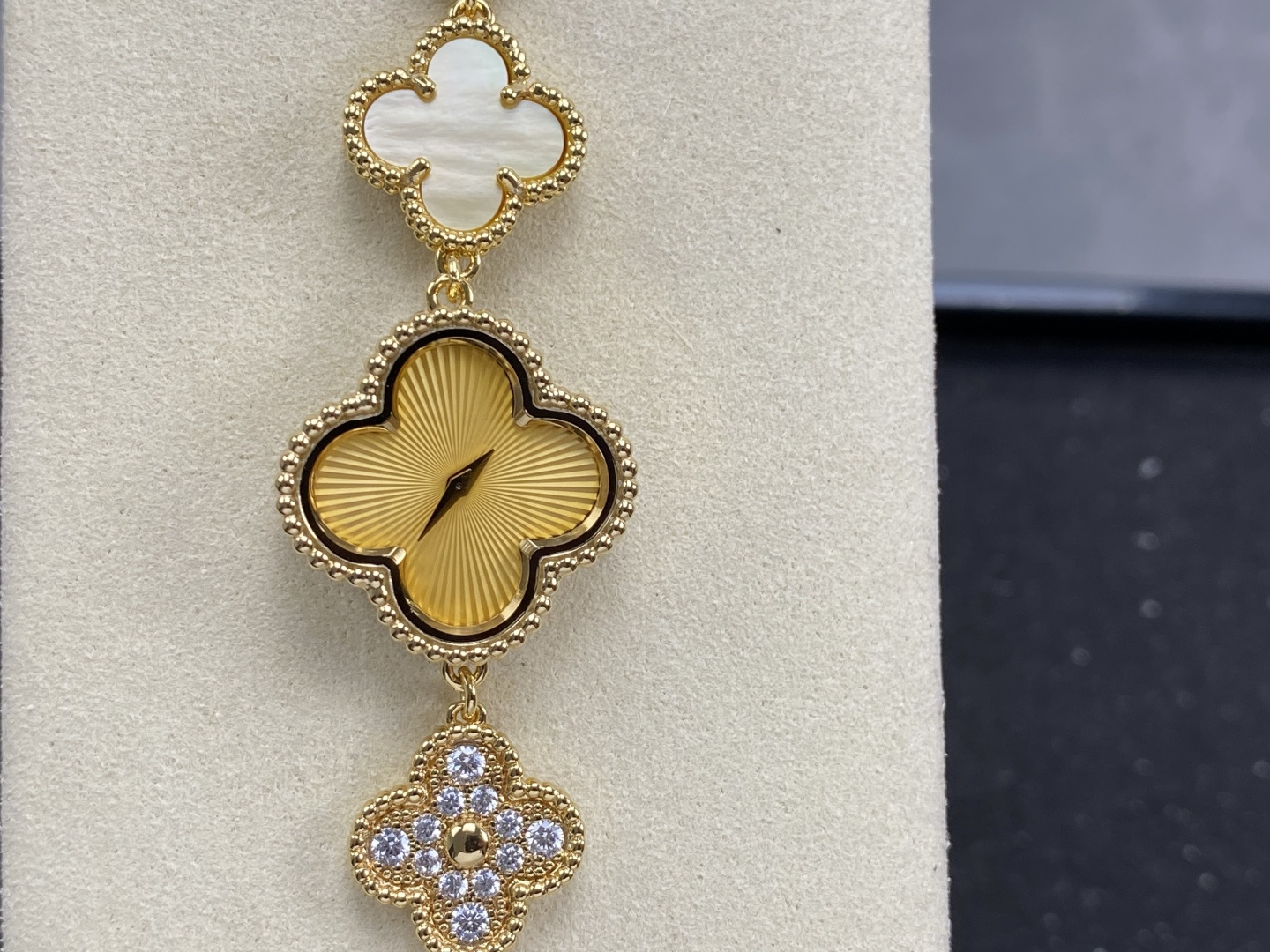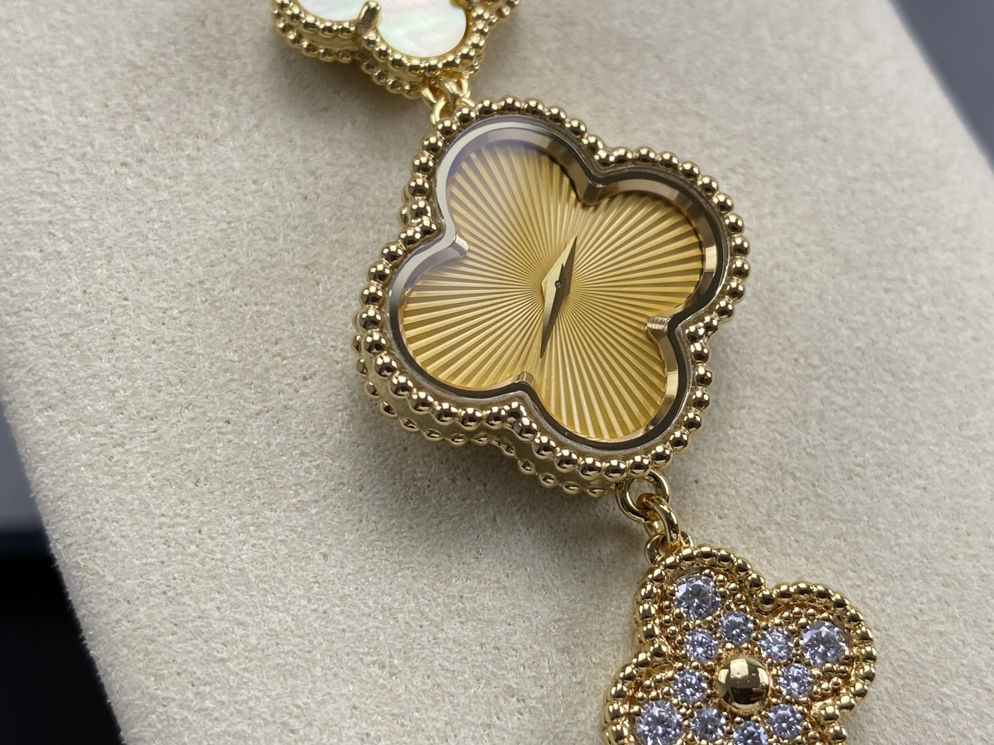 这款手表是AAAAA 1:1 质量 (非常棒). 使用了和原版一模一样的材料. 商标部分也保持了和梵克雅宝/Van Cleef & Arpels一样. 图片拍摄是实物手表拍摄, 您所收到的实物保证和我们图片一模一样.