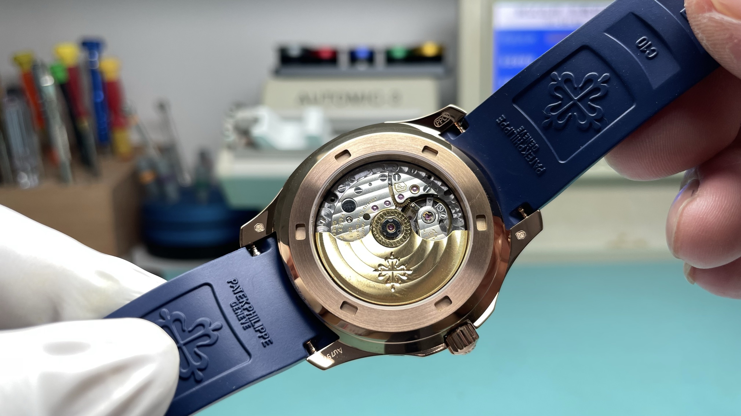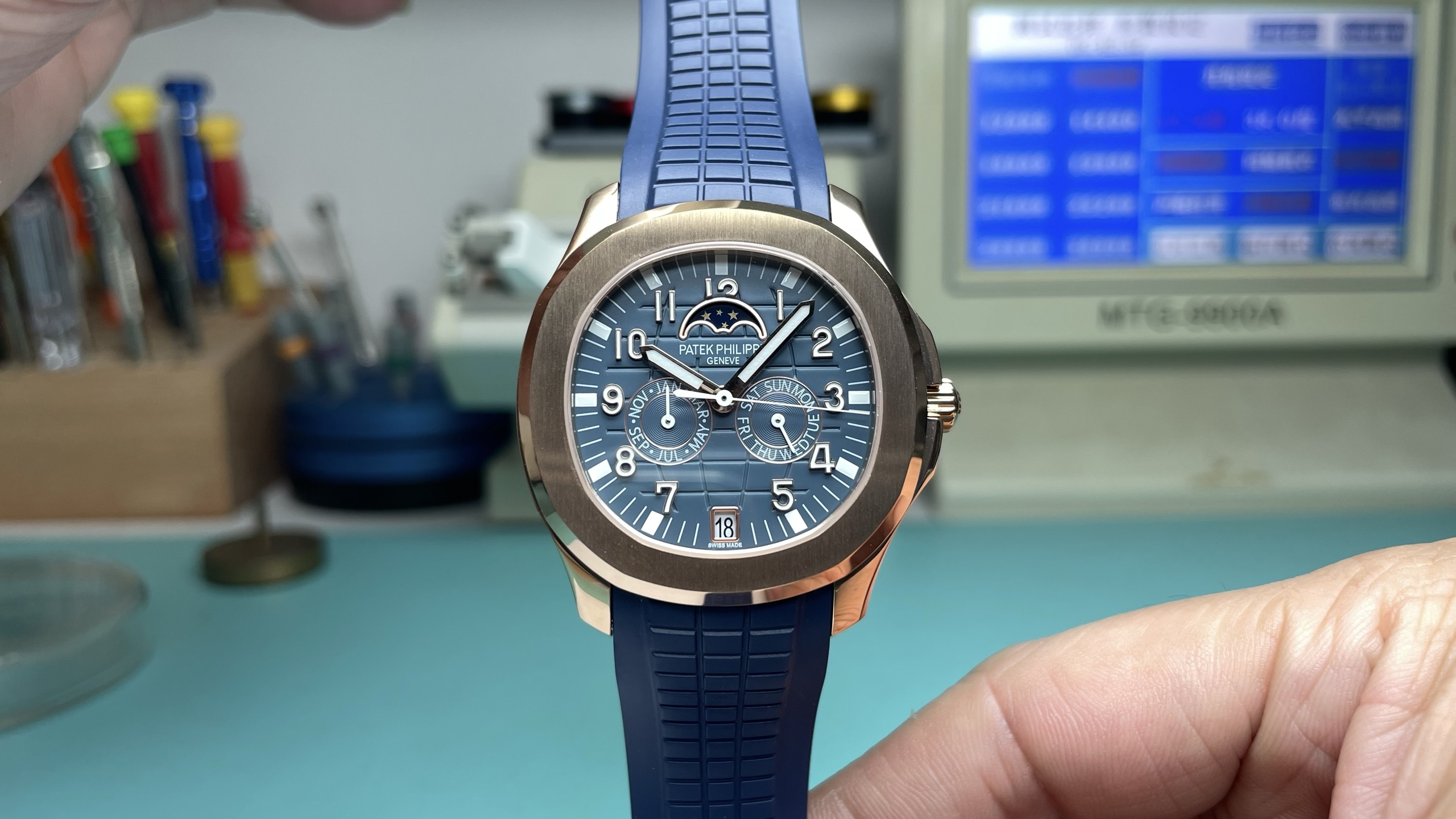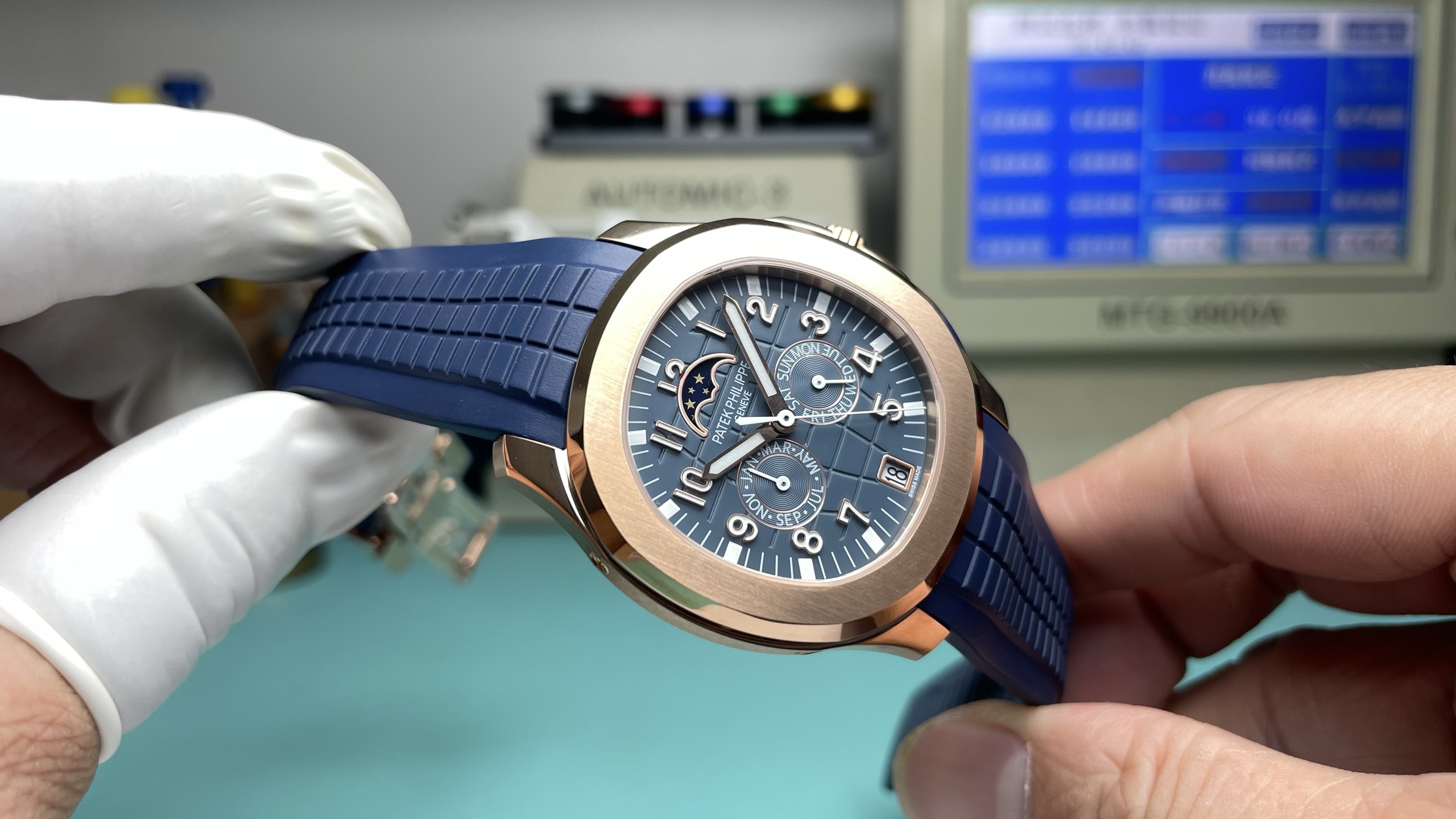 这款手表是AAAAA 1:1 质量 (非常棒). 使用了和原版一模一样的材料. 商标部分也保持了和百达翡丽/Patek Philippe一样. 图片拍摄是实物手表拍摄, 您所收到的实物保证和我们图片一模一样.