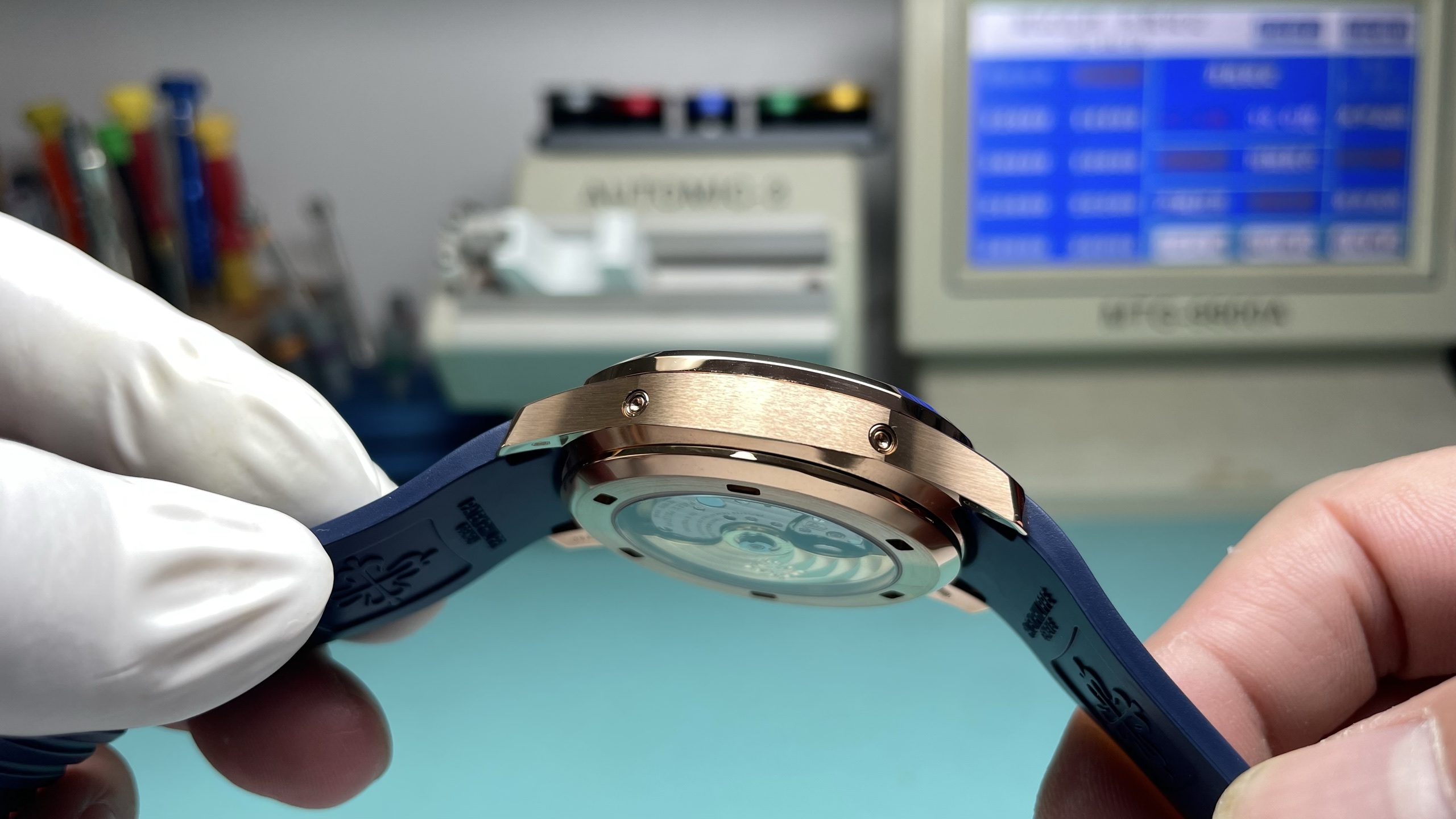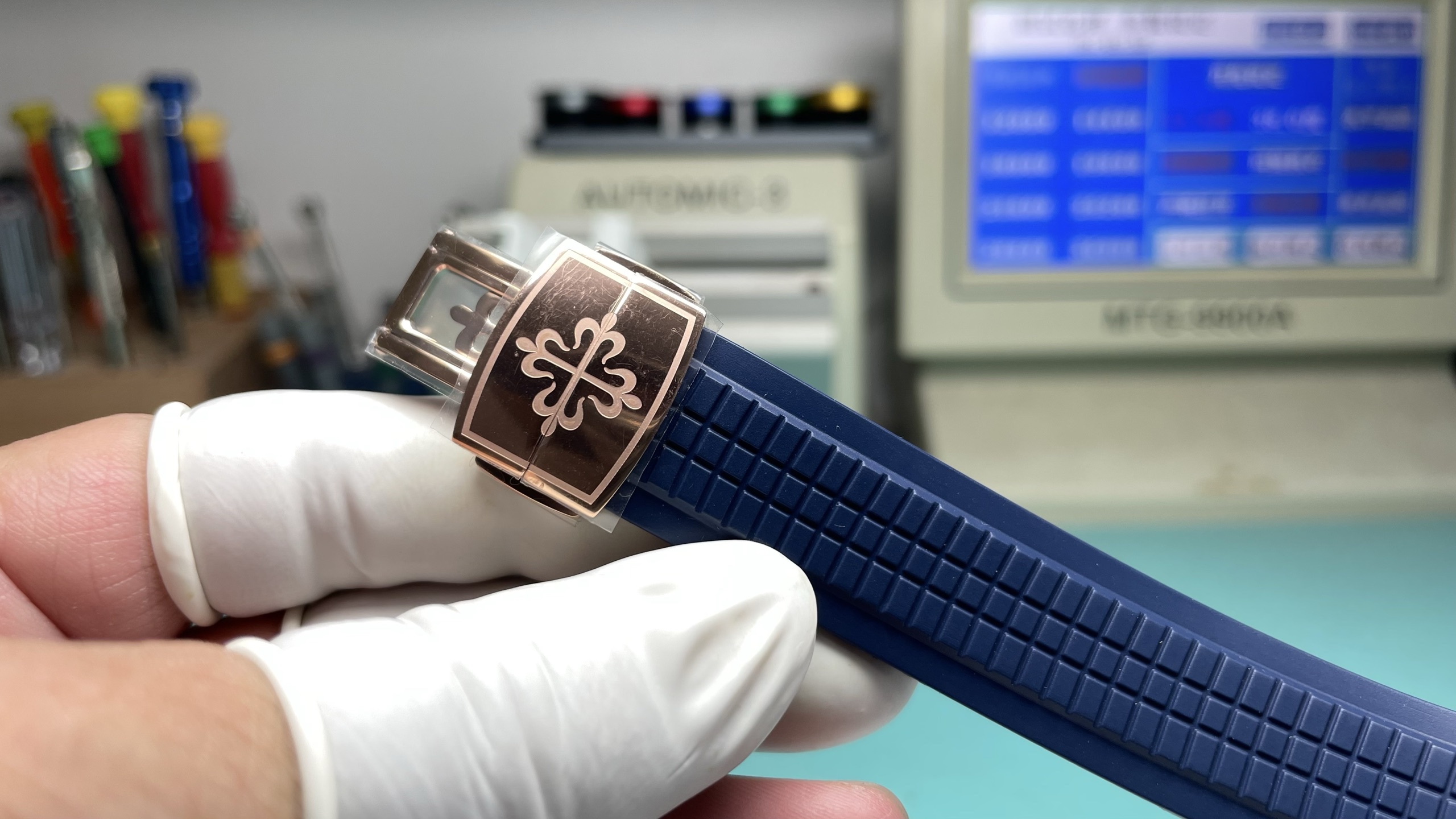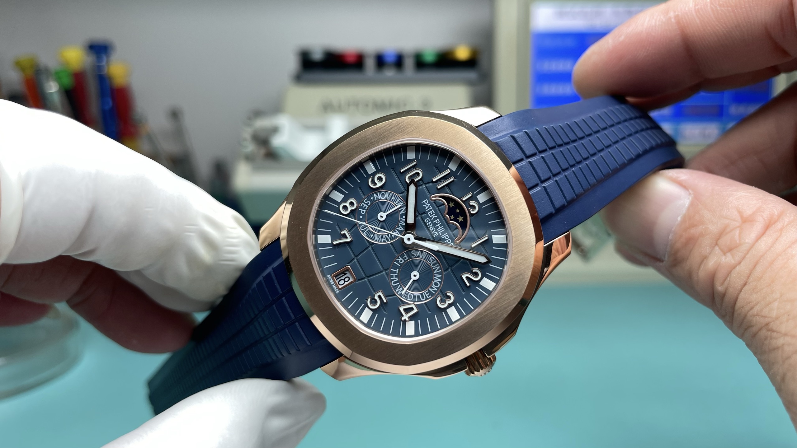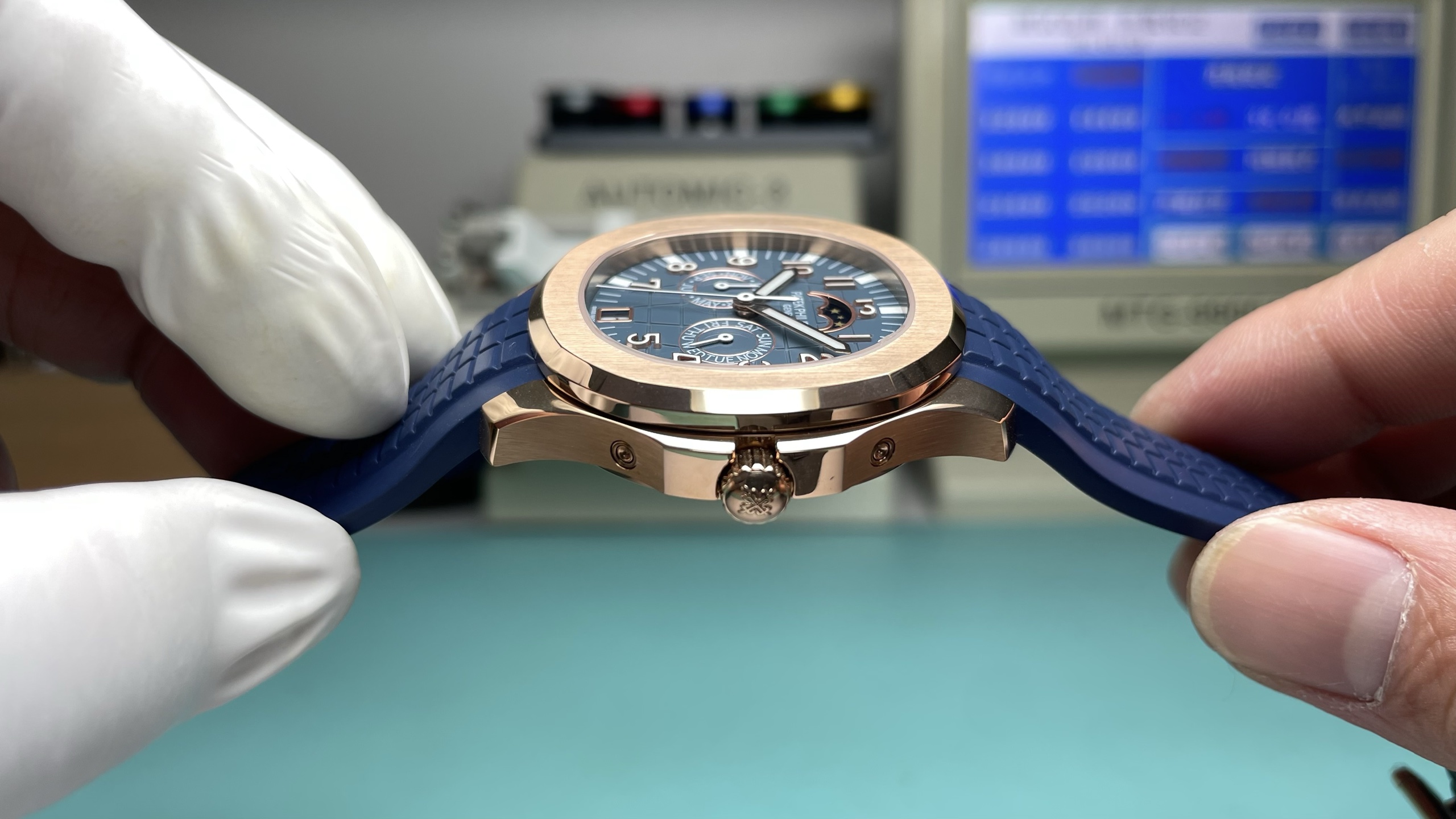 这款手表是AAAAA 1:1 质量 (非常棒). 使用了和原版一模一样的材料. 商标部分也保持了和百达翡丽/Patek Philippe一样. 图片拍摄是实物手表拍摄, 您所收到的实物保证和我们图片一模一样.