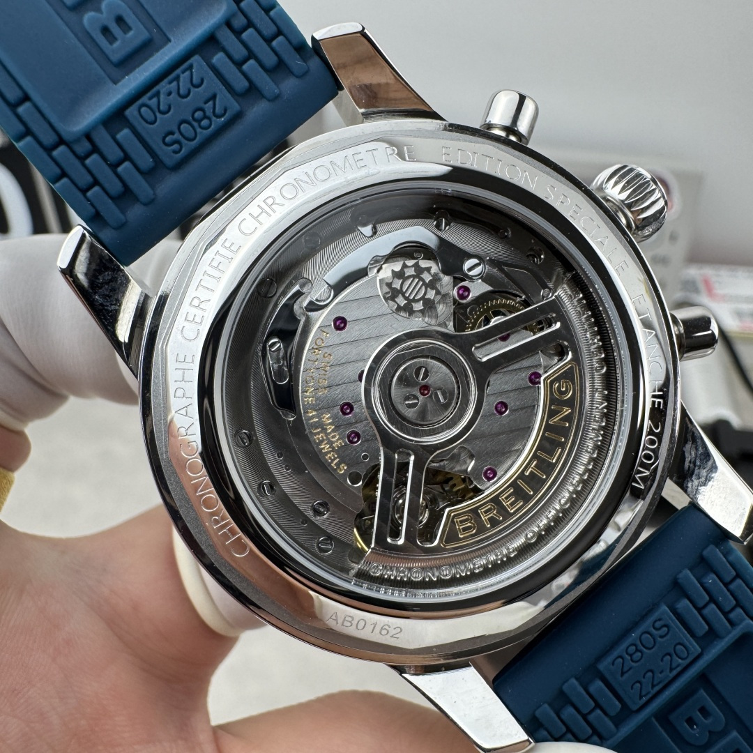 这款手表是AAAAA 1:1 质量 (非常棒). 使用了和原版一模一样的材料. 商标部分也保持了和Breitling一样. 图片拍摄是实物手表拍摄, 您所收到的实物保证和我们图片一模一样.