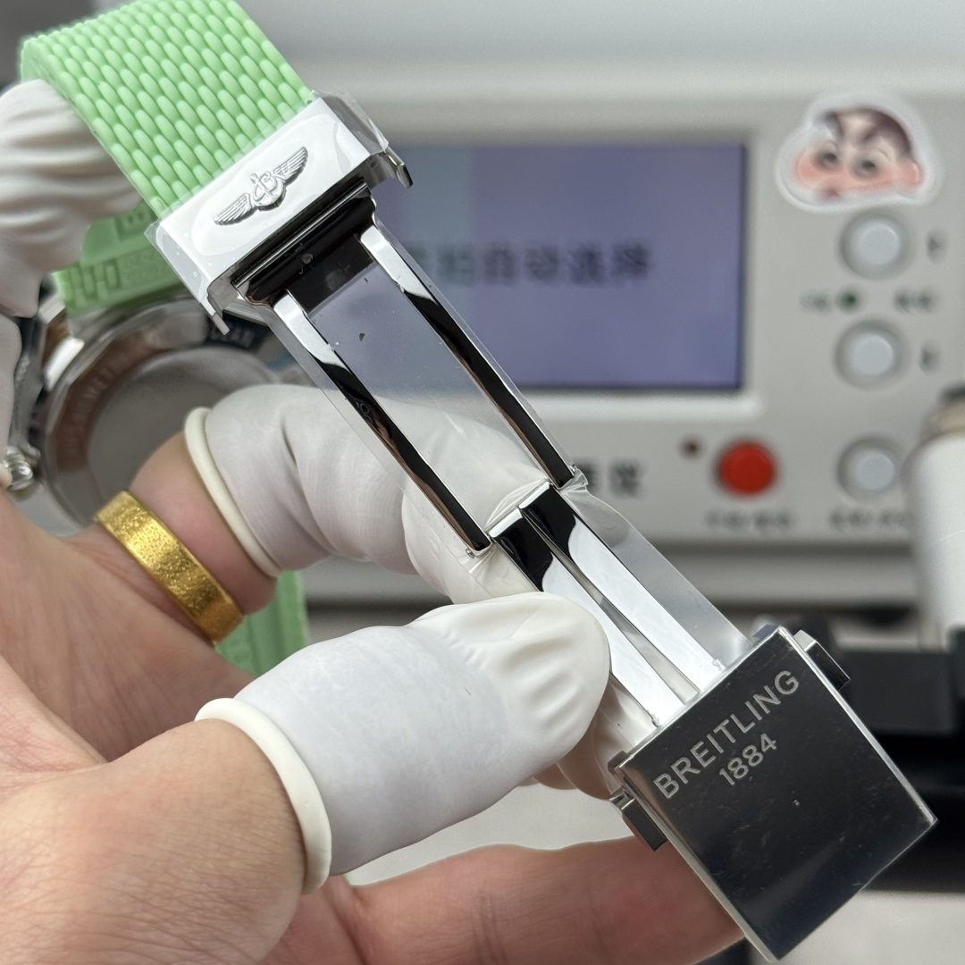 这款手表是AAAAA 1:1 质量 (非常棒). 使用了和原版一模一样的材料. 商标部分也保持了和Breitling一样. 图片拍摄是实物手表拍摄, 您所收到的实物保证和我们图片一模一样.