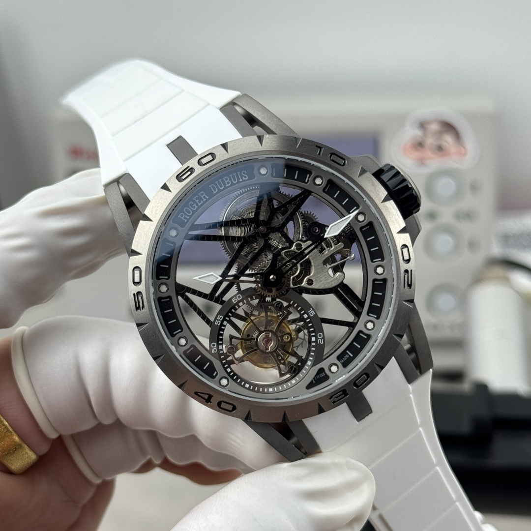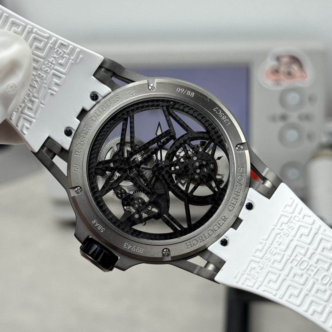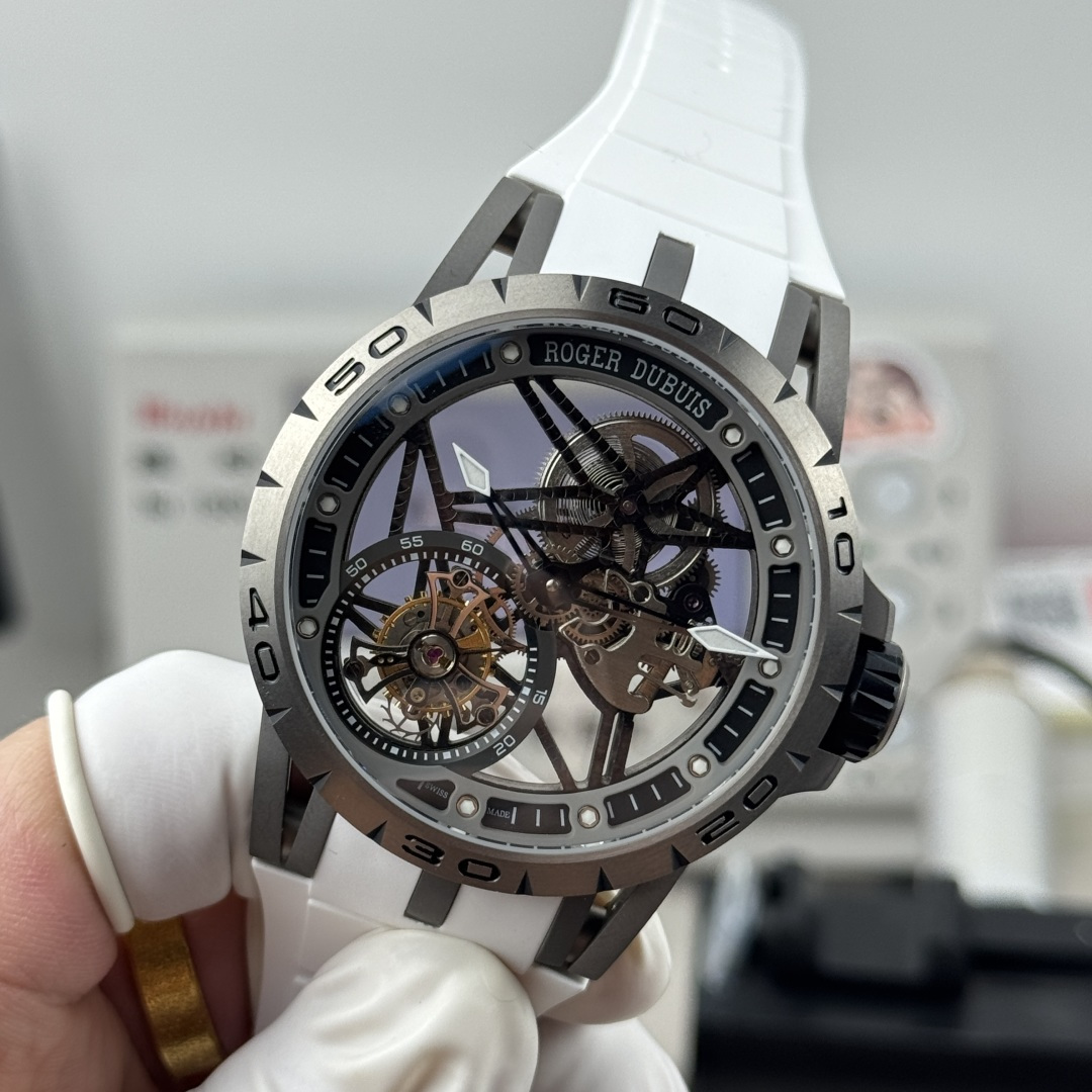 这款手表是AAAAA 1:1 质量 (非常棒). 使用了和原版一模一样的材料. 商标部分也保持了和Roger Dubuis一样. 图片拍摄是实物手表拍摄, 您所收到的实物保证和我们图片一模一样.