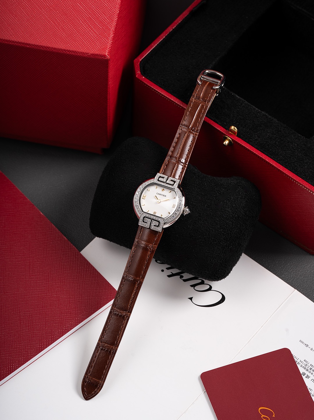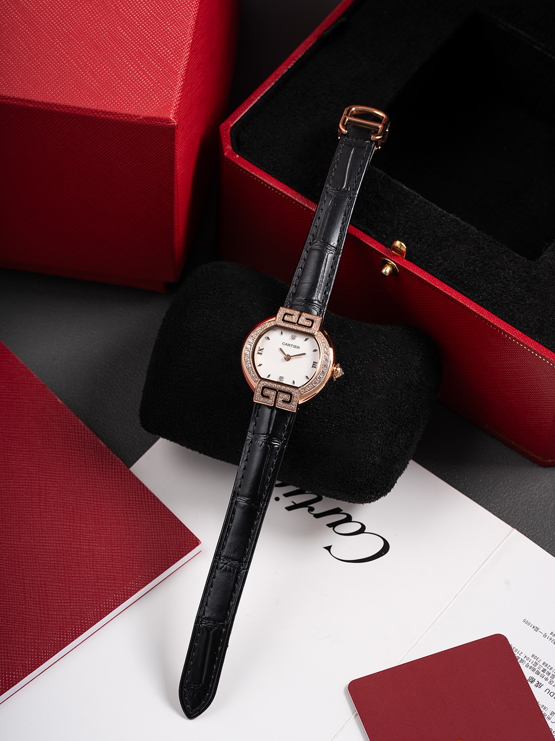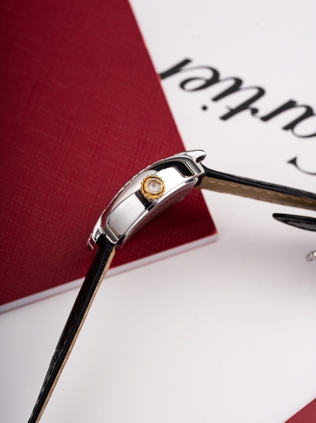 这款手表是AAAAA 1:1 质量 (非常棒). 使用了和原版一模一样的材料. 商标部分也保持了和卡地亚/Cartier一样. 图片拍摄是实物手表拍摄, 您所收到的实物保证和我们图片一模一样.