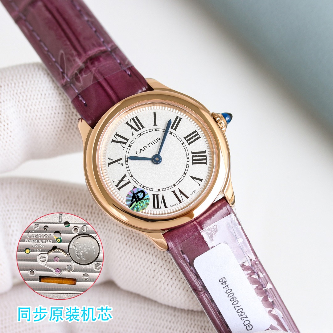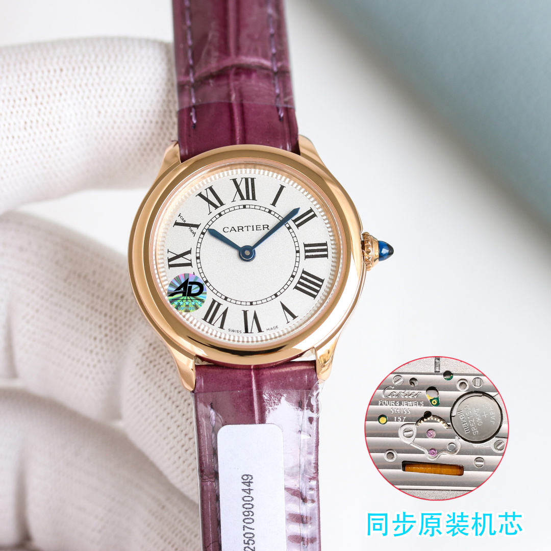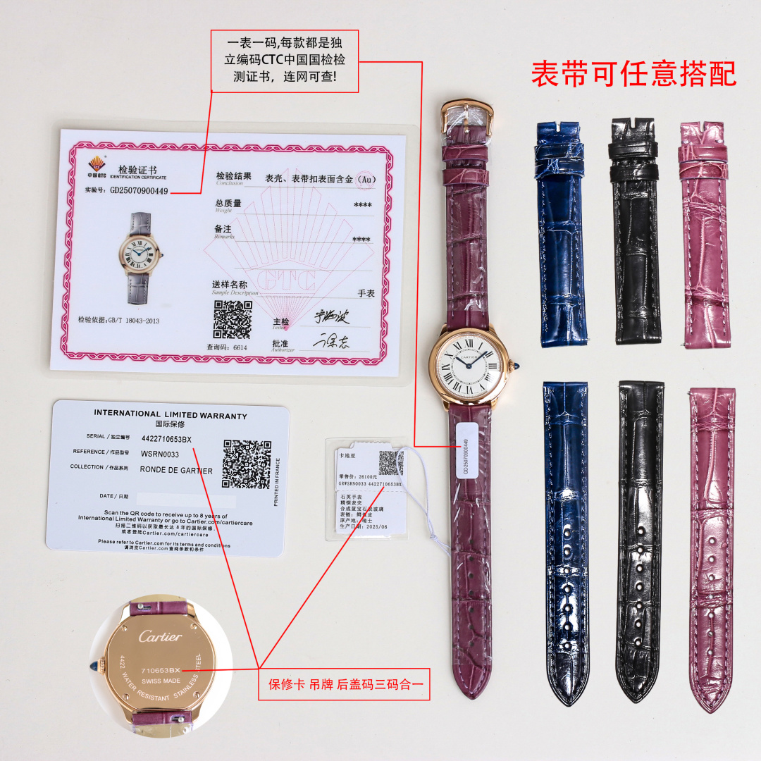 这款手表是AAAAA 1:1 质量 (非常棒). 使用了和原版一模一样的材料. 商标部分也保持了和卡地亚/Cartier一样. 图片拍摄是实物手表拍摄, 您所收到的实物保证和我们图片一模一样.
