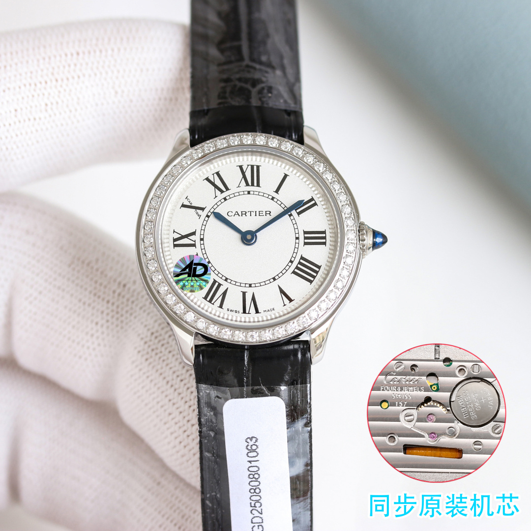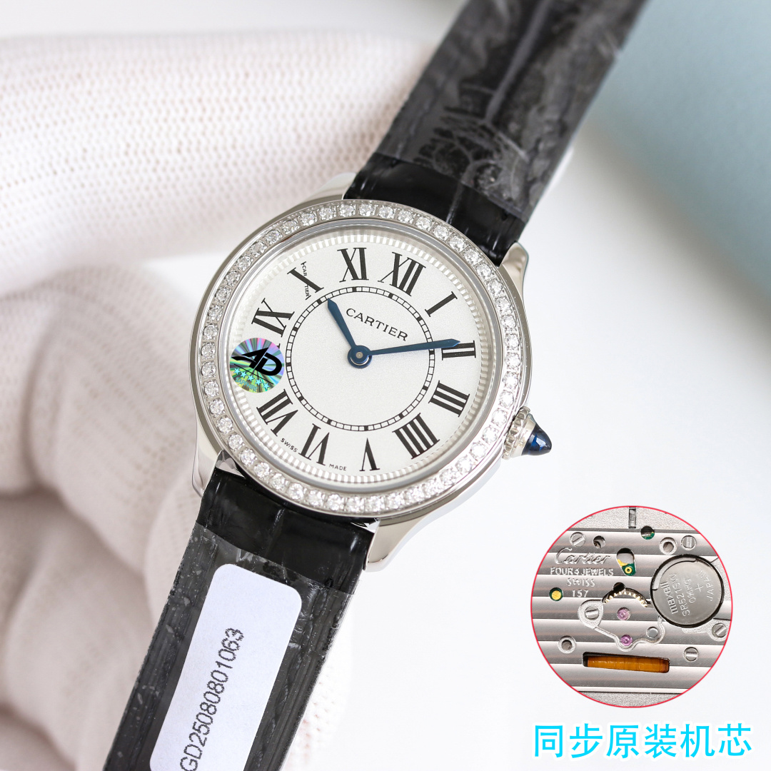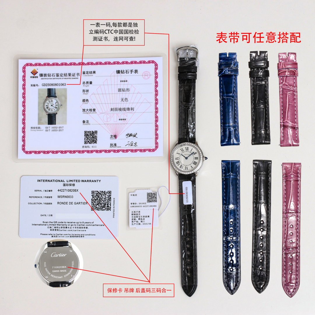 这款手表是AAAAA 1:1 质量 (非常棒). 使用了和原版一模一样的材料. 商标部分也保持了和卡地亚/Cartier一样. 图片拍摄是实物手表拍摄, 您所收到的实物保证和我们图片一模一样.