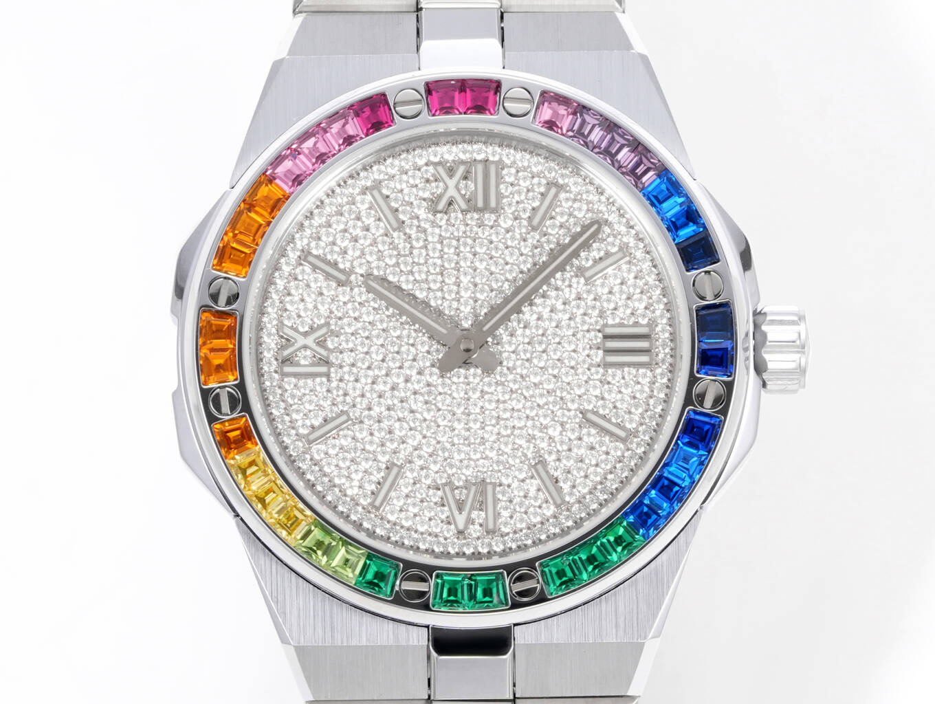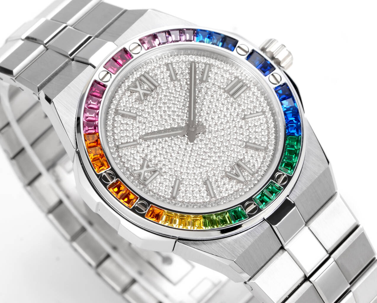 这款手表是AAAAA 1:1 质量 (非常棒). 使用了和原版一模一样的材料. 商标部分也保持了和萧邦/Chopard一样. 图片拍摄是实物手表拍摄, 您所收到的实物保证和我们图片一模一样.
