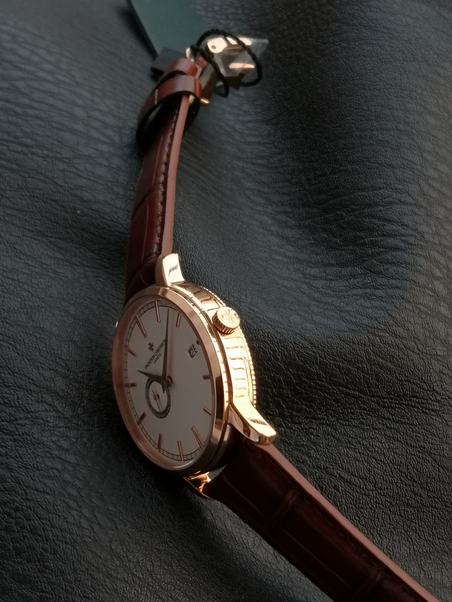 这款手表是AAAAA 1:1 质量 (非常棒). 使用了和原版一模一样的材料. 商标部分也保持了和江诗丹顿/Vacheron Constantin一样. 图片拍摄是实物手表拍摄, 您所收到的实物保证和我们图片一模一样.