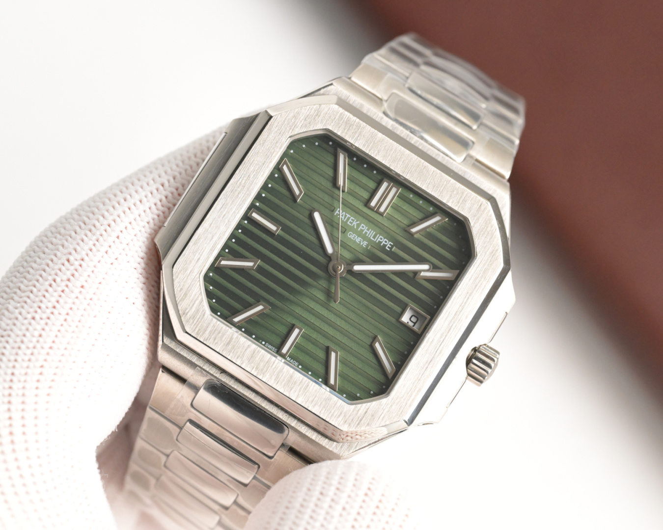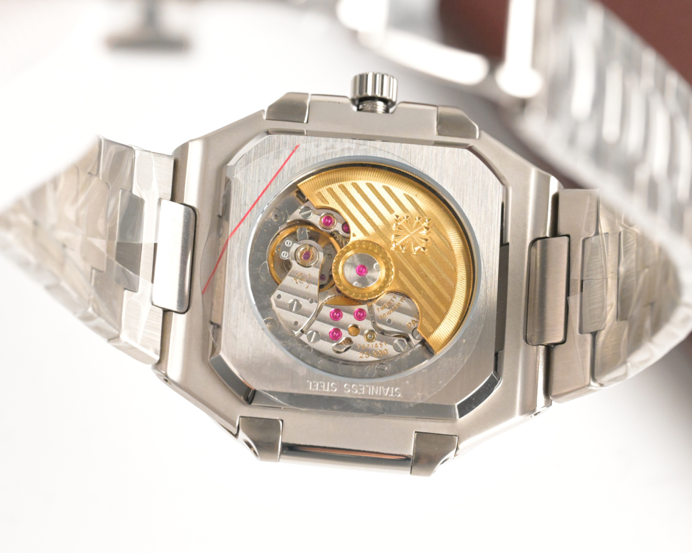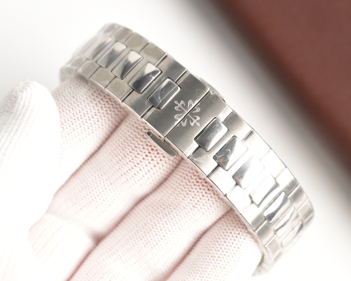 这款手表是AAAAA 1:1 质量 (非常棒). 使用了和原版一模一样的材料. 商标部分也保持了和百达翡丽/Patek Philippe一样. 图片拍摄是实物手表拍摄, 您所收到的实物保证和我们图片一模一样.