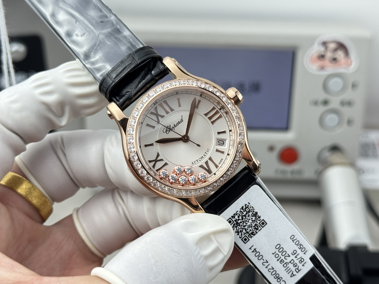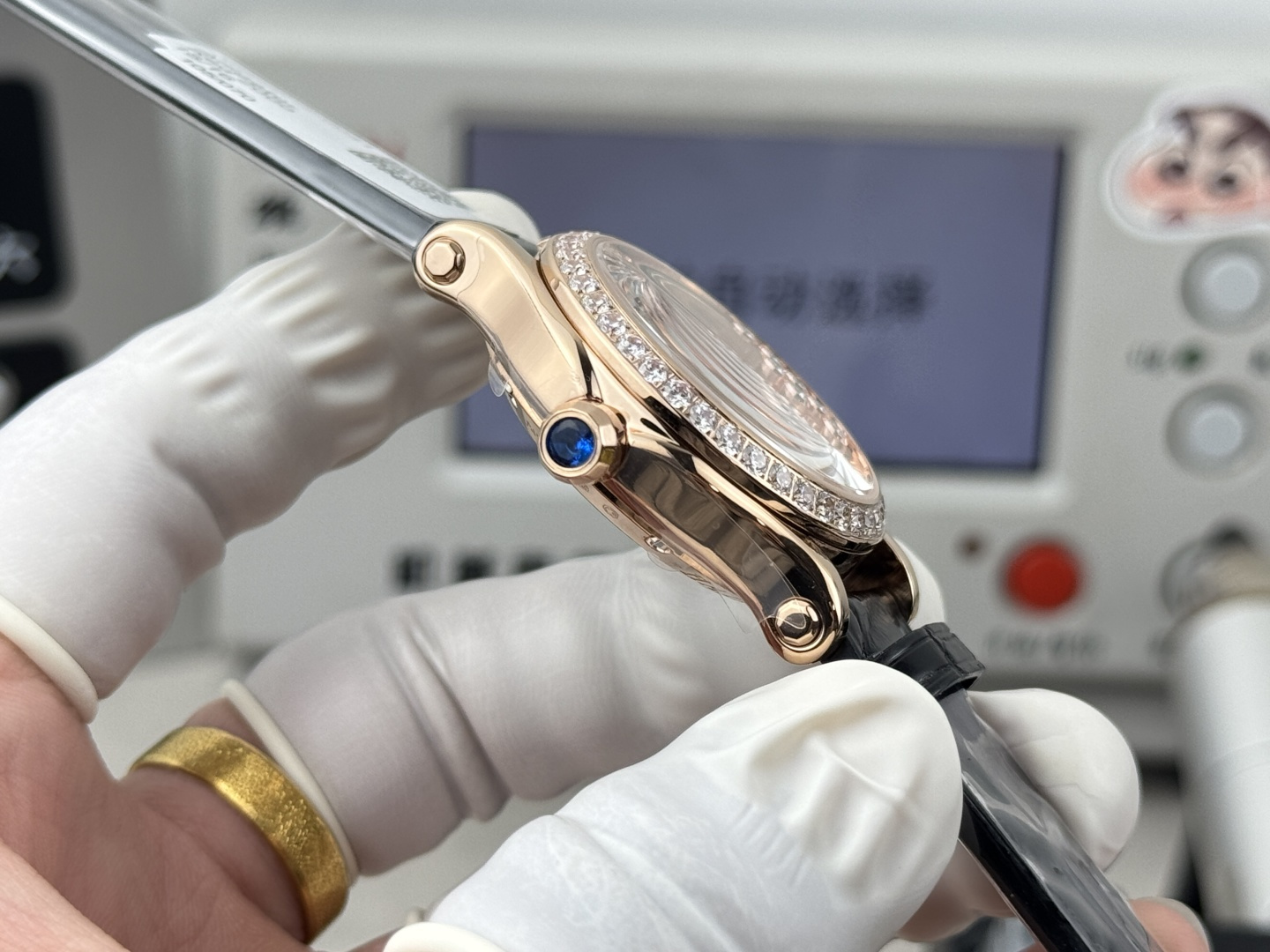 这款手表是AAAAA 1:1 质量 (非常棒). 使用了和原版一模一样的材料. 商标部分也保持了和萧邦/Chopard一样. 图片拍摄是实物手表拍摄, 您所收到的实物保证和我们图片一模一样.
