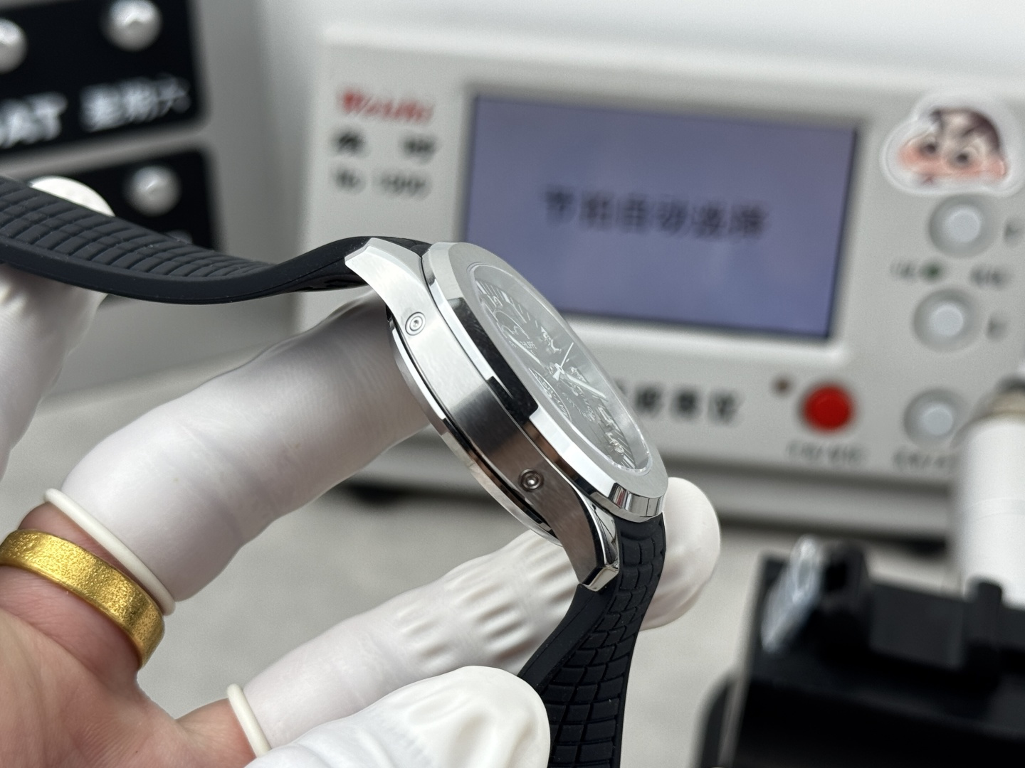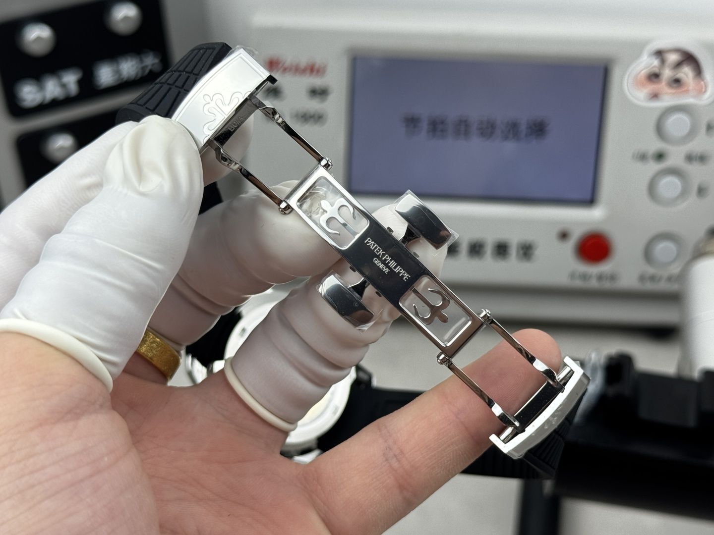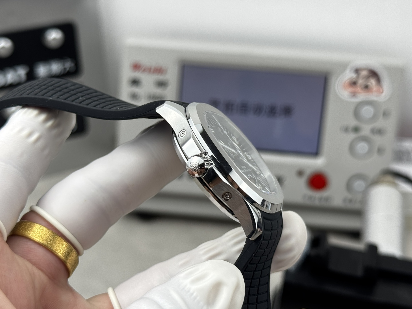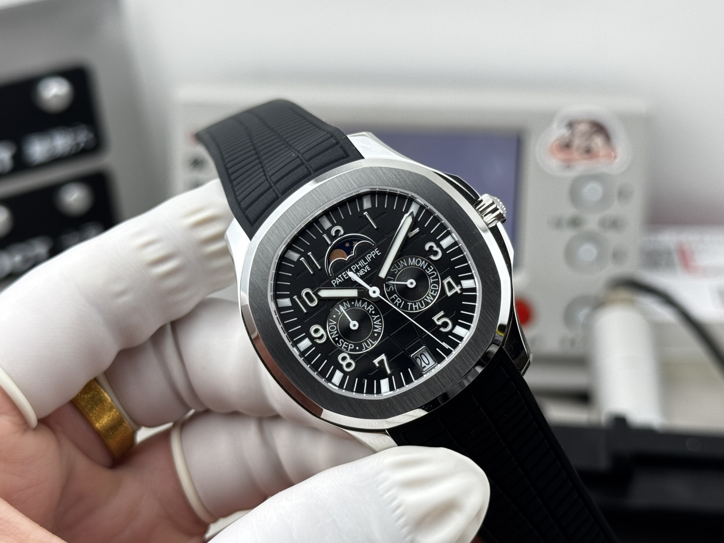 这款手表是AAAAA 1:1 质量 (非常棒). 使用了和原版一模一样的材料. 商标部分也保持了和百达翡丽/Patek Philippe一样. 图片拍摄是实物手表拍摄, 您所收到的实物保证和我们图片一模一样.