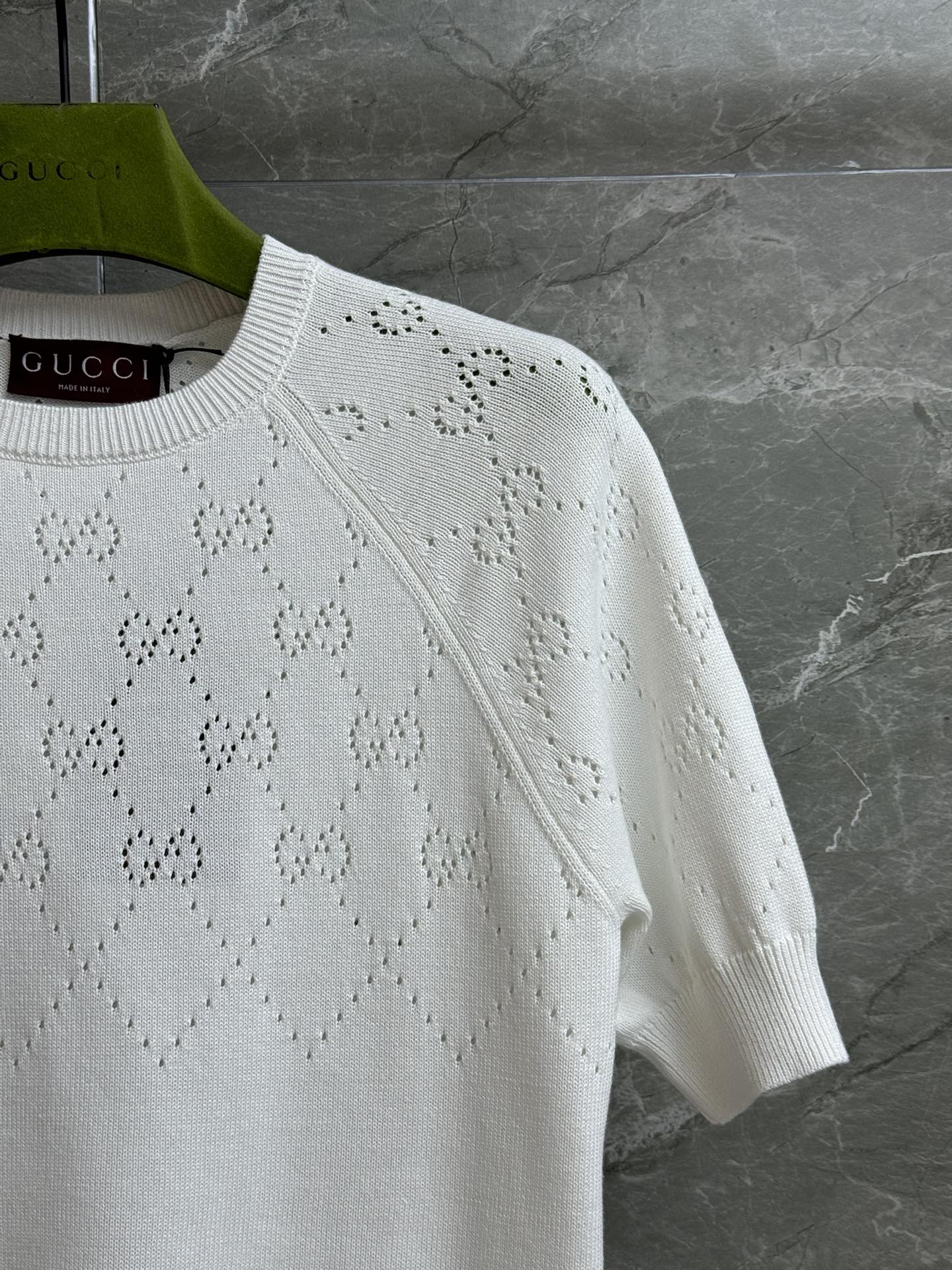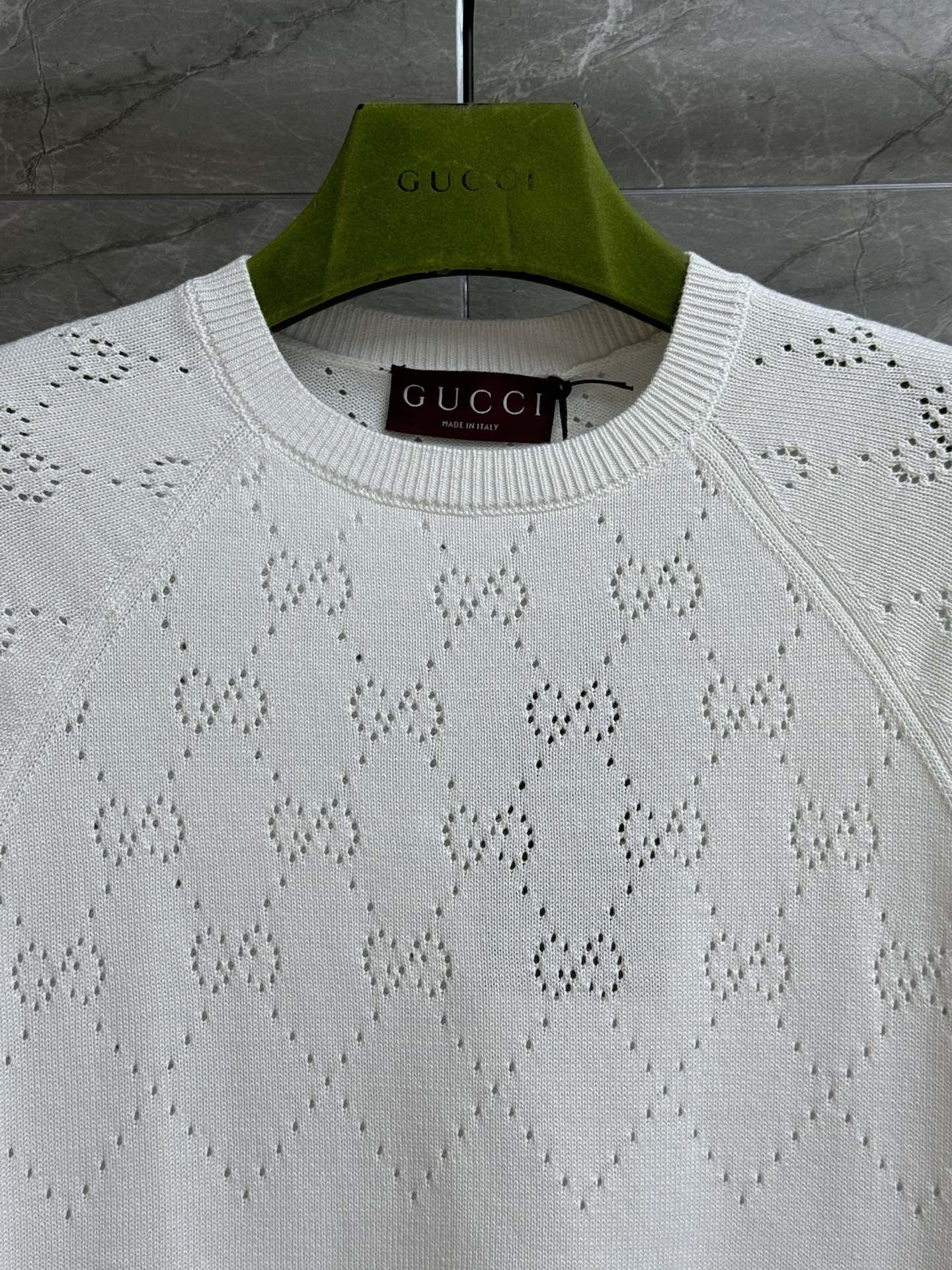 这款衣服是AAAAA 1:1 质量 (非常棒). 使用了和原版一模一样的材料. 商标部分也保持了和古奇/Gucci一样. 图片拍摄是实物衣服拍摄, 您所收到的实物保证和我们图片一模一样.