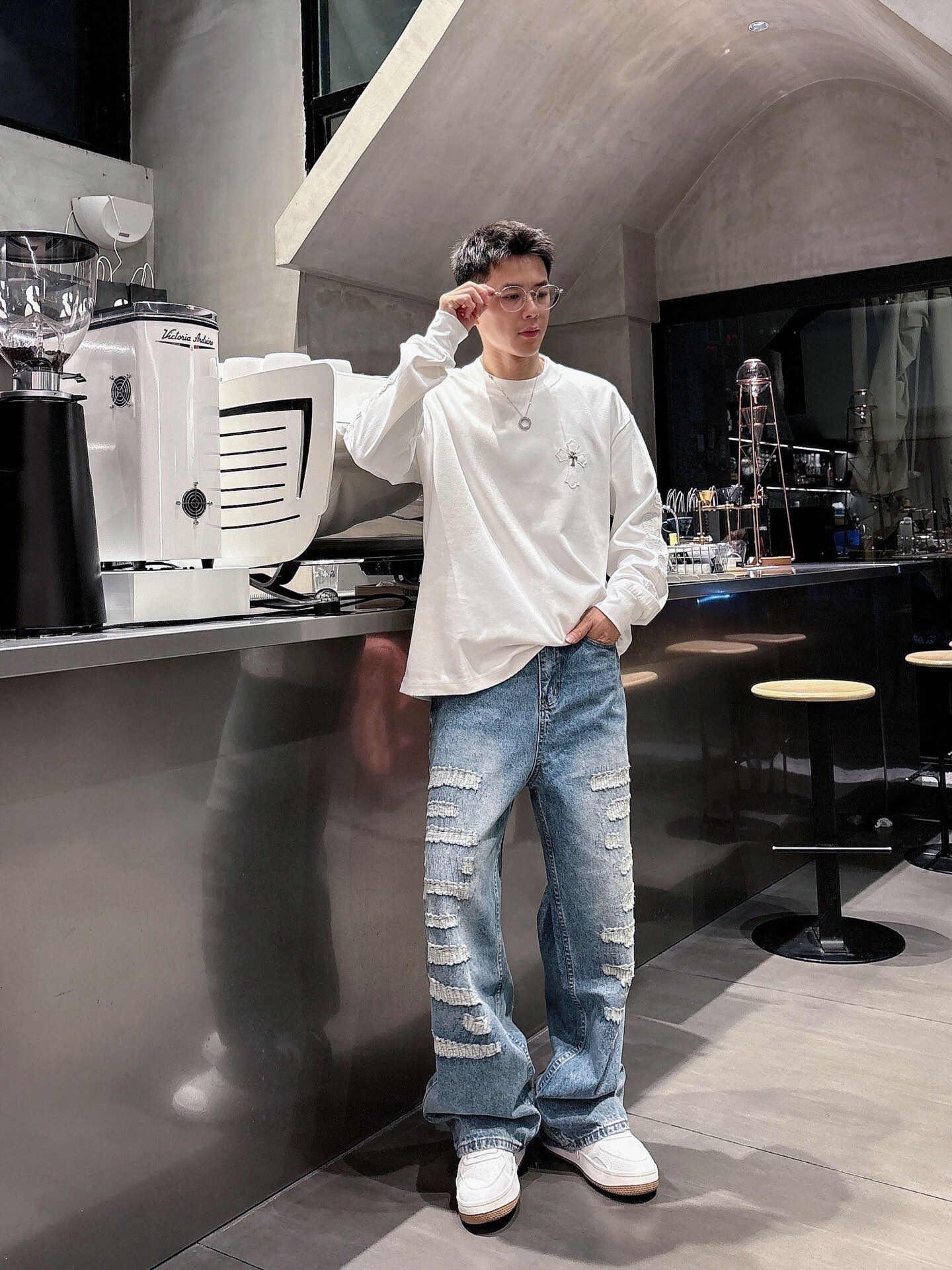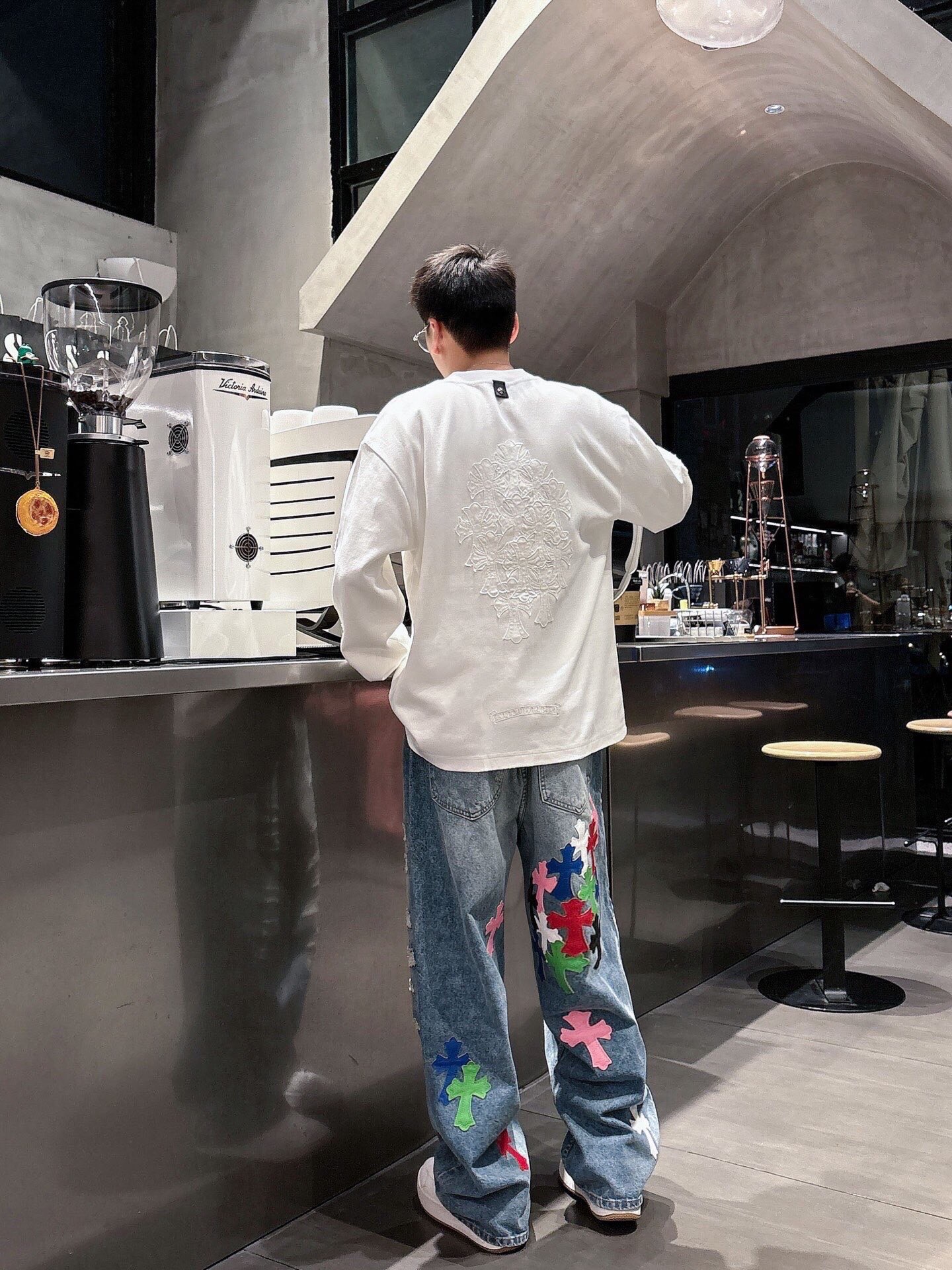 这款衣服是AAAAA 1:1 质量 (非常棒). 使用了和原版一模一样的材料. 商标部分也保持了和克罗心/Chrome Hearts一样. 图片拍摄是实物衣服拍摄, 您所收到的实物保证和我们图片一模一样.