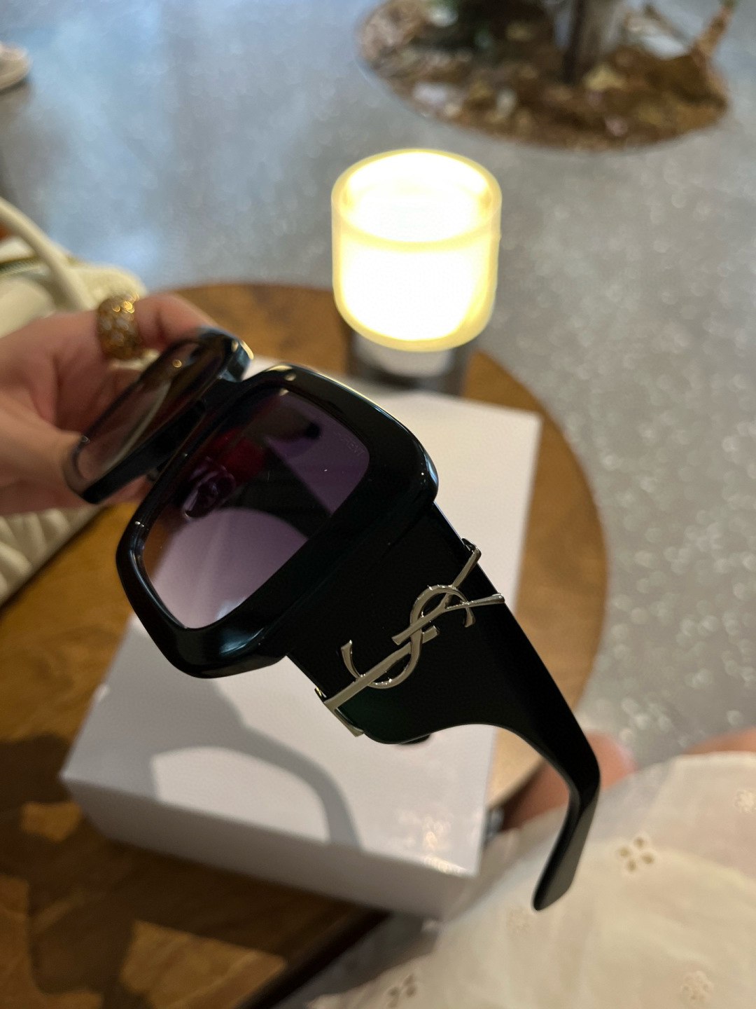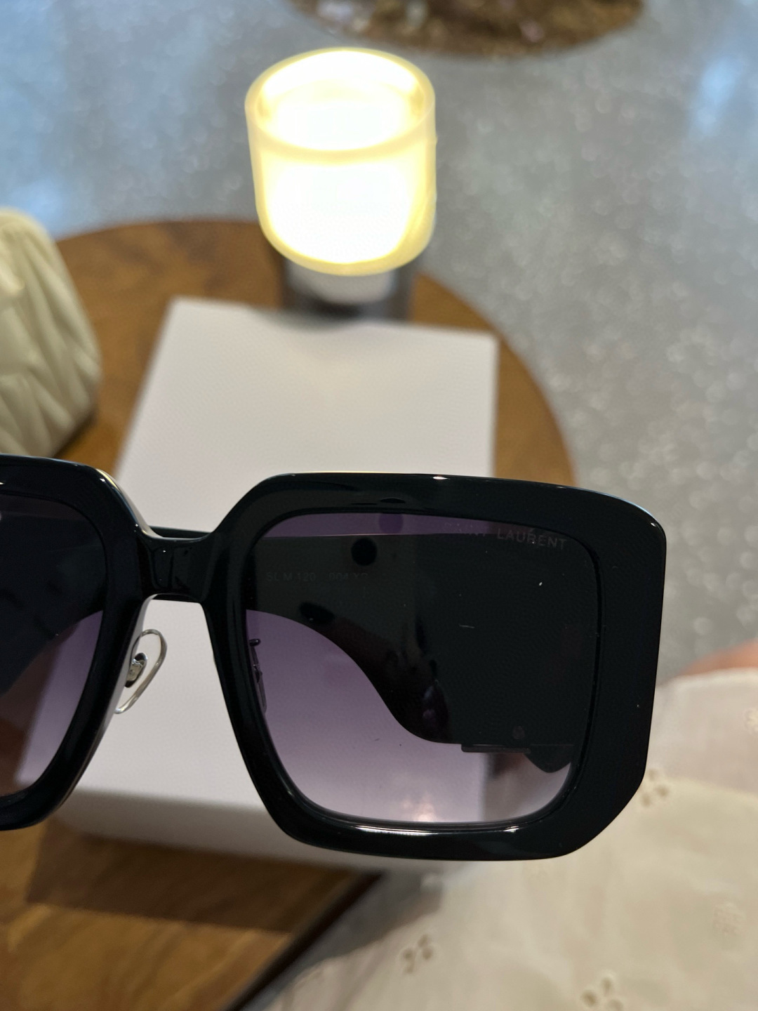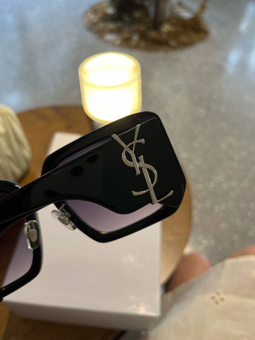 这款太阳眼镜是AAAAA 1:1 质量 (非常棒). 使用了和原版一模一样的材料. 商标部分也保持了和圣罗兰/Saint Laurent一样. 图片拍摄是实物太阳眼镜拍摄, 您所收到的实物保证和我们图片一模一样.