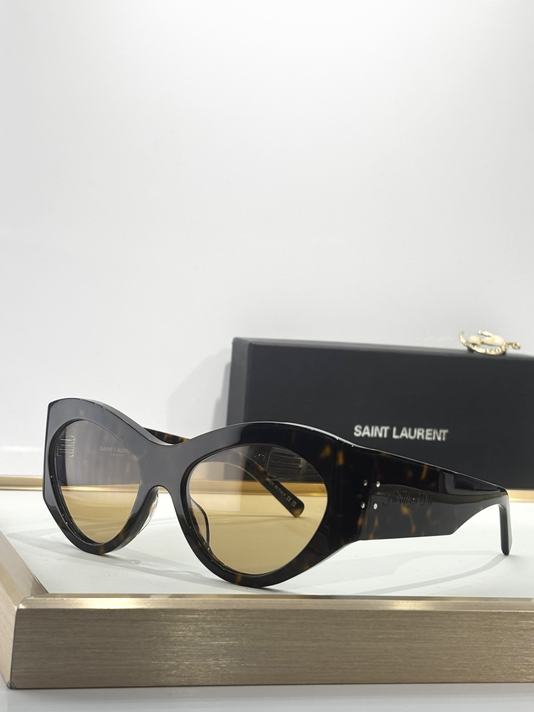 这款太阳眼镜是AAAAA 1:1 质量 (非常棒). 使用了和原版一模一样的材料. 商标部分也保持了和圣罗兰/Saint Laurent一样. 图片拍摄是实物太阳眼镜拍摄, 您所收到的实物保证和我们图片一模一样.