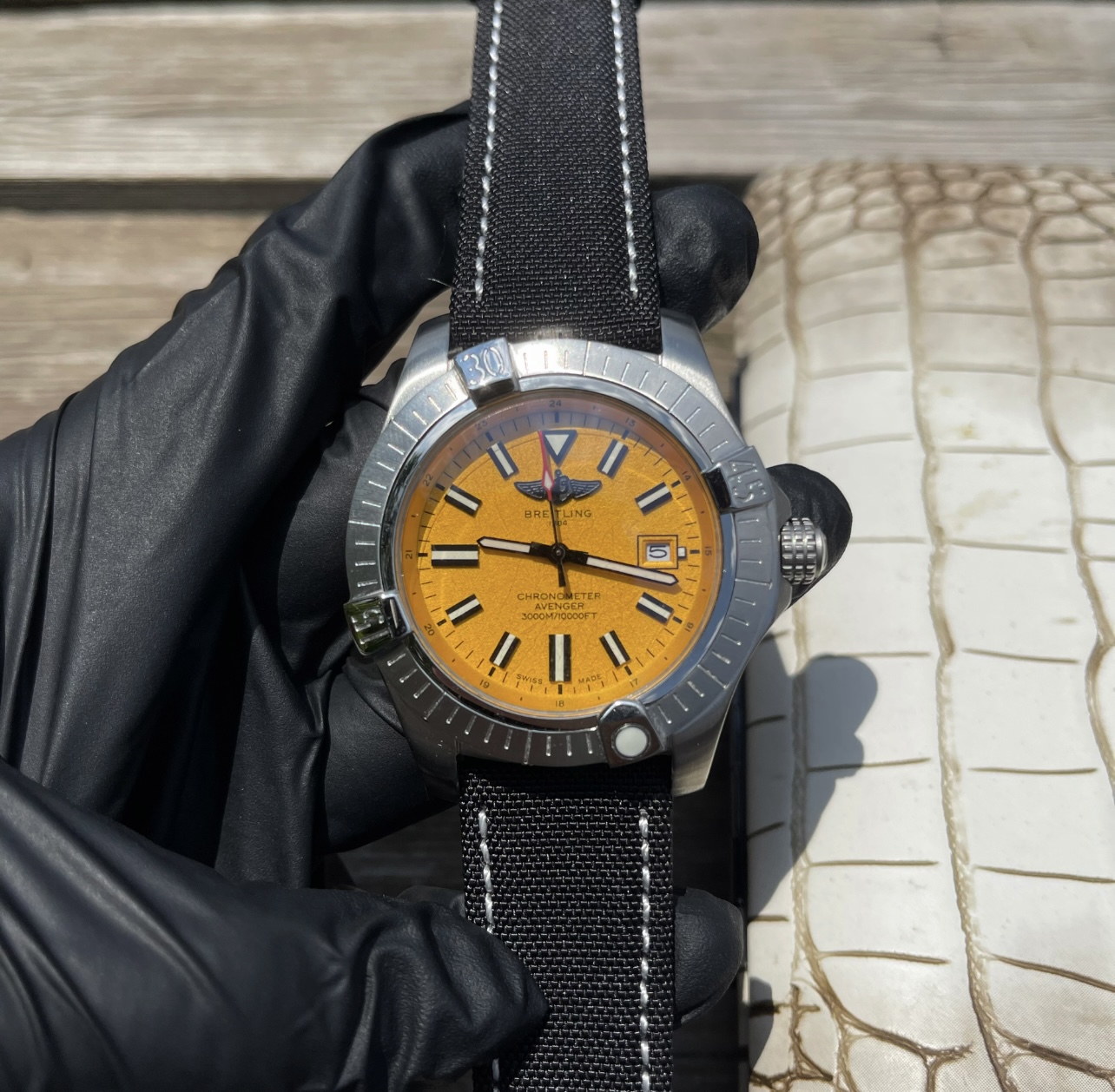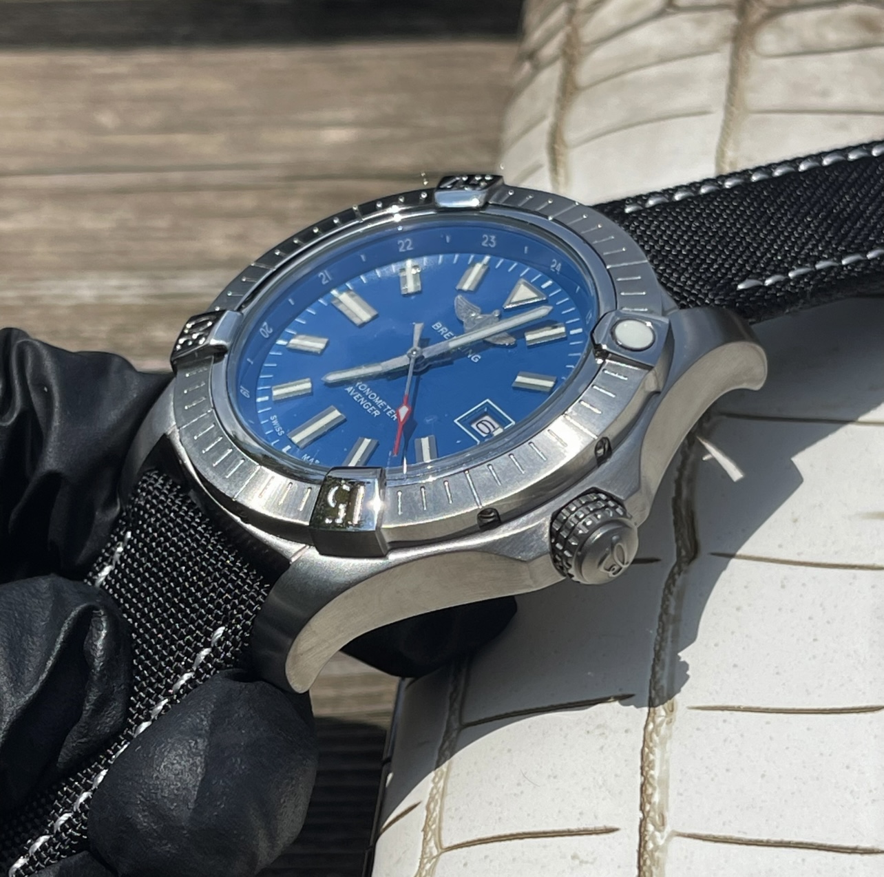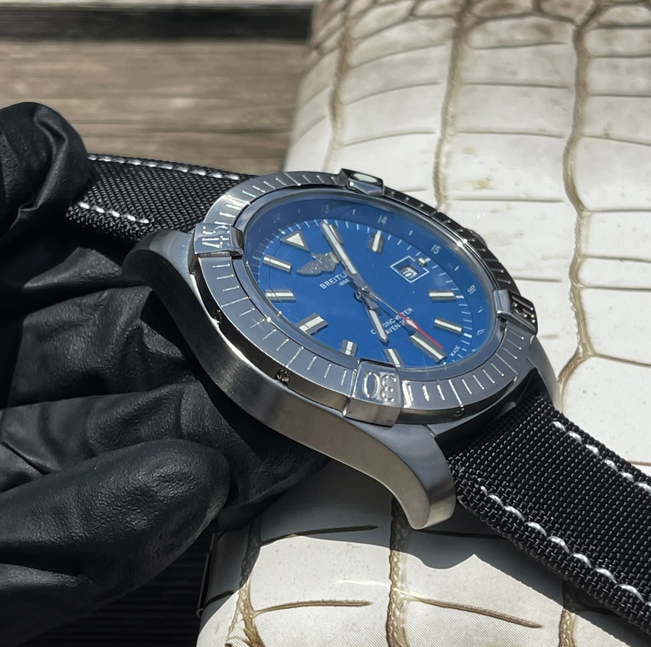 这款手表是AAAAA 1:1 质量 (非常棒). 使用了和原版一模一样的材料. 商标部分也保持了和Breitling一样. 图片拍摄是实物手表拍摄, 您所收到的实物保证和我们图片一模一样.