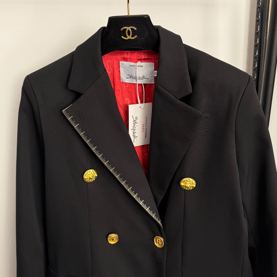 这款衣服是AAAAA 1:1 质量 (非常棒). 使用了和原版一模一样的材料. 商标部分也保持了和Schiaparelli一样. 图片拍摄是实物衣服拍摄, 您所收到的实物保证和我们图片一模一样.
