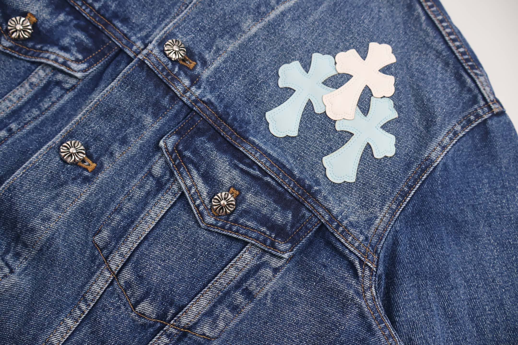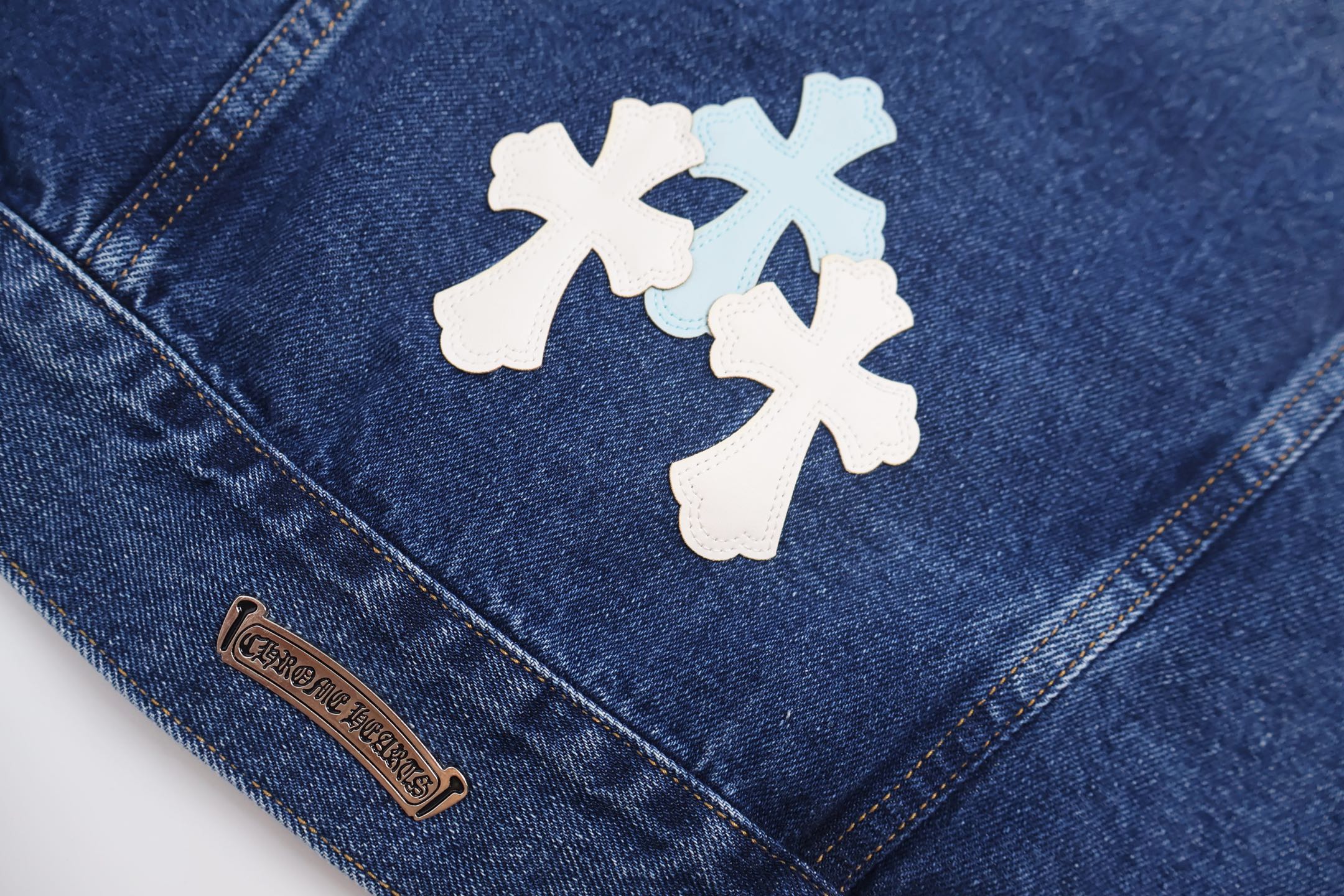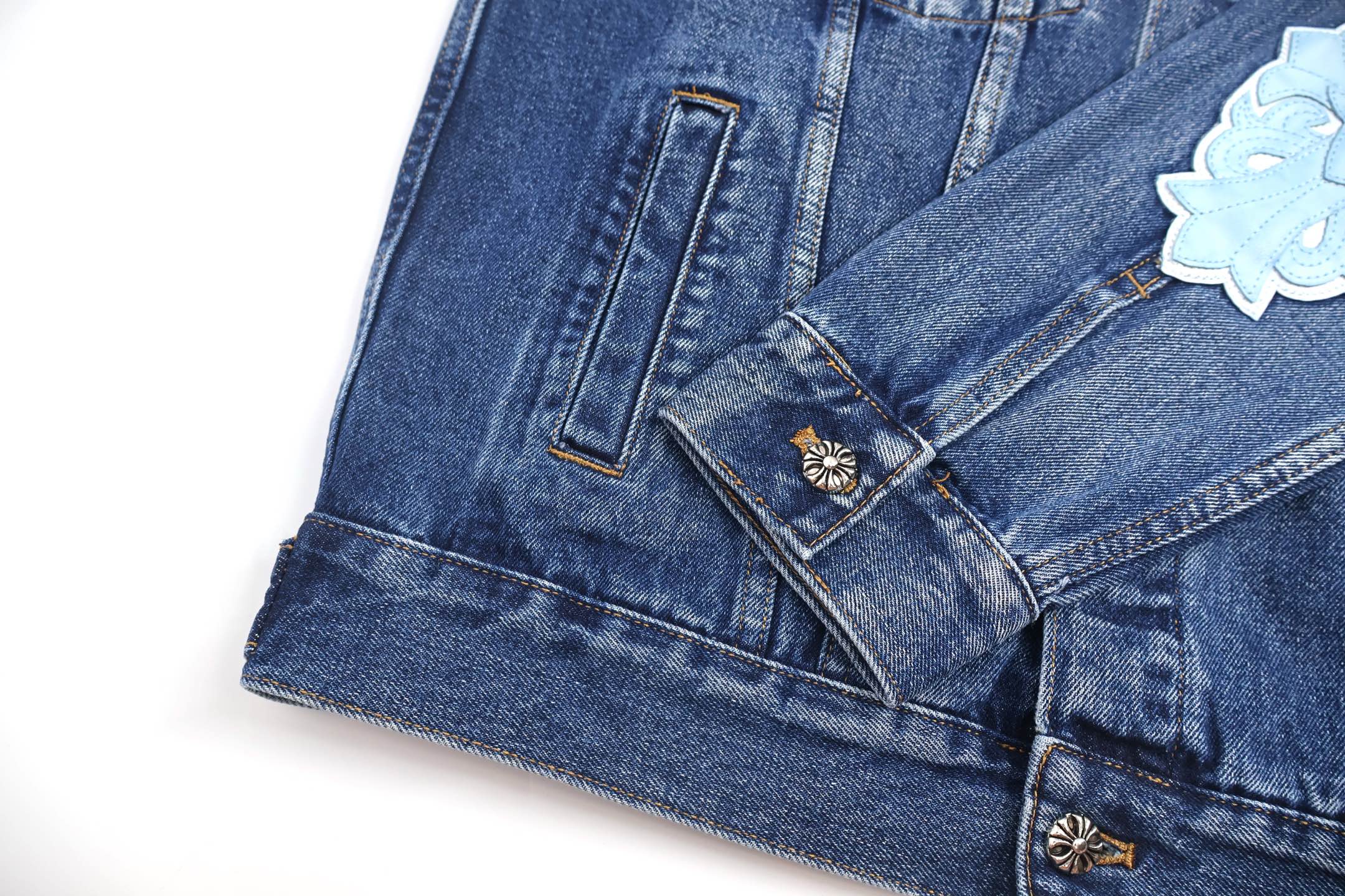 这款衣服是AAAAA 1:1 质量 (非常棒). 使用了和原版一模一样的材料. 商标部分也保持了和克罗心/Chrome Hearts一样. 图片拍摄是实物衣服拍摄, 您所收到的实物保证和我们图片一模一样.