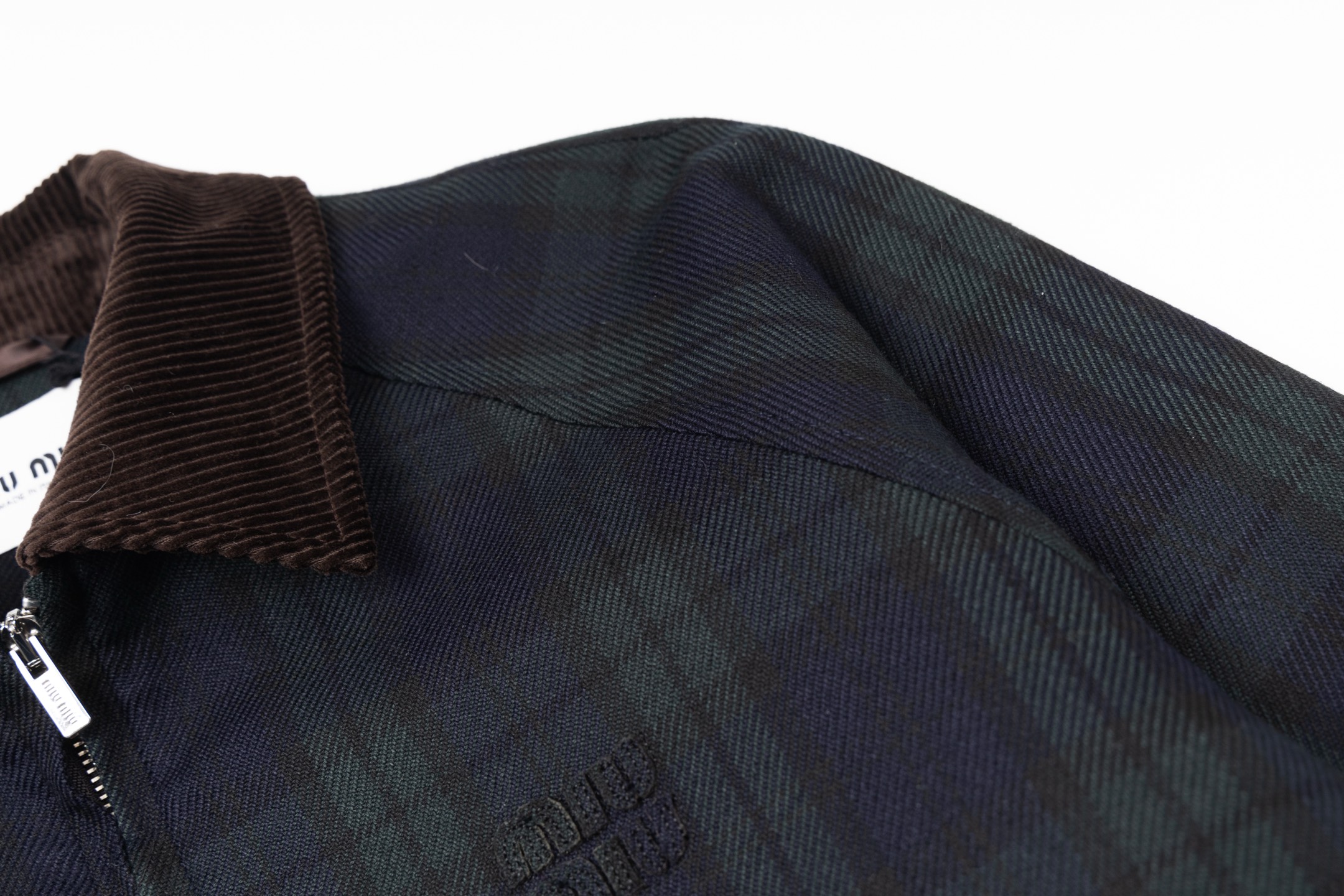 这款衣服是AAAAA 1:1 质量 (非常棒). 使用了和原版一模一样的材料. 商标部分也保持了和缪缪/Miu Miu一样. 图片拍摄是实物衣服拍摄, 您所收到的实物保证和我们图片一模一样.