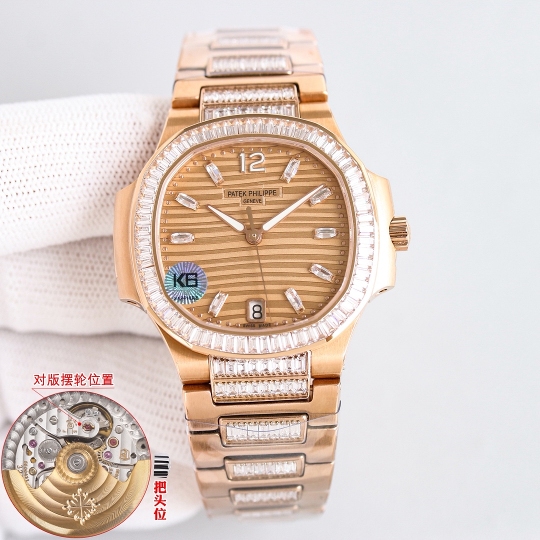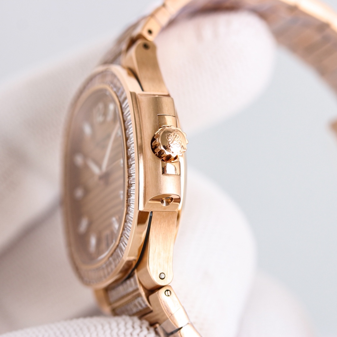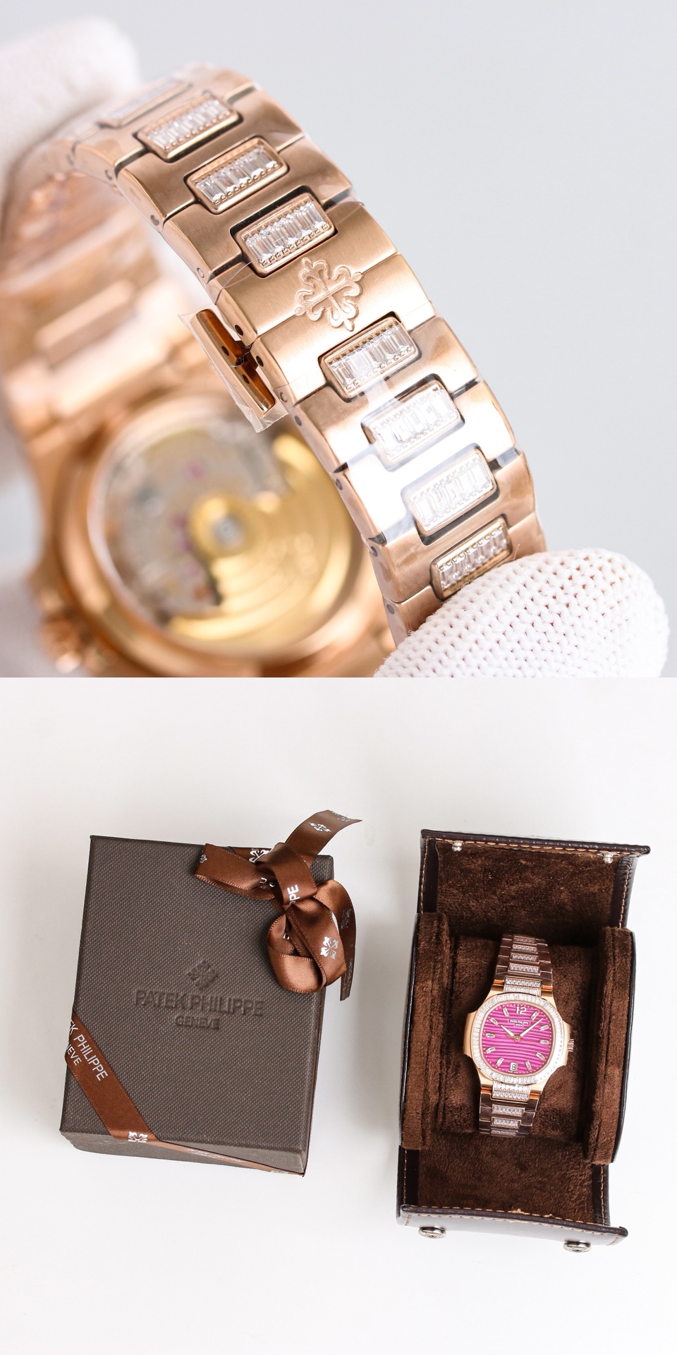 这款手表是AAAAA 1:1 质量 (非常棒). 使用了和原版一模一样的材料. 商标部分也保持了和百达翡丽/Patek Philippe一样. 图片拍摄是实物手表拍摄, 您所收到的实物保证和我们图片一模一样.