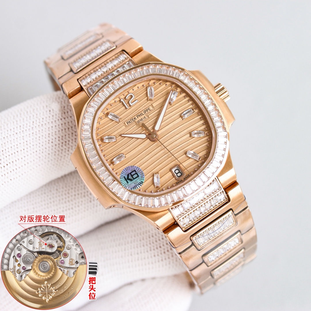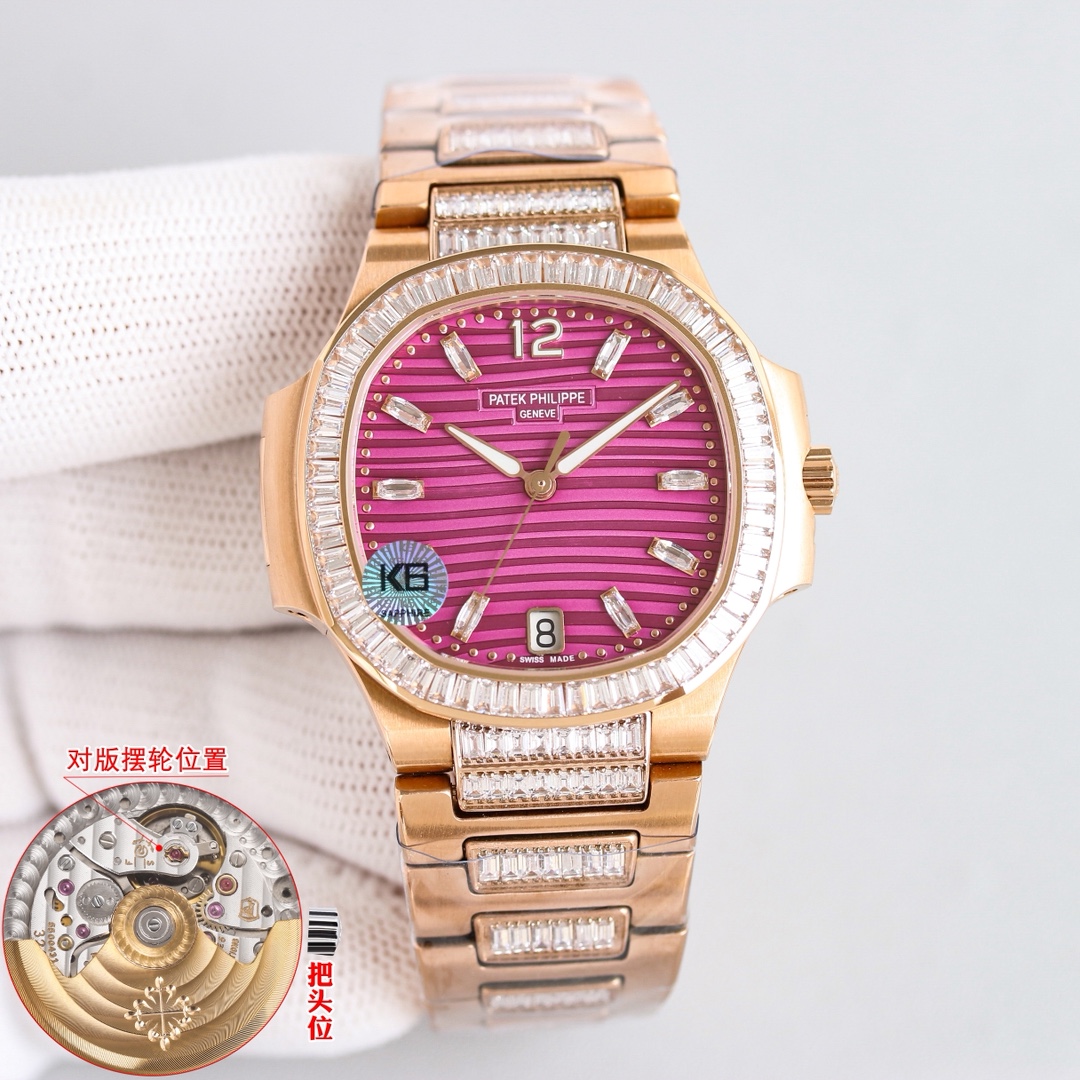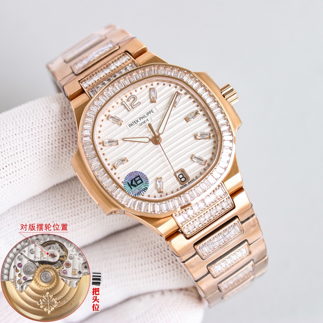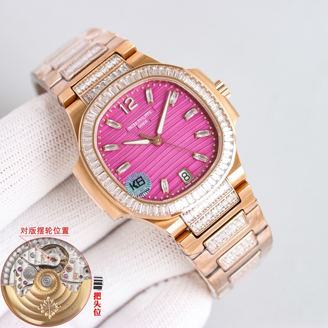 这款手表是AAAAA 1:1 质量 (非常棒). 使用了和原版一模一样的材料. 商标部分也保持了和百达翡丽/Patek Philippe一样. 图片拍摄是实物手表拍摄, 您所收到的实物保证和我们图片一模一样.
