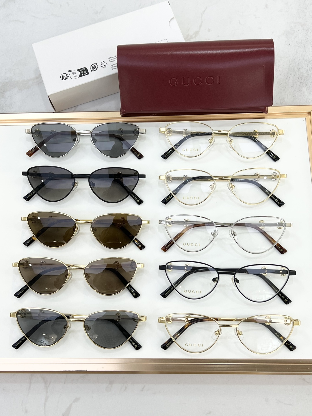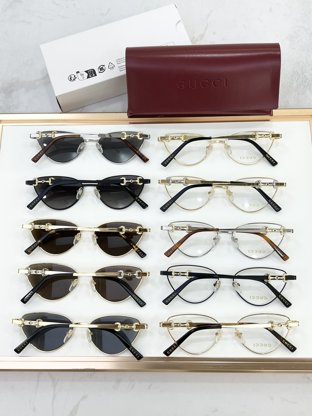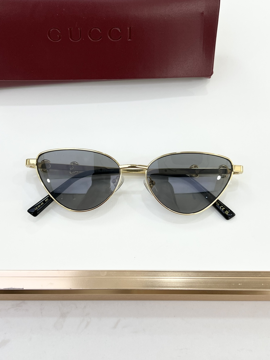这款太阳眼镜是AAAAA 1:1 质量 (非常棒). 使用了和原版一模一样的材料. 商标部分也保持了和古奇/Gucci一样. 图片拍摄是实物太阳眼镜拍摄, 您所收到的实物保证和我们图片一模一样.