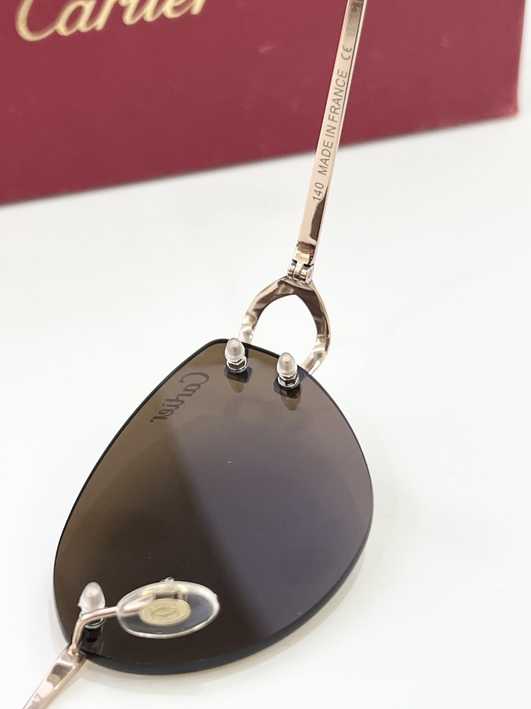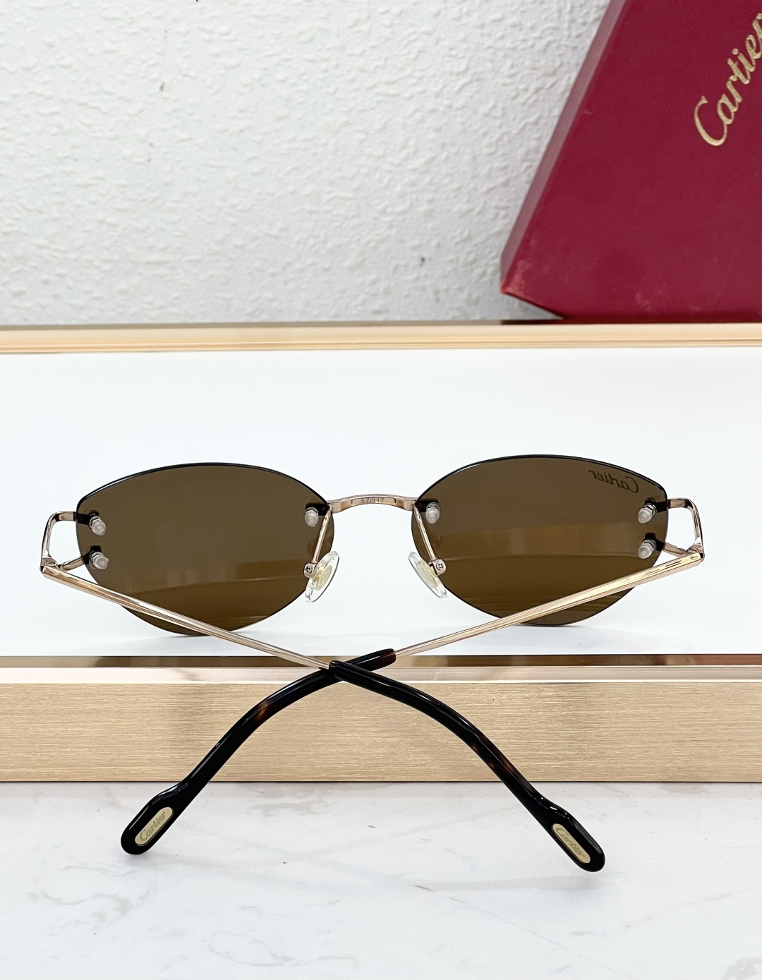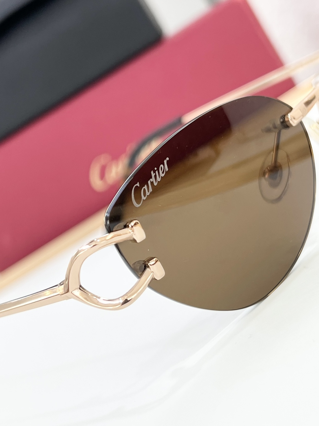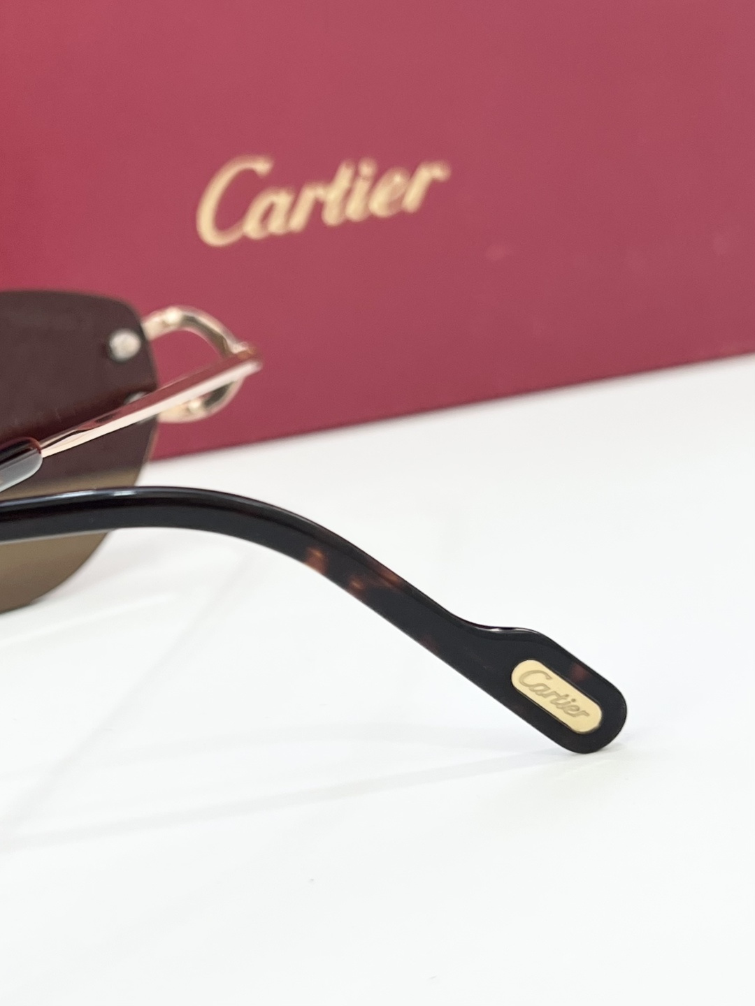 这款太阳眼镜是AAAAA 1:1 质量 (非常棒). 使用了和原版一模一样的材料. 商标部分也保持了和卡地亚/Cartier一样. 图片拍摄是实物太阳眼镜拍摄, 您所收到的实物保证和我们图片一模一样.