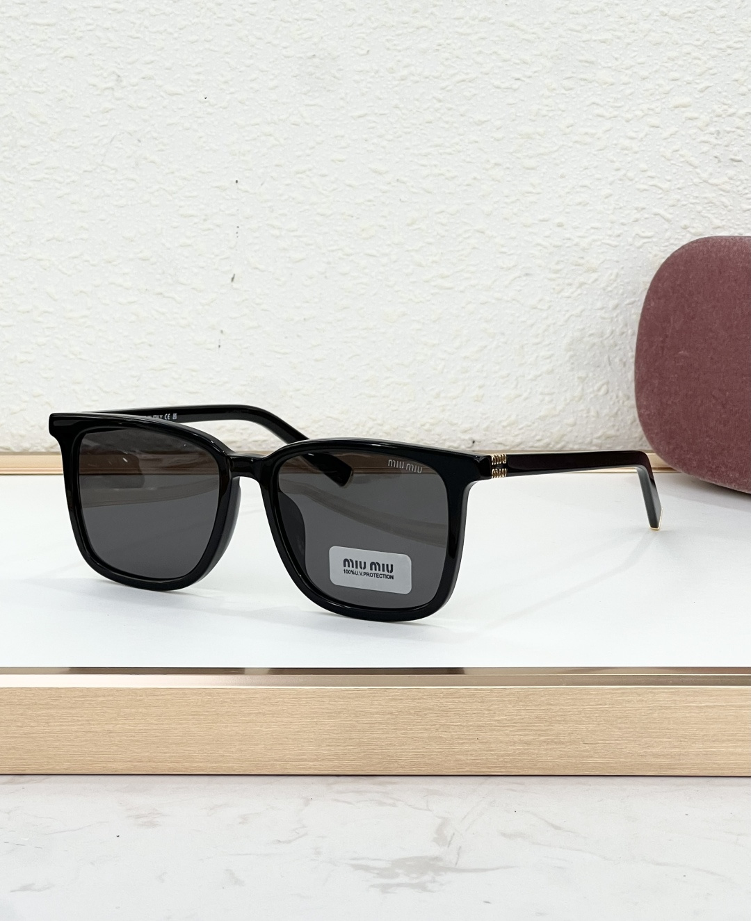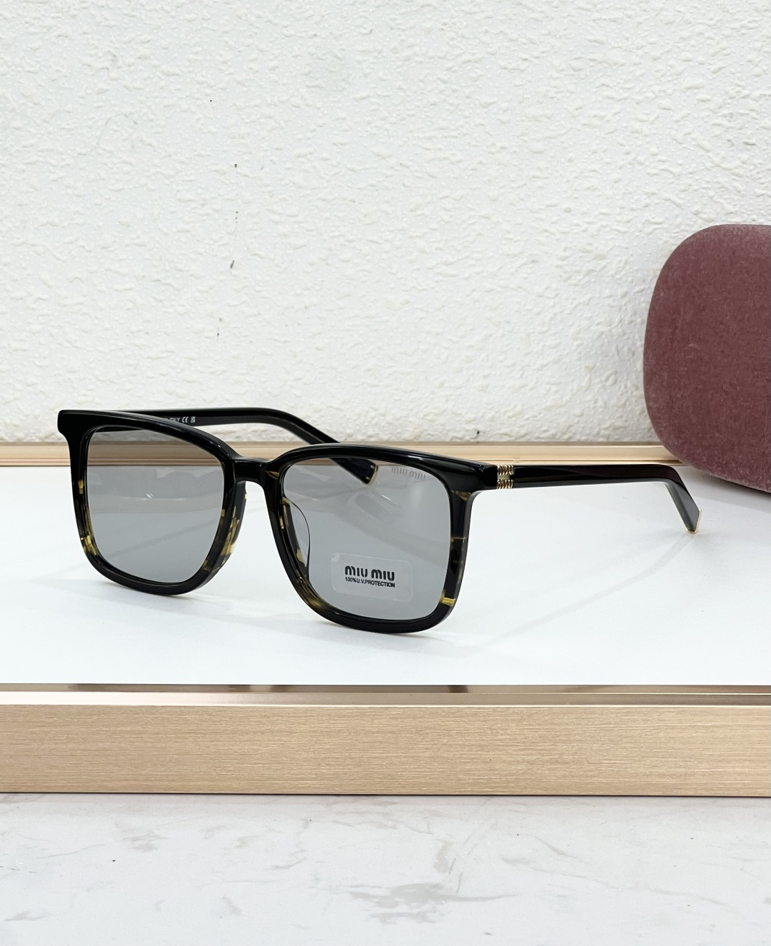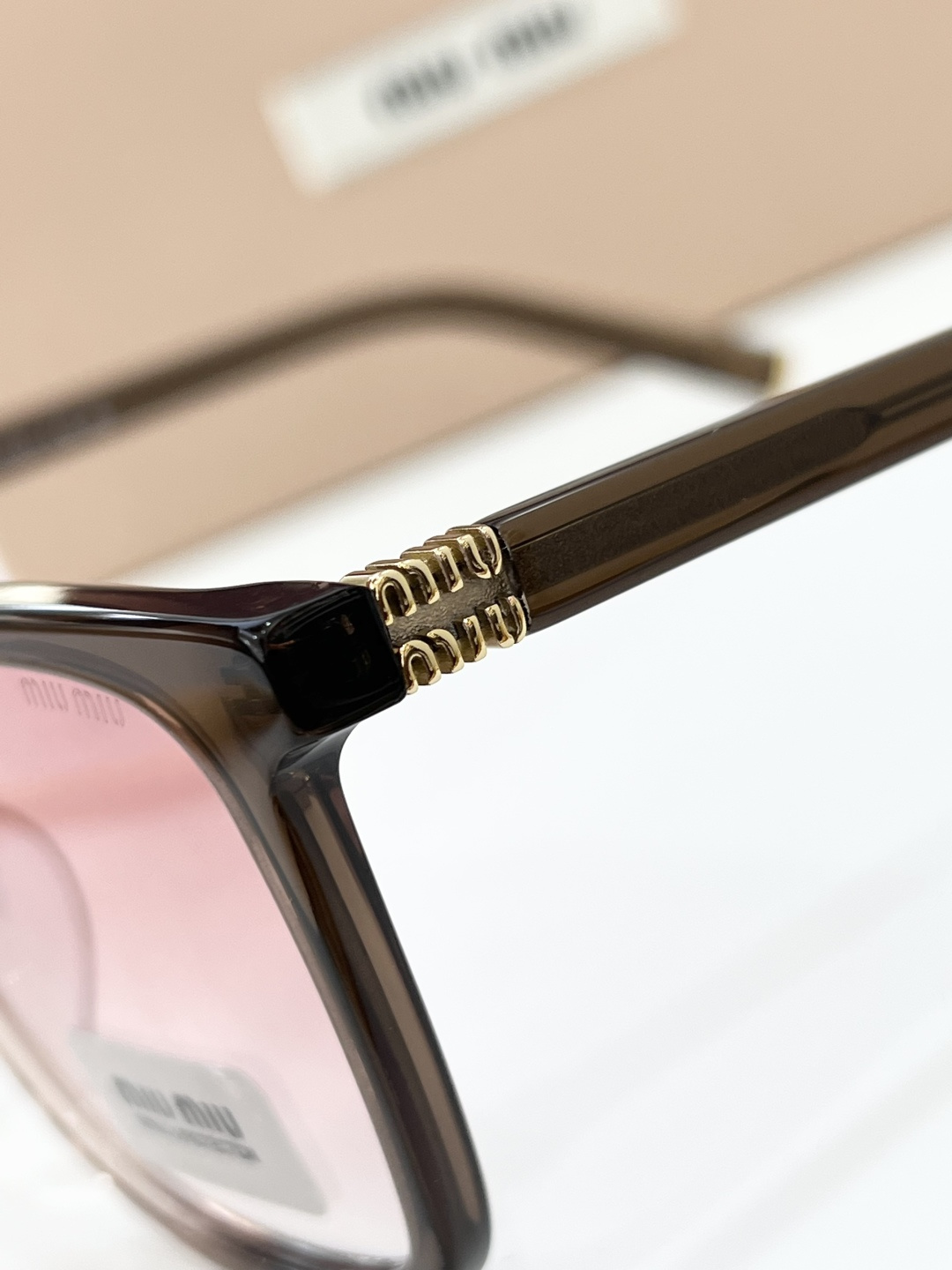 这款太阳眼镜是AAAAA 1:1 质量 (非常棒). 使用了和原版一模一样的材料. 商标部分也保持了和缪缪/Miu Miu一样. 图片拍摄是实物太阳眼镜拍摄, 您所收到的实物保证和我们图片一模一样.