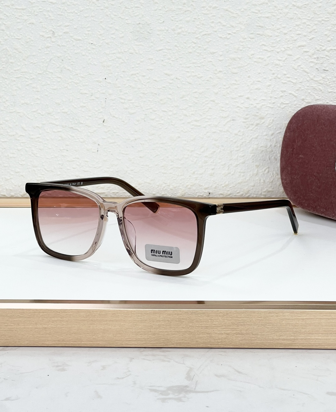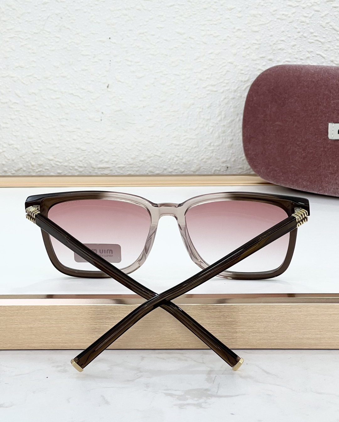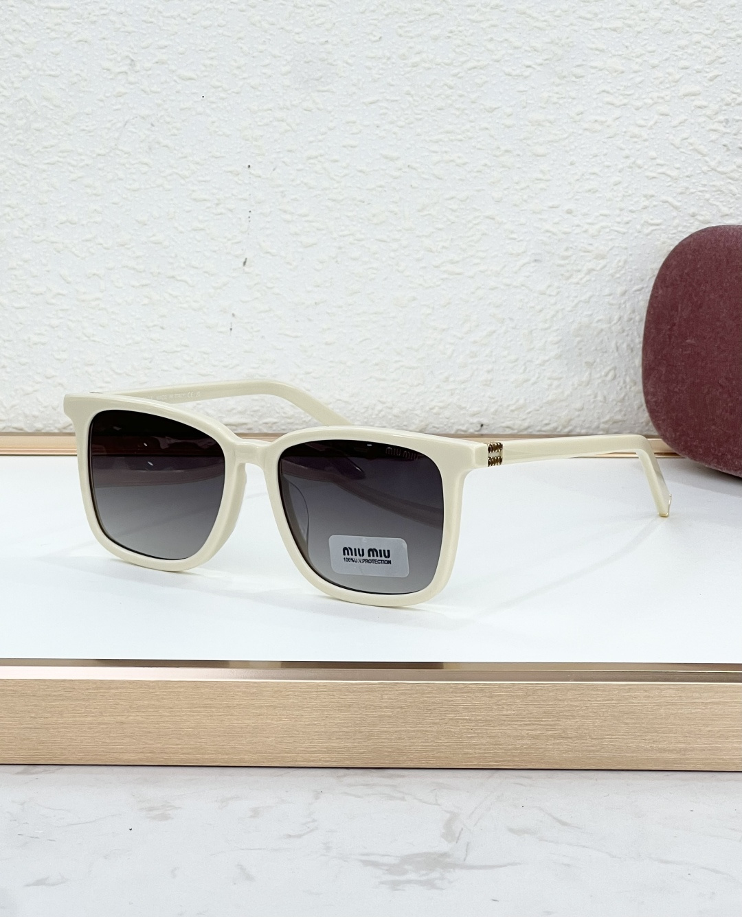 这款太阳眼镜是AAAAA 1:1 质量 (非常棒). 使用了和原版一模一样的材料. 商标部分也保持了和缪缪/Miu Miu一样. 图片拍摄是实物太阳眼镜拍摄, 您所收到的实物保证和我们图片一模一样.