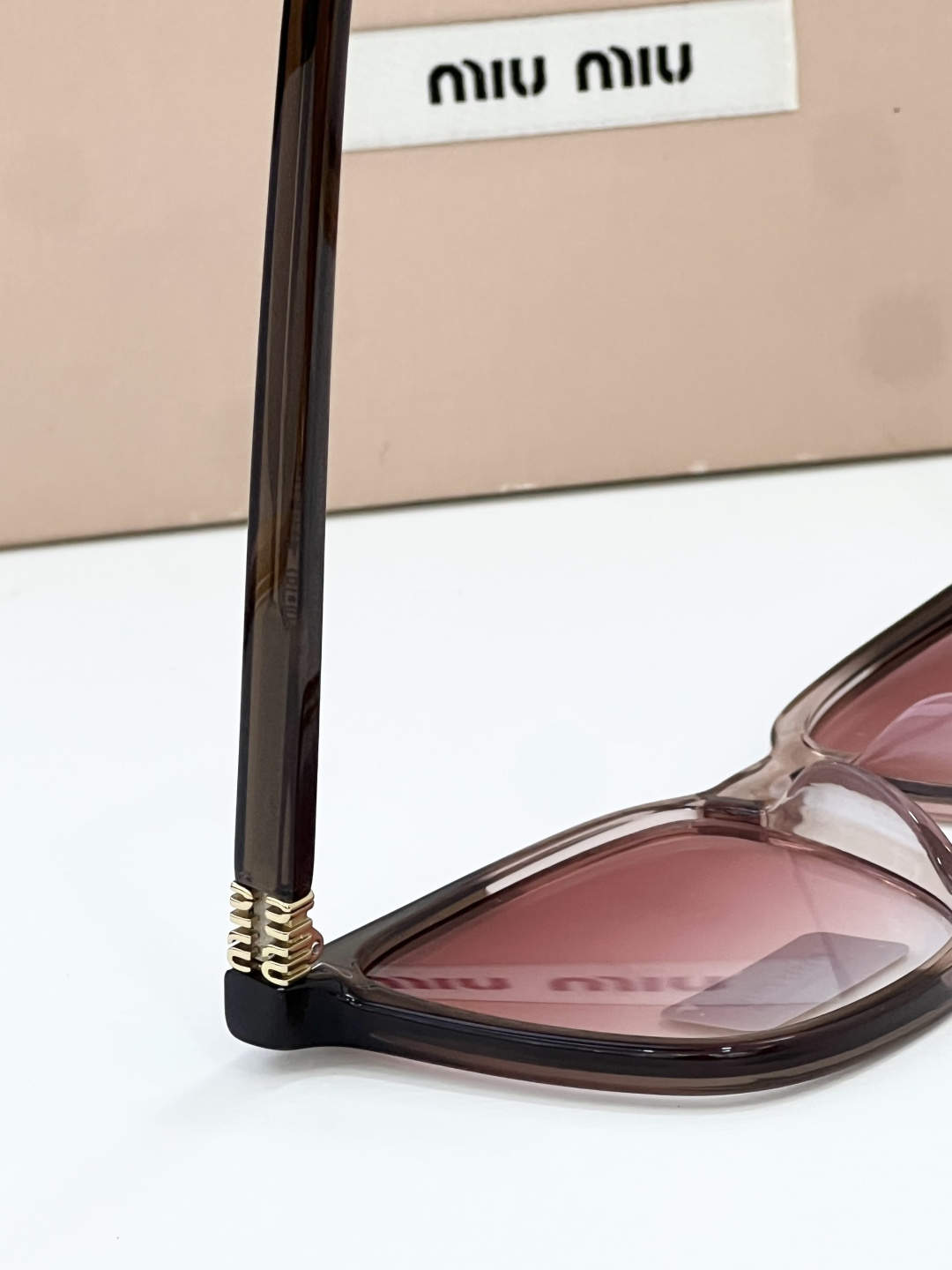 这款太阳眼镜是AAAAA 1:1 质量 (非常棒). 使用了和原版一模一样的材料. 商标部分也保持了和缪缪/Miu Miu一样. 图片拍摄是实物太阳眼镜拍摄, 您所收到的实物保证和我们图片一模一样.