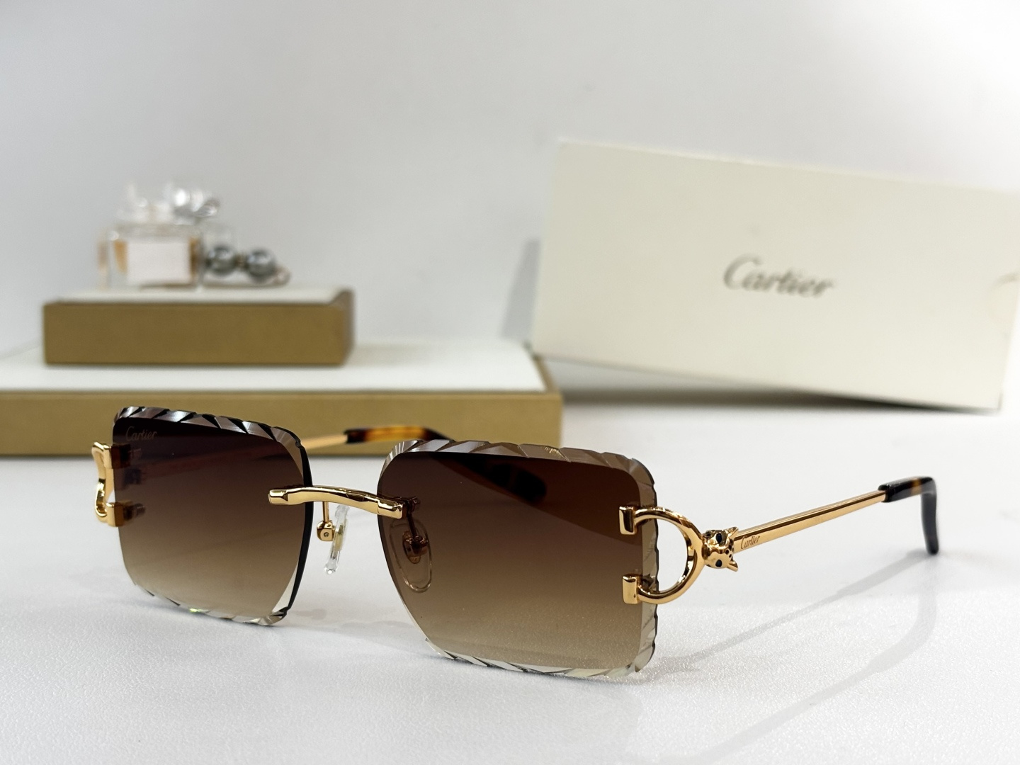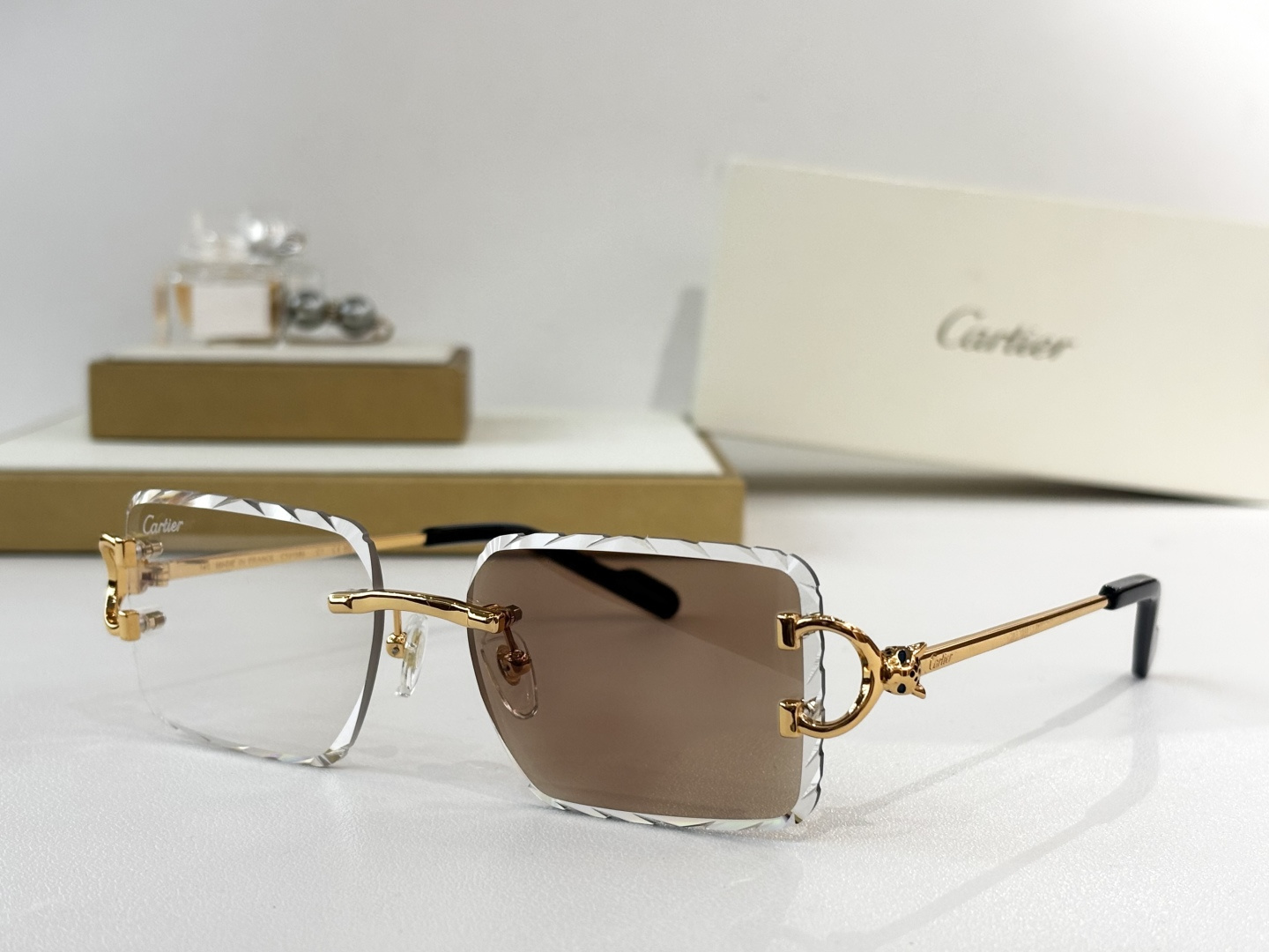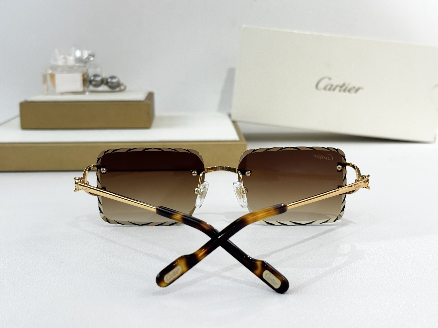 这款太阳眼镜是AAAAA 1:1 质量 (非常棒). 使用了和原版一模一样的材料. 商标部分也保持了和卡地亚/Cartier一样. 图片拍摄是实物太阳眼镜拍摄, 您所收到的实物保证和我们图片一模一样.