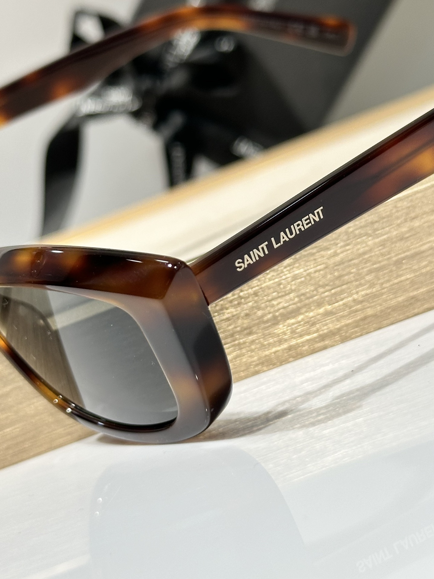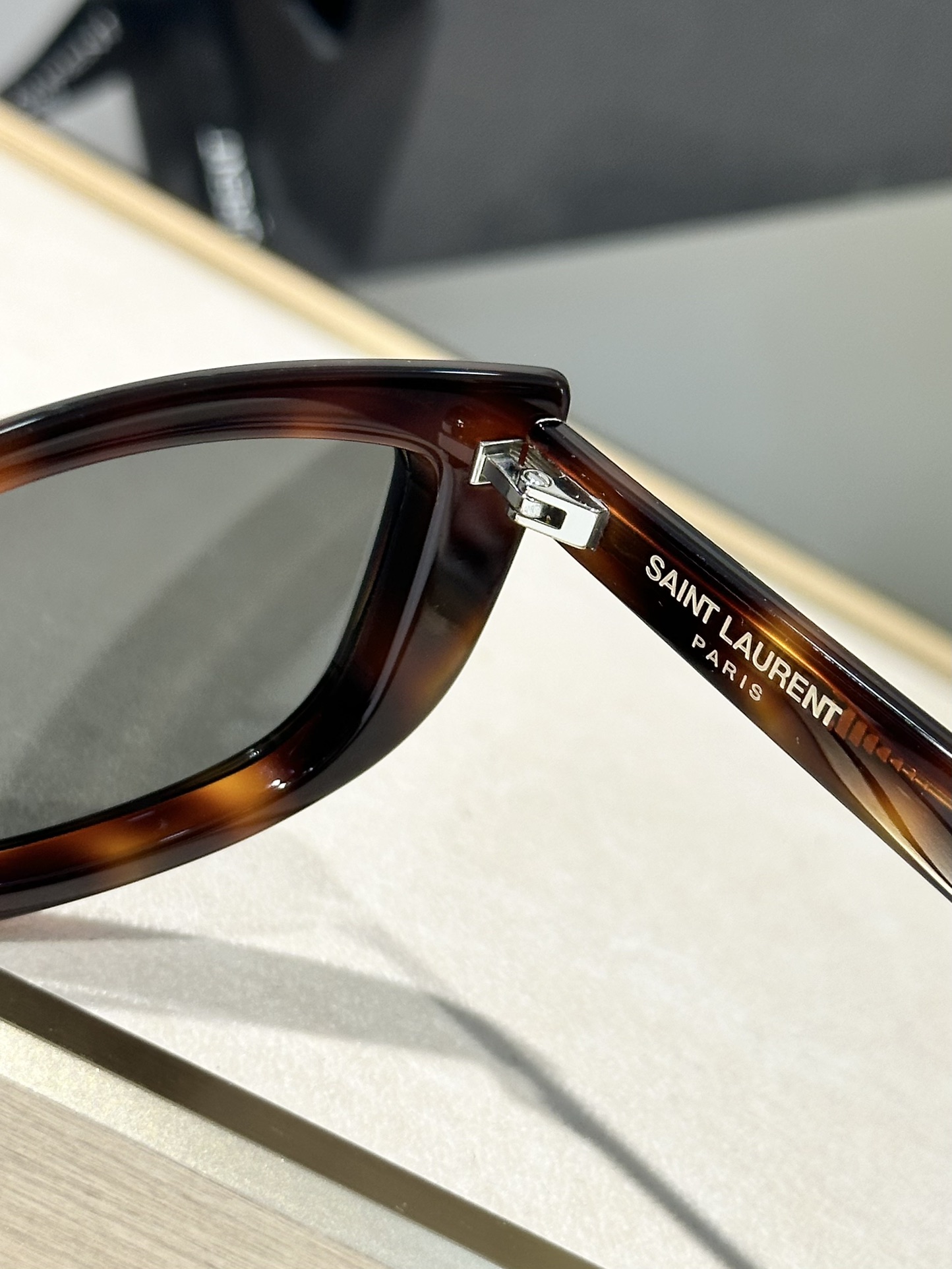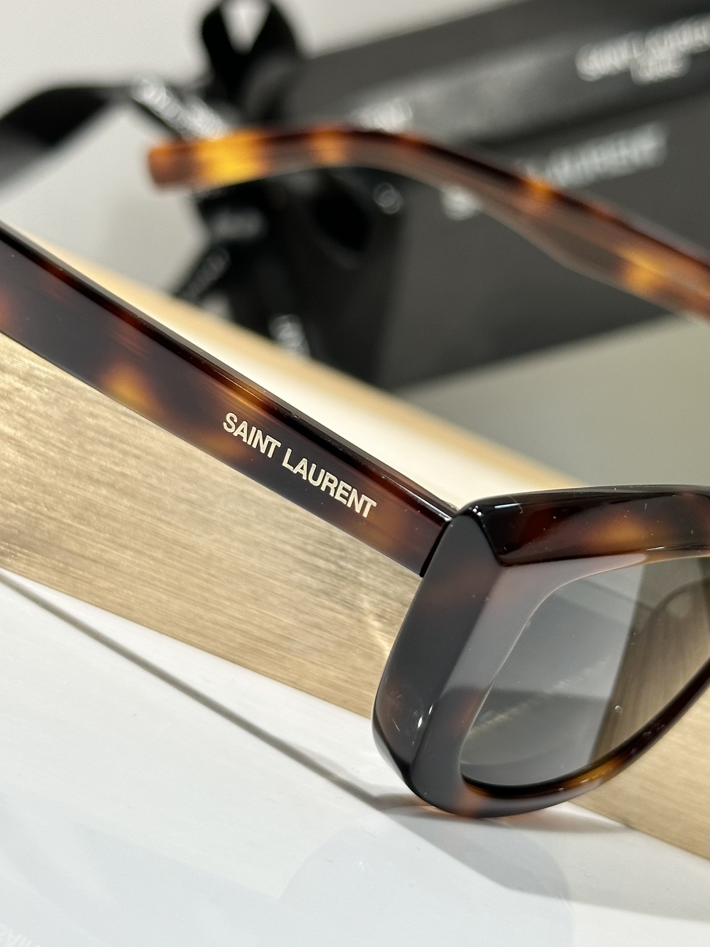 这款太阳眼镜是AAAAA 1:1 质量 (非常棒). 使用了和原版一模一样的材料. 商标部分也保持了和圣罗兰/Saint Laurent一样. 图片拍摄是实物太阳眼镜拍摄, 您所收到的实物保证和我们图片一模一样.