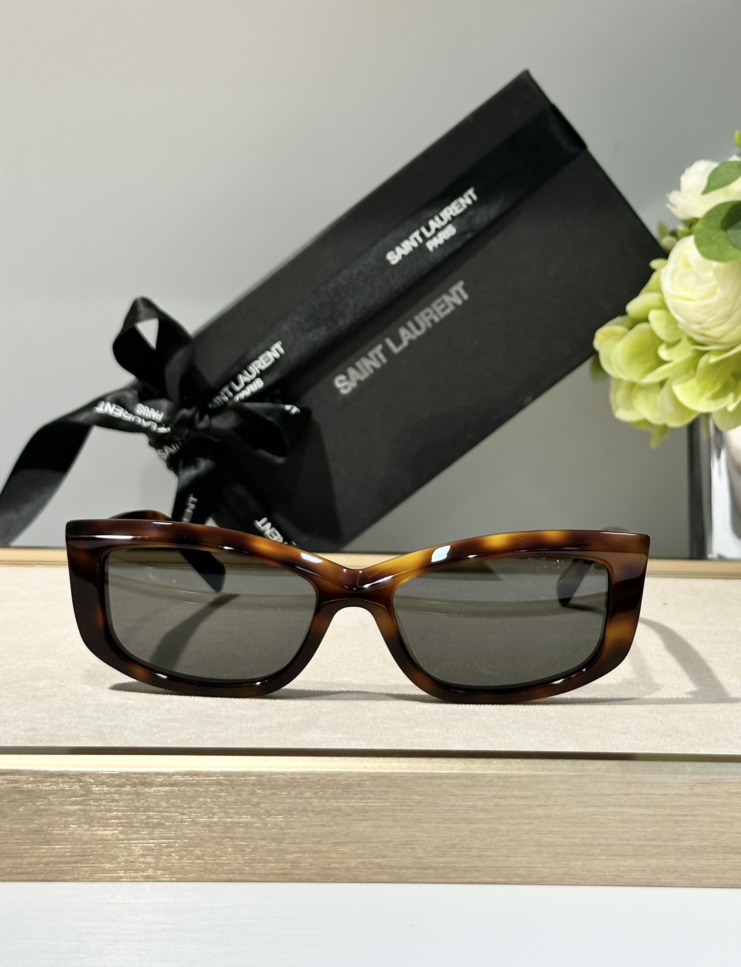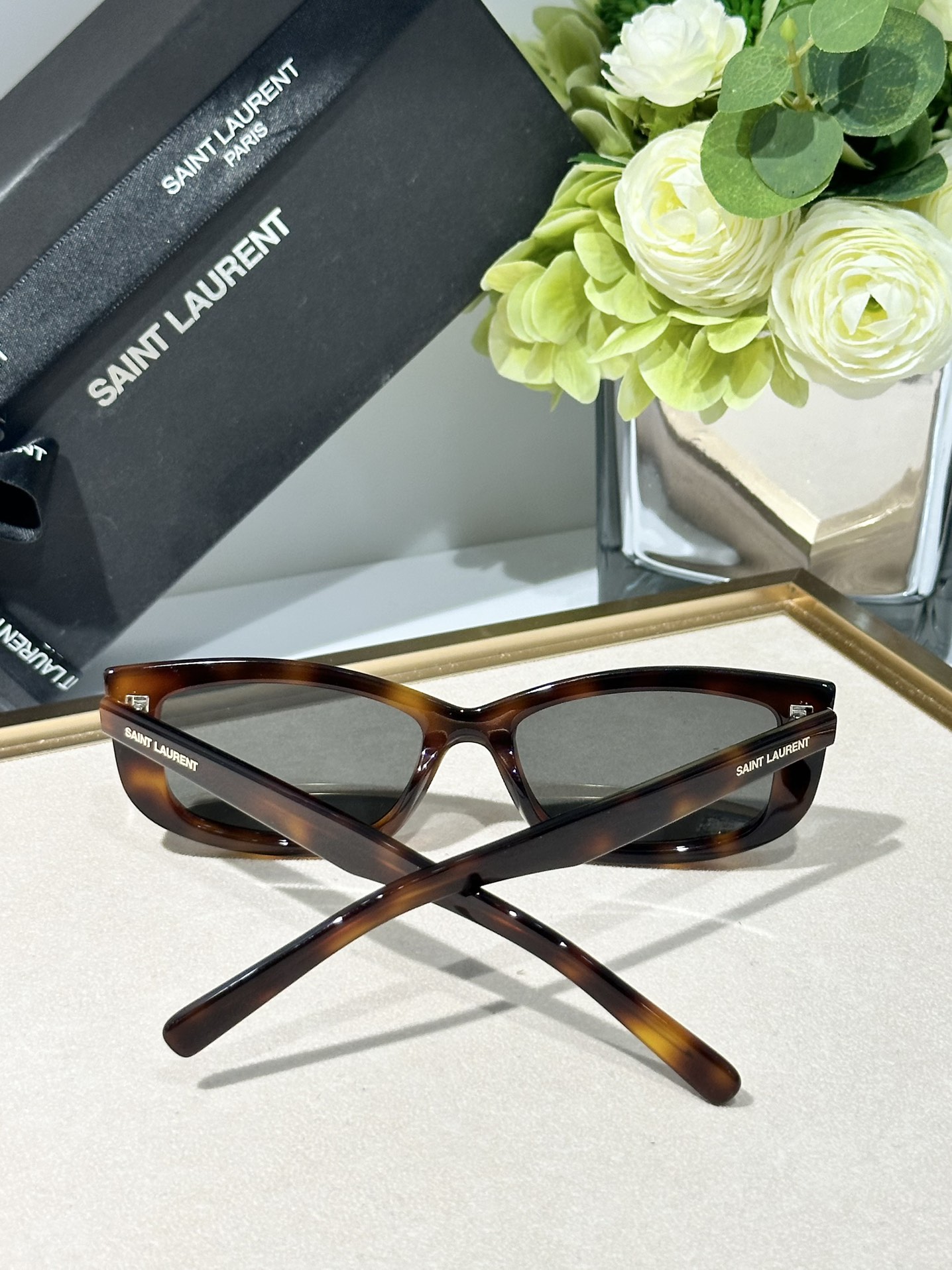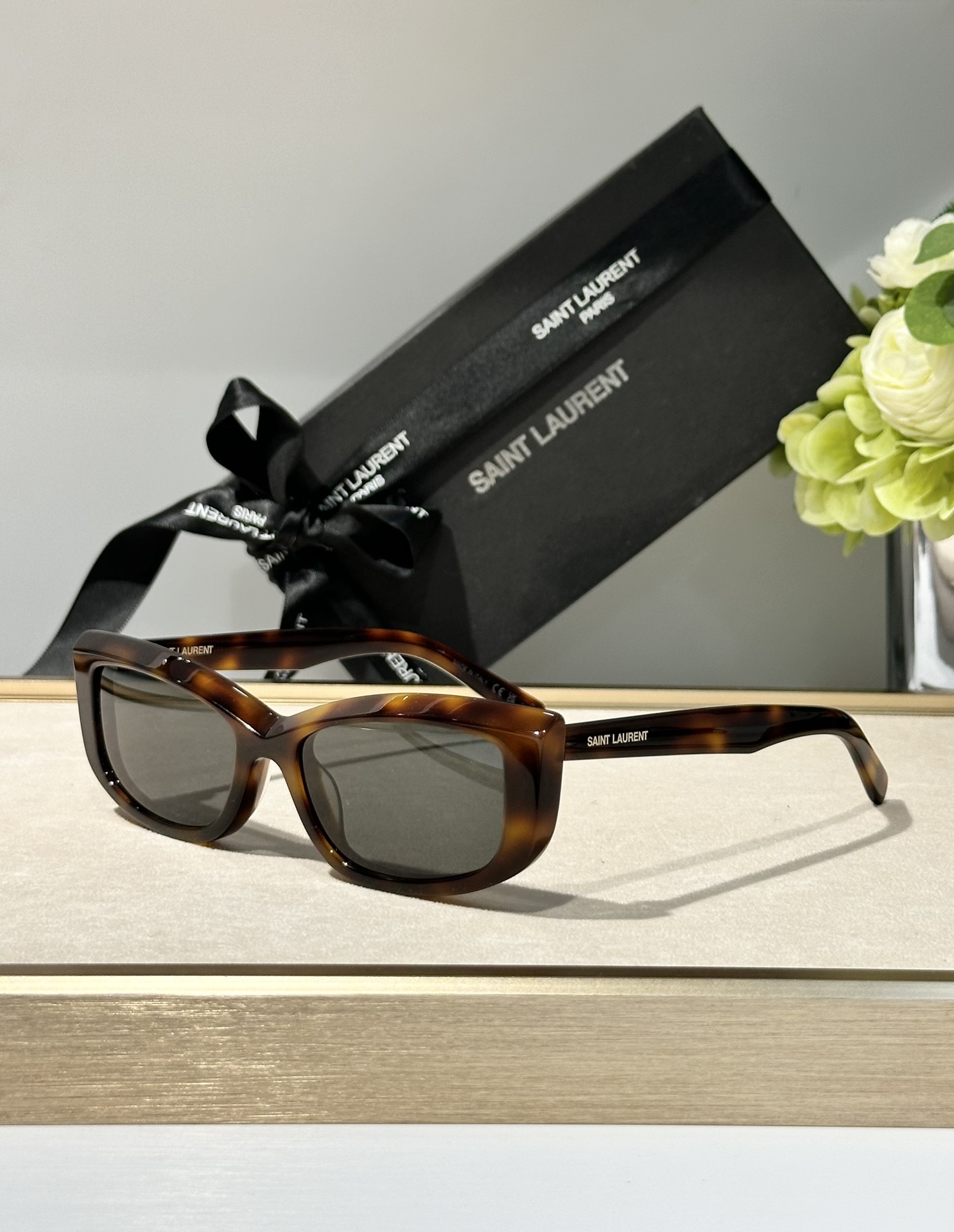 这款太阳眼镜是AAAAA 1:1 质量 (非常棒). 使用了和原版一模一样的材料. 商标部分也保持了和圣罗兰/Saint Laurent一样. 图片拍摄是实物太阳眼镜拍摄, 您所收到的实物保证和我们图片一模一样.