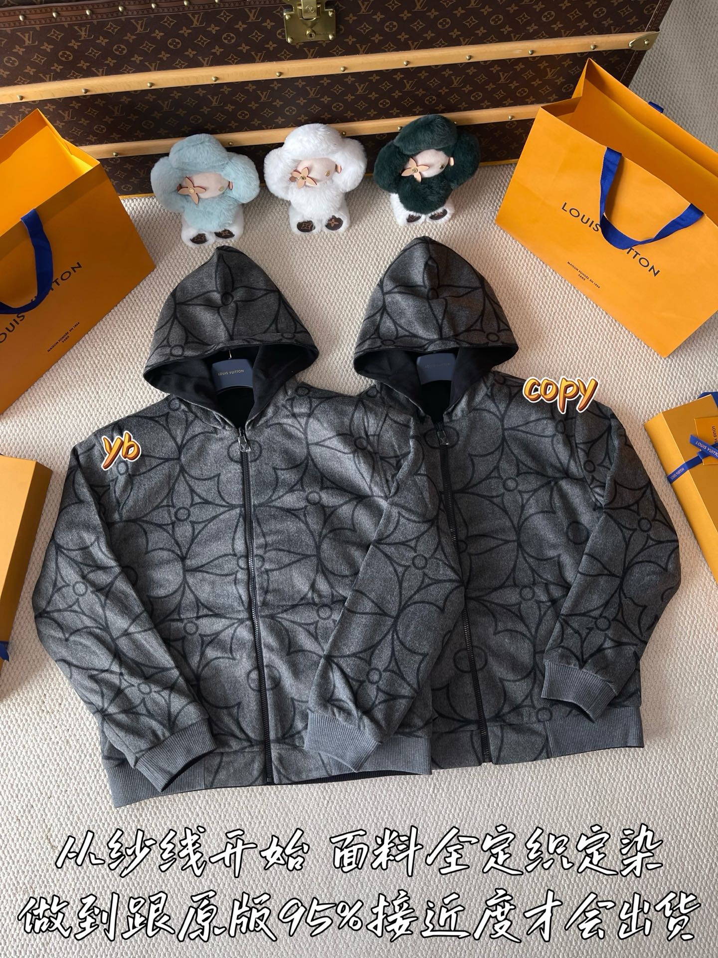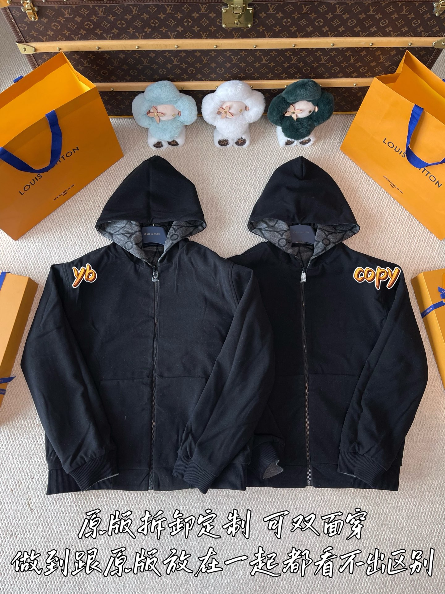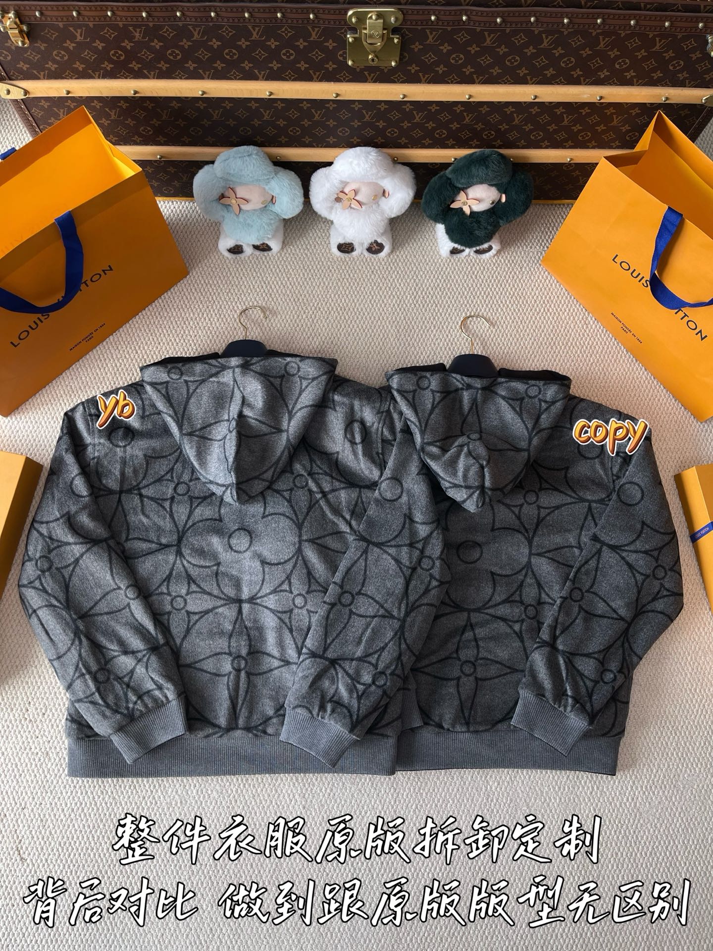 这款衣服是AAAAA 1:1 质量 (非常棒). 使用了和原版一模一样的材料. 商标部分也保持了和路易威登/Louis Vuitton一样. 图片拍摄是实物衣服拍摄, 您所收到的实物保证和我们图片一模一样.