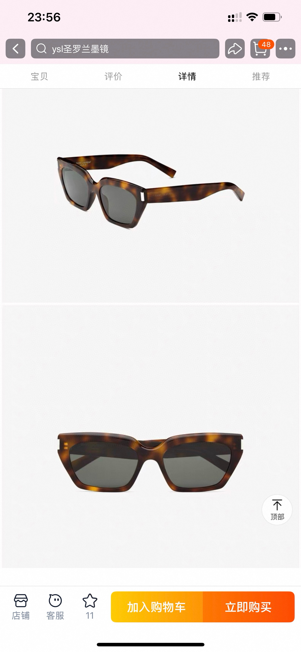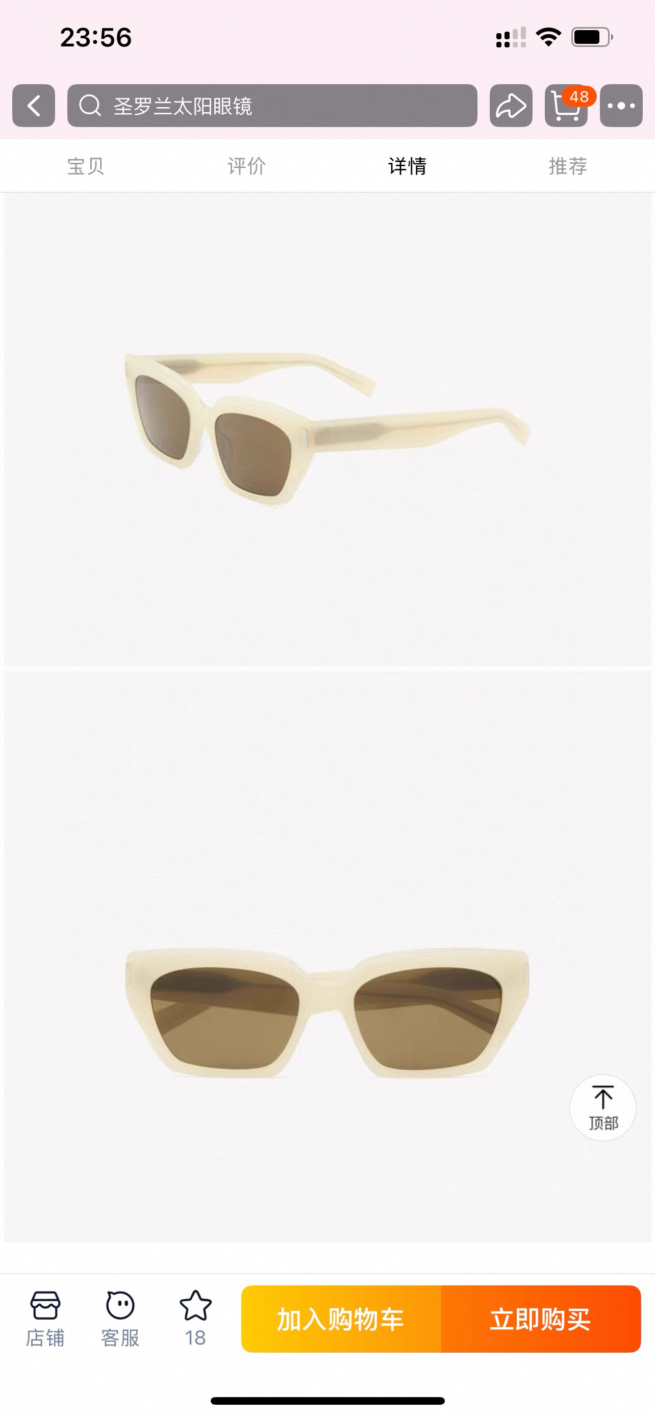 这款太阳眼镜是AAAAA 1:1 质量 (非常棒). 使用了和原版一模一样的材料. 商标部分也保持了和圣罗兰/Saint Laurent一样. 图片拍摄是实物太阳眼镜拍摄, 您所收到的实物保证和我们图片一模一样.