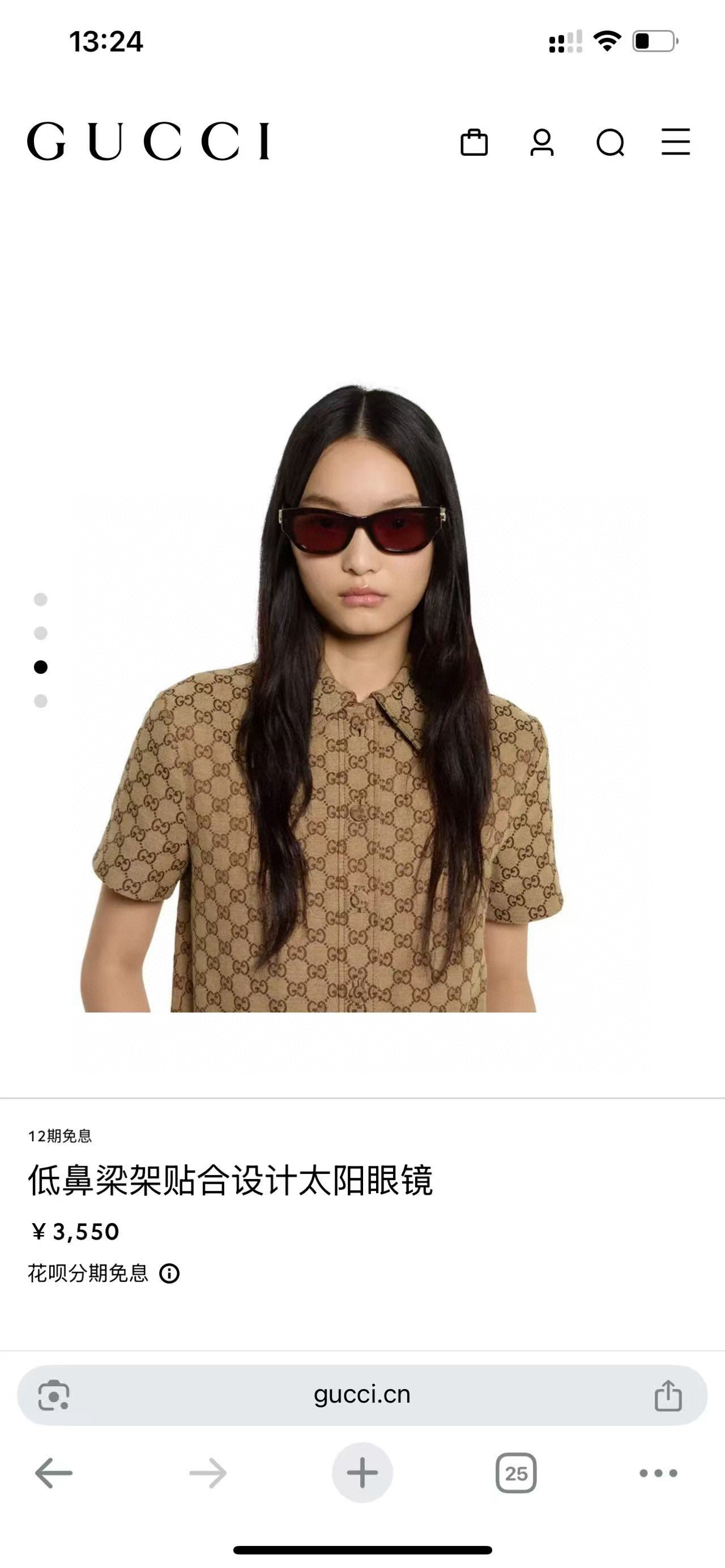 这款太阳眼镜是AAAAA 1:1 质量 (非常棒). 使用了和原版一模一样的材料. 商标部分也保持了和古奇/Gucci一样. 图片拍摄是实物太阳眼镜拍摄, 您所收到的实物保证和我们图片一模一样.