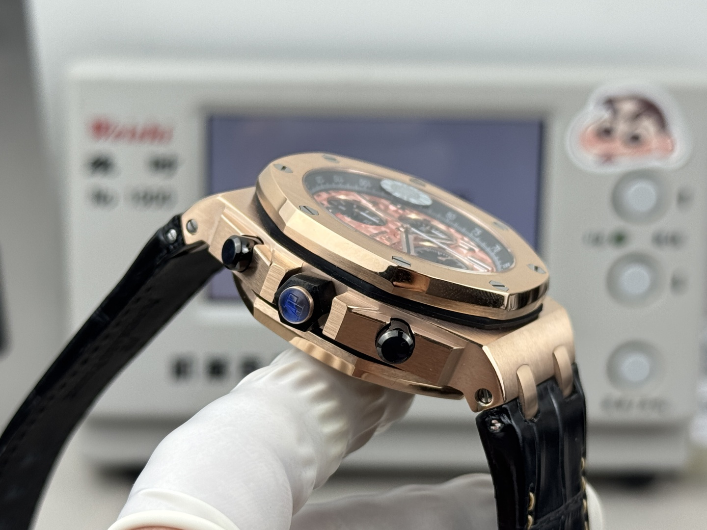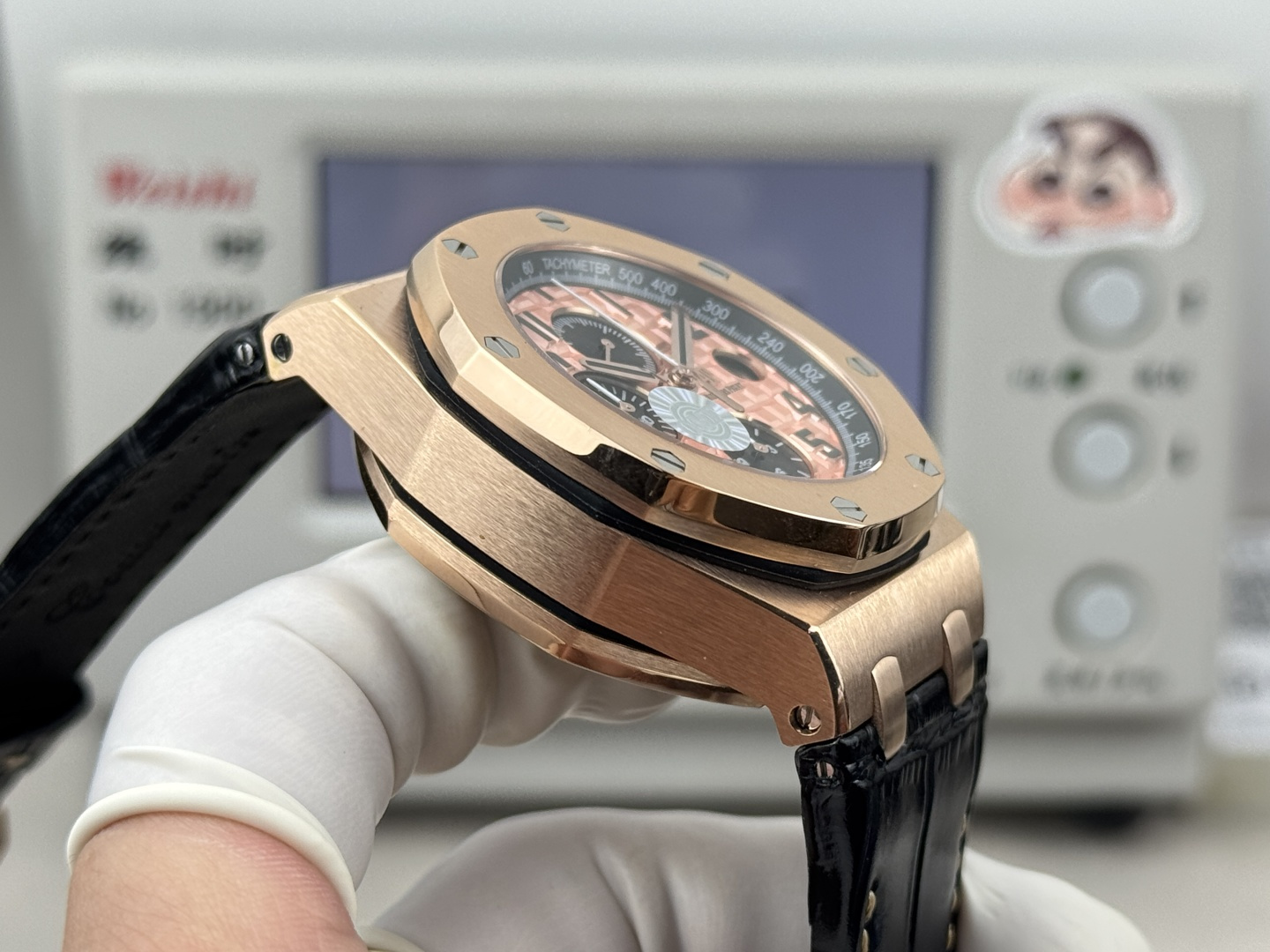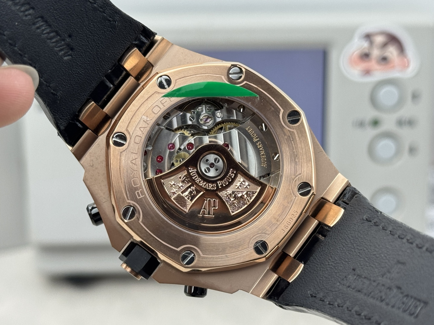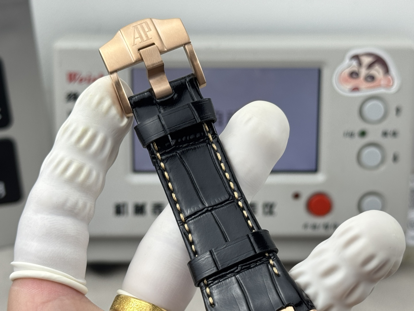 这款手表是AAAAA 1:1 质量 (非常棒). 使用了和原版一模一样的材料. 商标部分也保持了和爱彼/Audemars Piguet一样. 图片拍摄是实物手表拍摄, 您所收到的实物保证和我们图片一模一样.