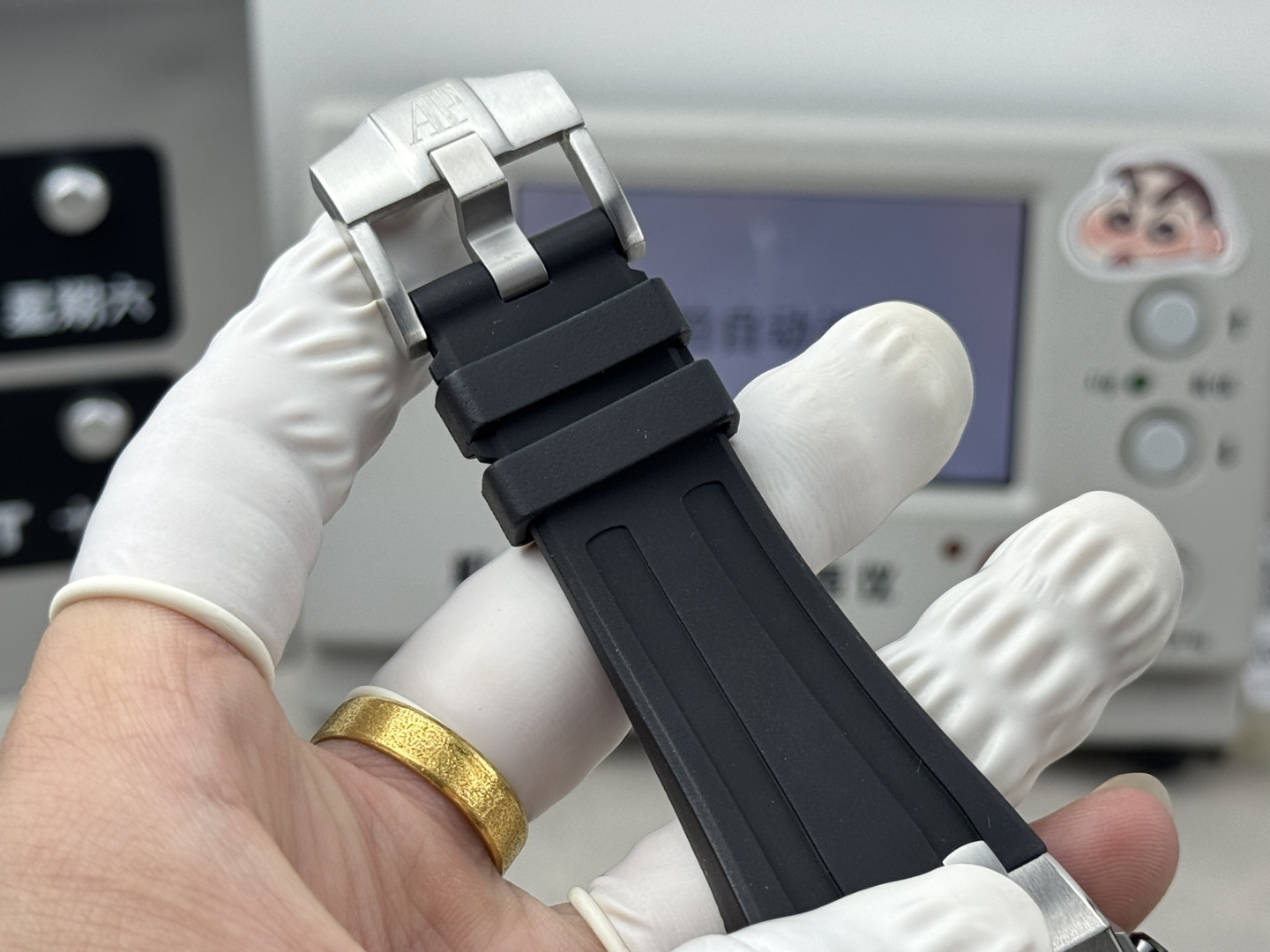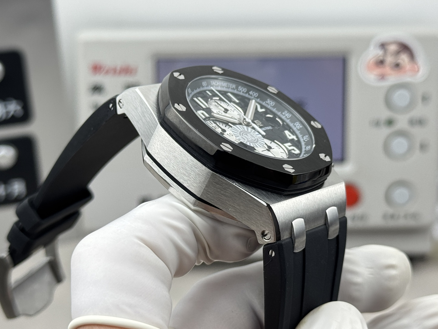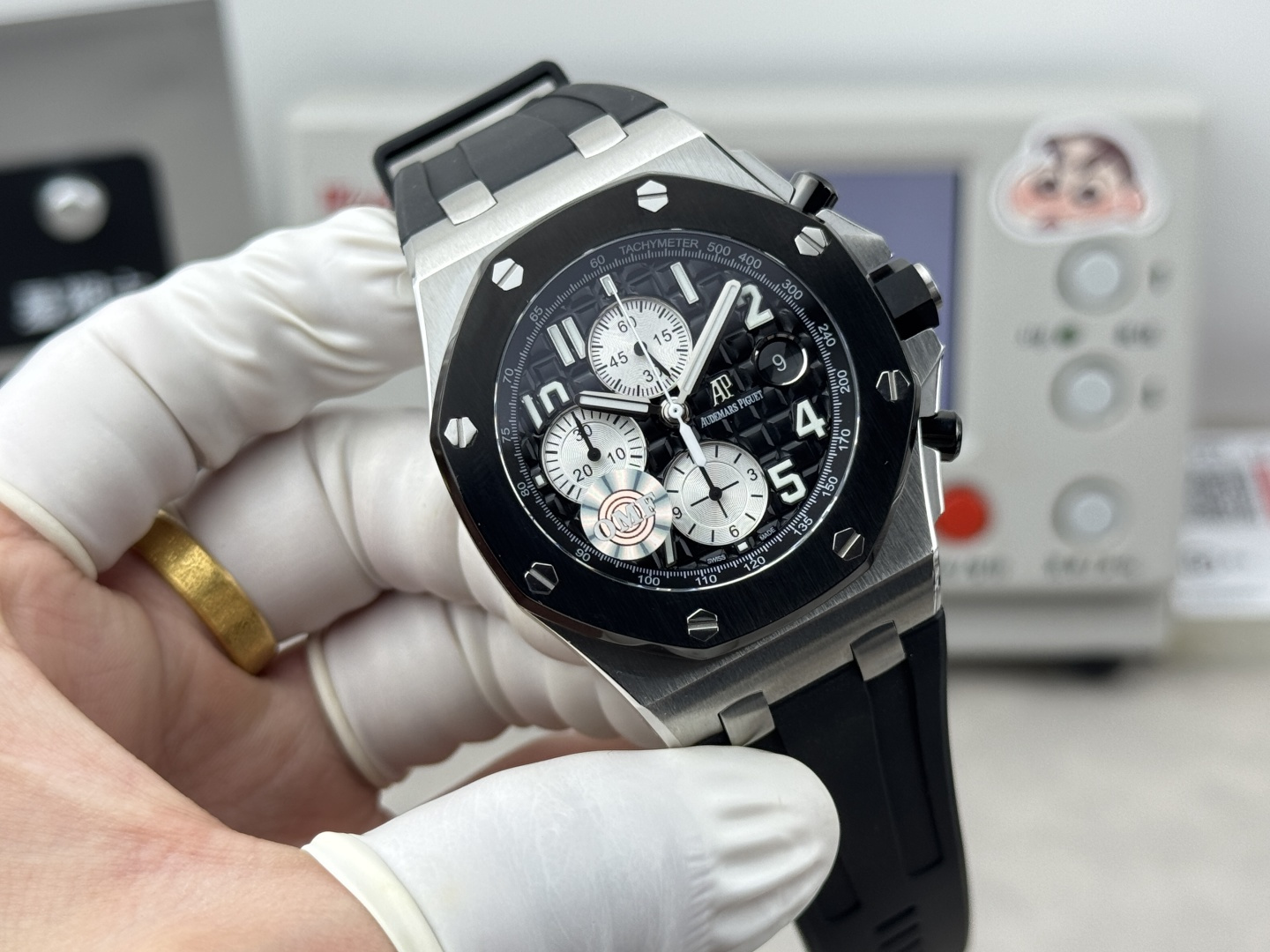 这款手表是AAAAA 1:1 质量 (非常棒). 使用了和原版一模一样的材料. 商标部分也保持了和爱彼/Audemars Piguet一样. 图片拍摄是实物手表拍摄, 您所收到的实物保证和我们图片一模一样.