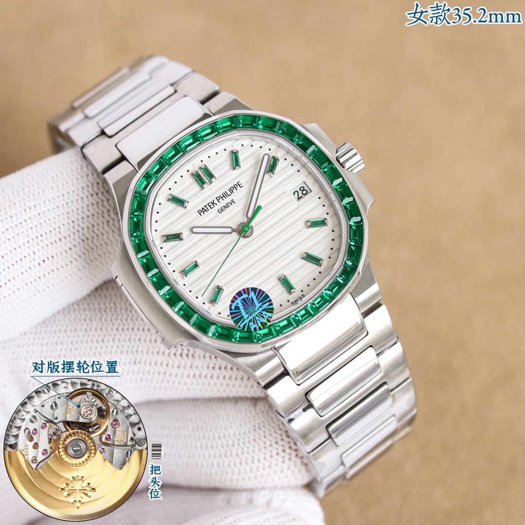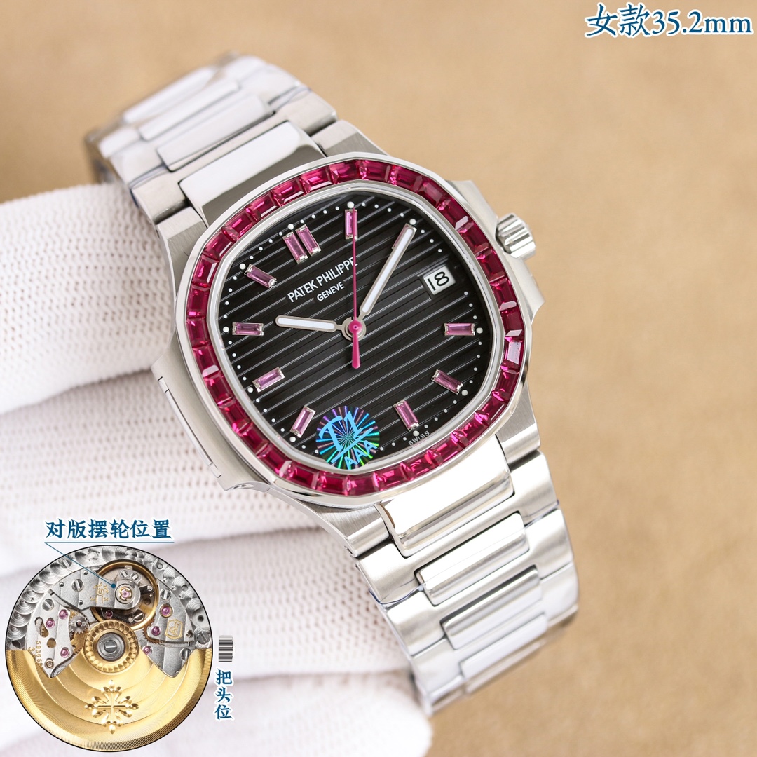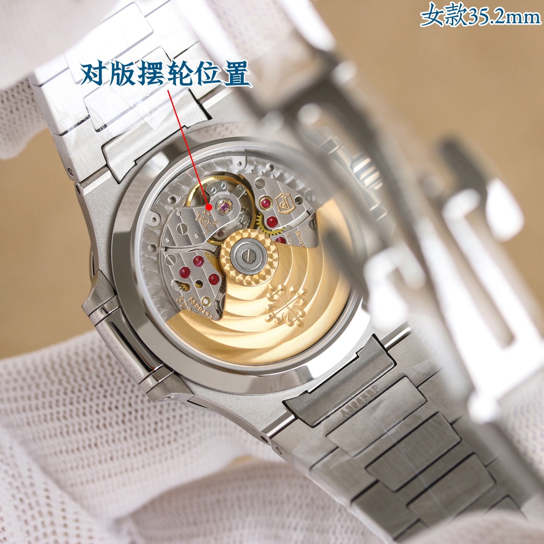 这款手表是AAAAA 1:1 质量 (非常棒). 使用了和原版一模一样的材料. 商标部分也保持了和百达翡丽/Patek Philippe一样. 图片拍摄是实物手表拍摄, 您所收到的实物保证和我们图片一模一样.