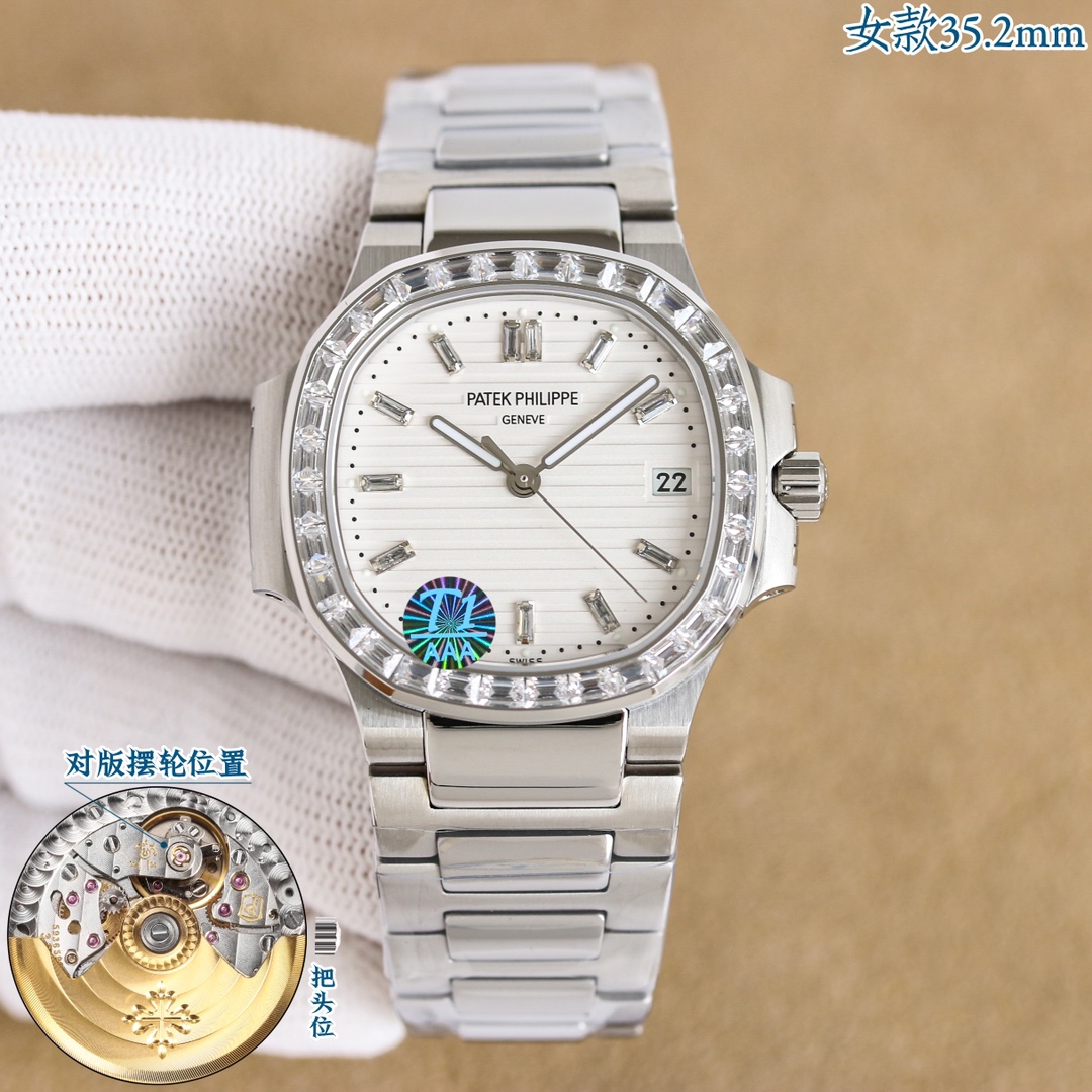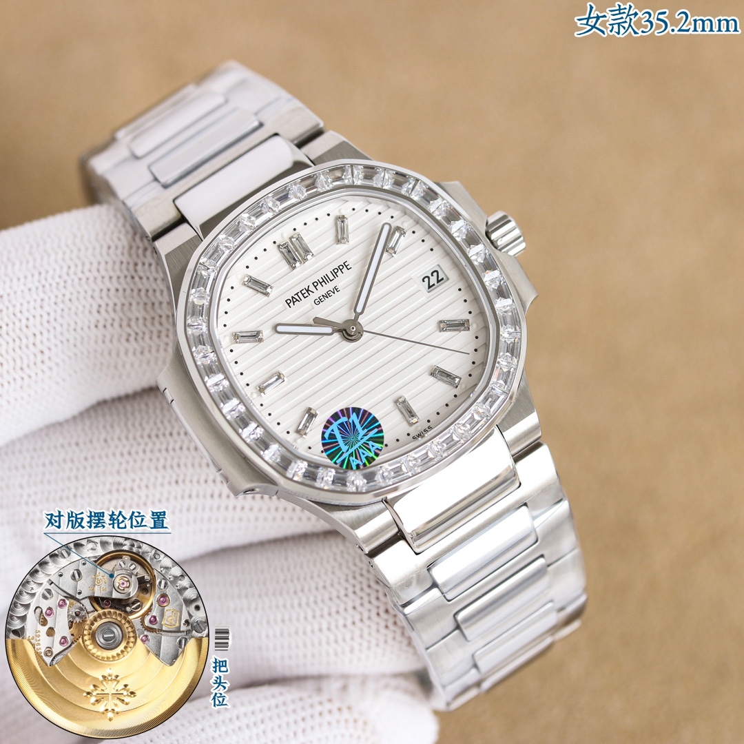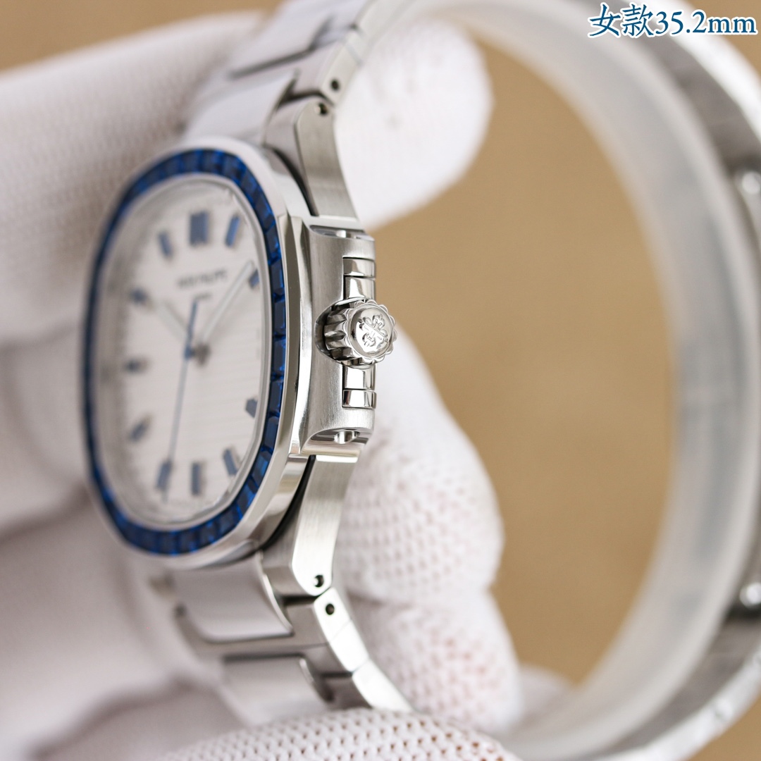 这款手表是AAAAA 1:1 质量 (非常棒). 使用了和原版一模一样的材料. 商标部分也保持了和百达翡丽/Patek Philippe一样. 图片拍摄是实物手表拍摄, 您所收到的实物保证和我们图片一模一样.